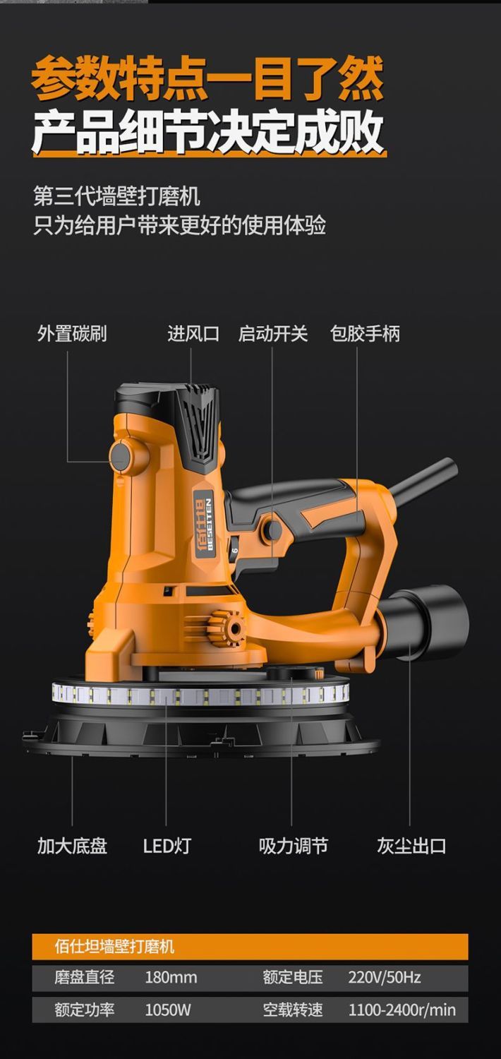 Short handle putty multifunctional ultra light sandpaper machine dust free wall grinding machine hand held electric self priming wall grinding machine