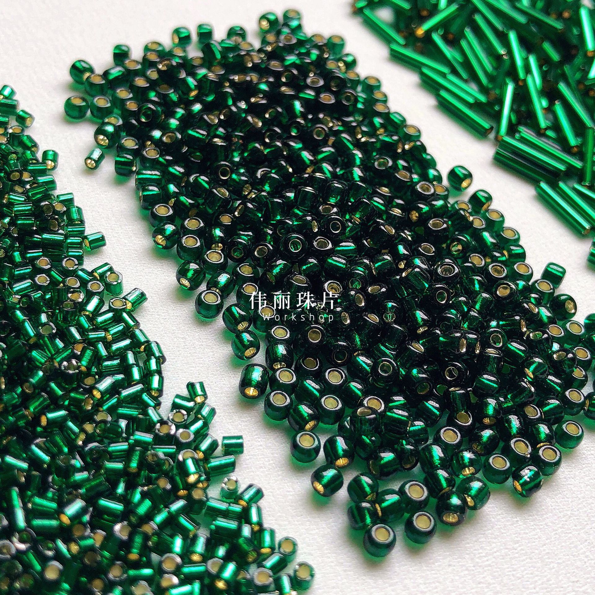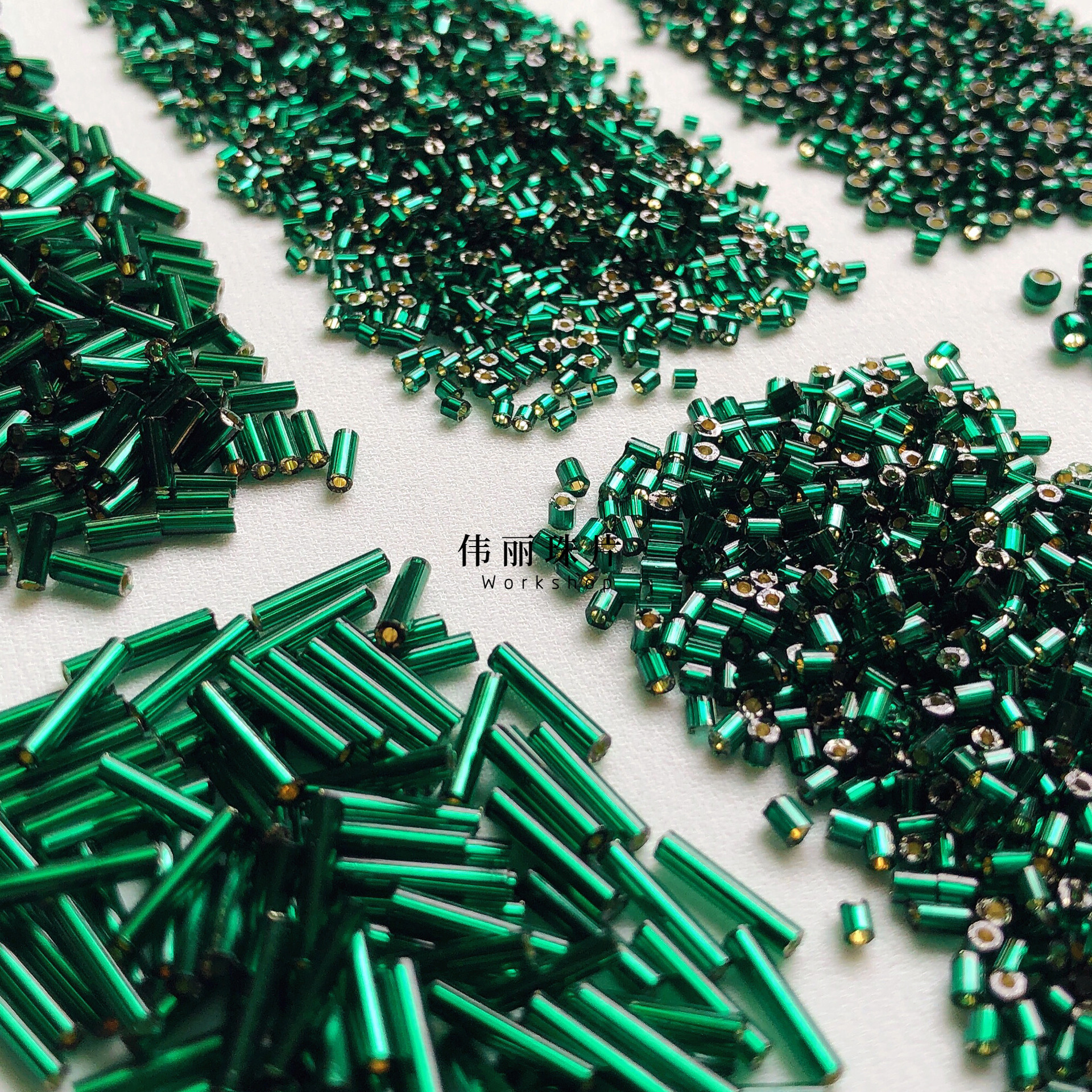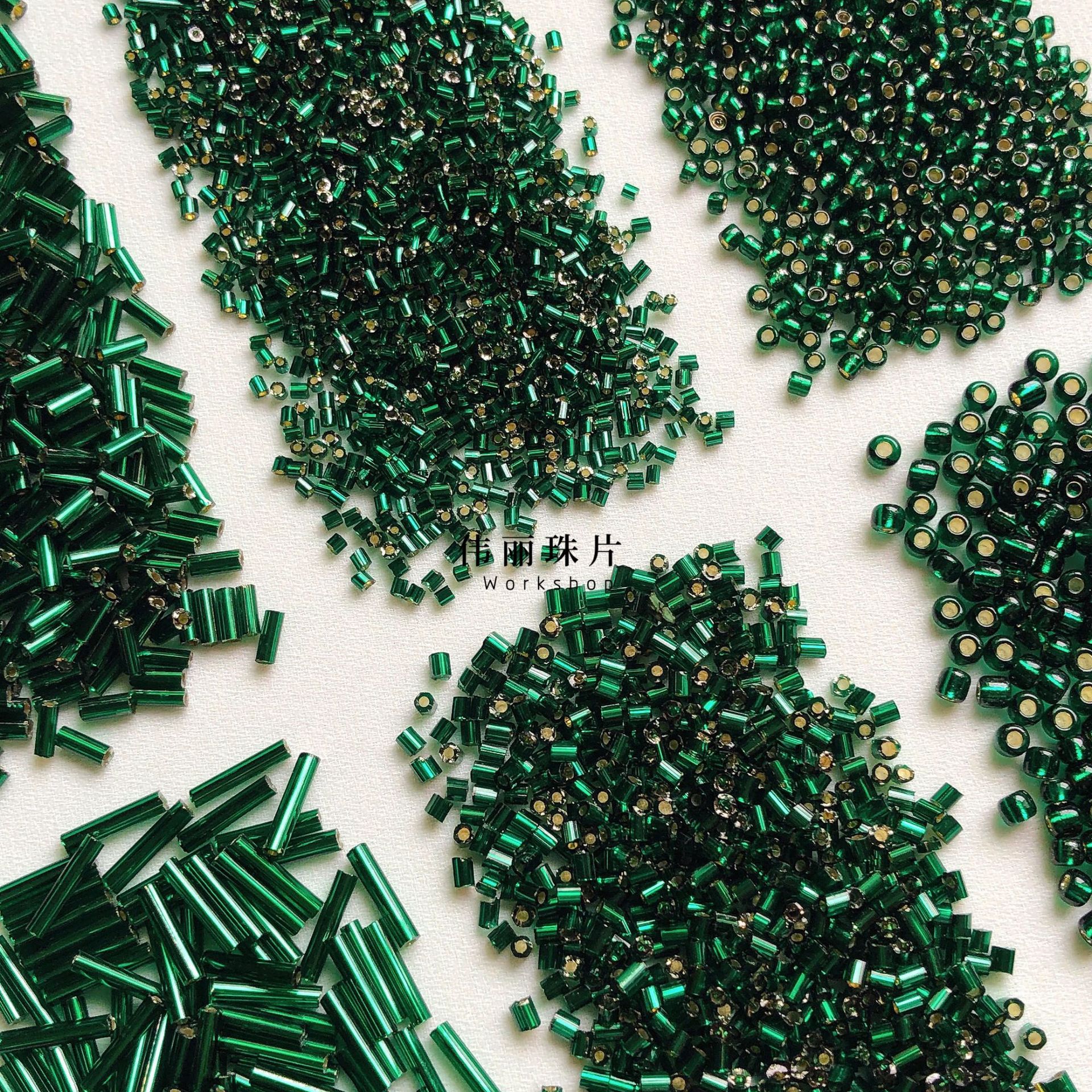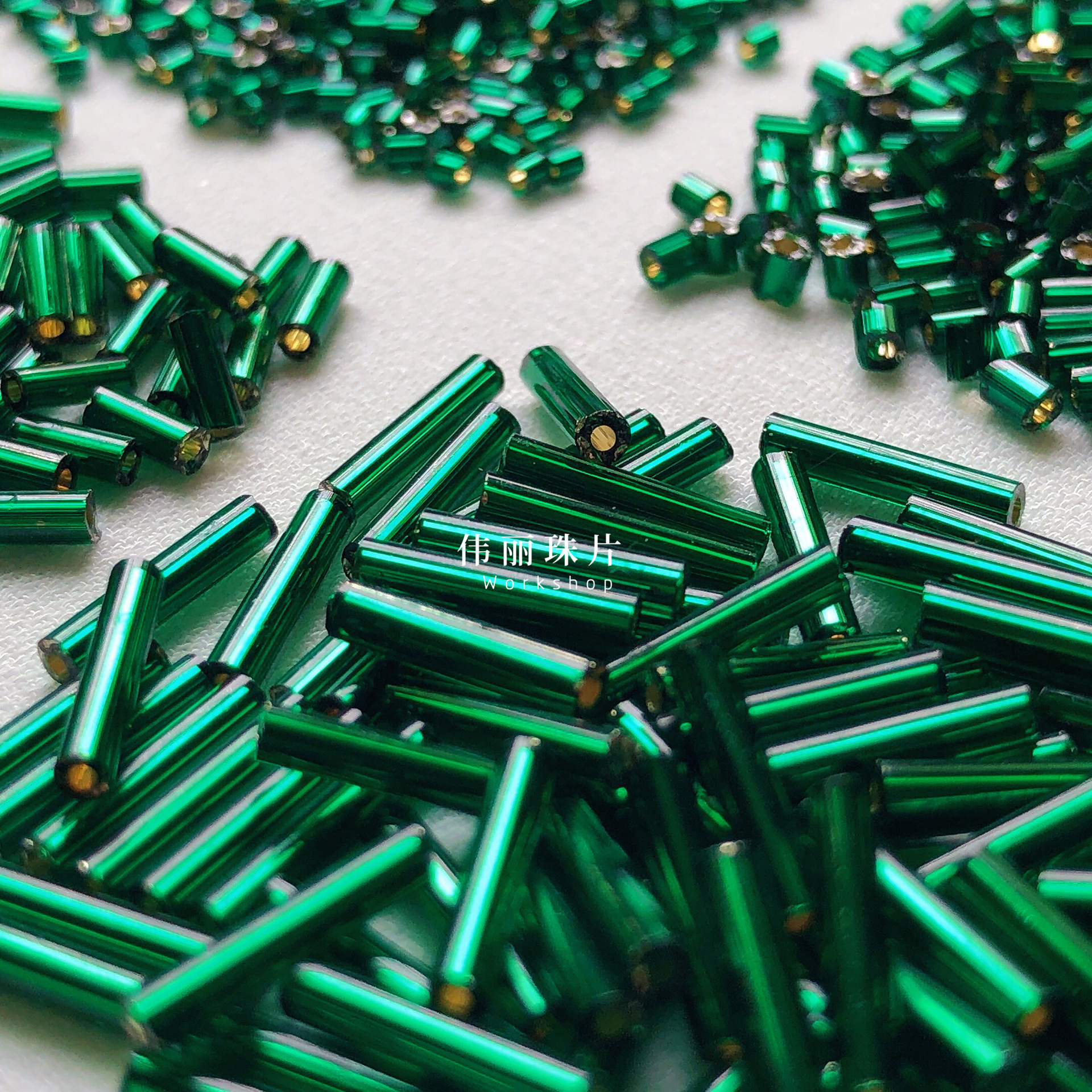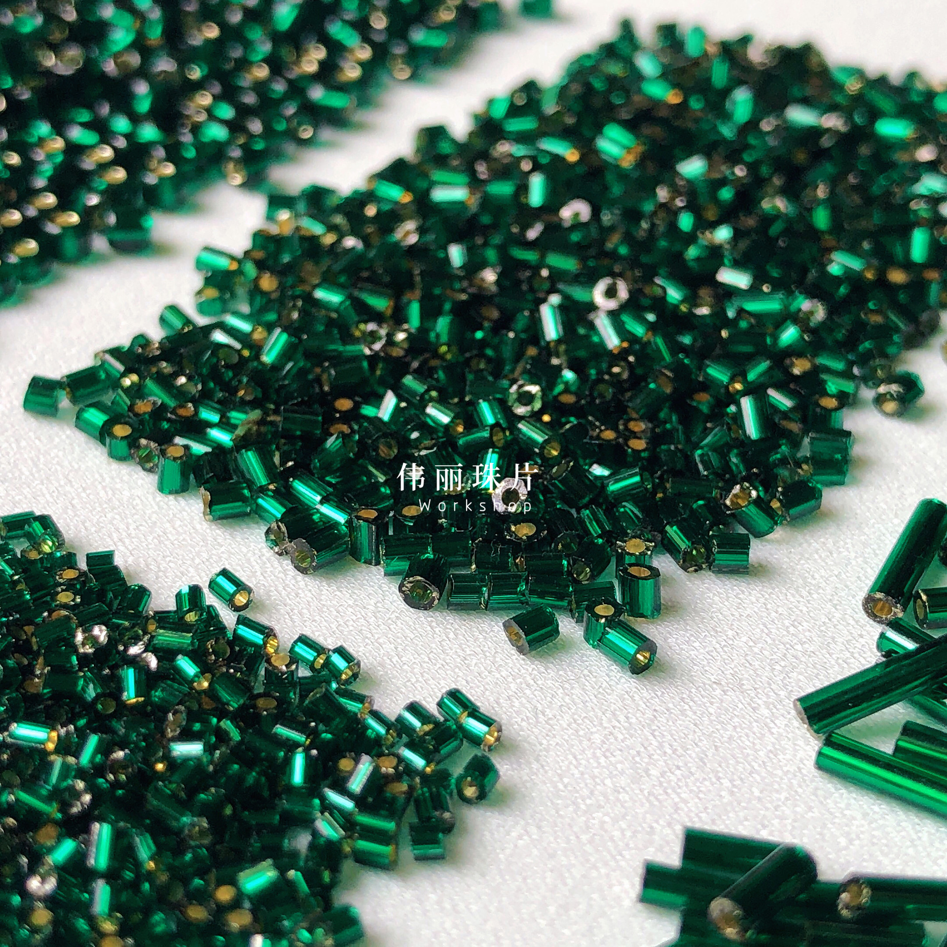 Silver filling dark green M beads series tube beads angle beads loose beads handmade diy jewelry hand sewing clothing accessories material