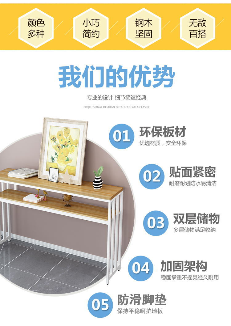 Simple Hallway Table Corridor Corridor Table Wall Narrow Table Long Table Supply Table Kitchen Shelf Double layer Small Table