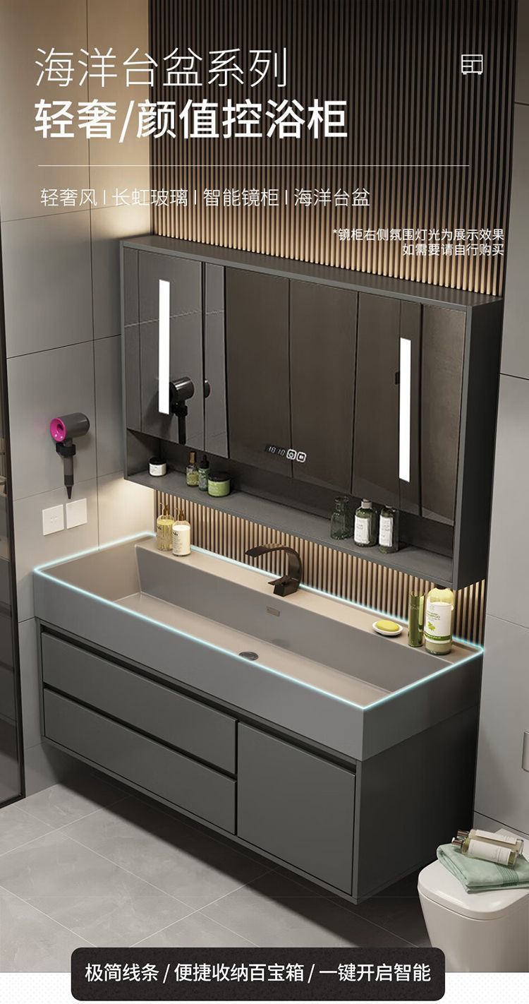 - Super large ocean basin [hanging cabinet]-120CM smart mirror cabinet + warranty (new faucet)