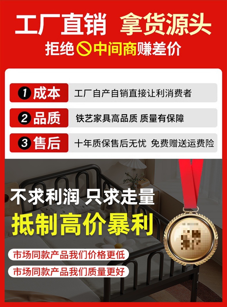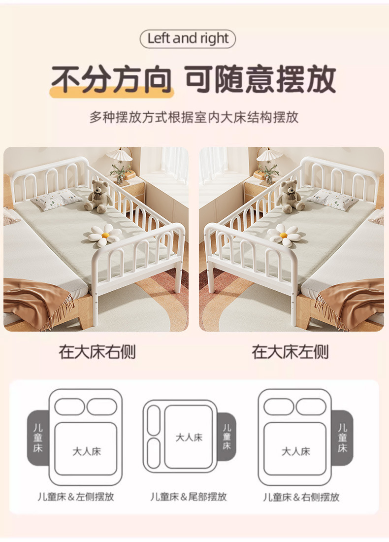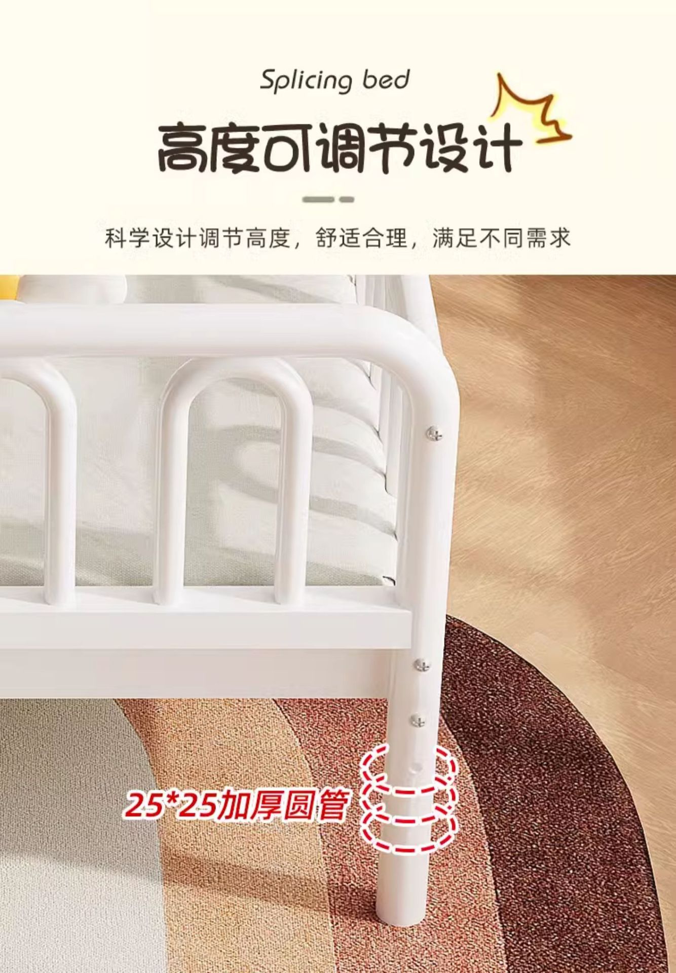 Single Bed Side Bed Widened Spliced Big Bed Iron Children s Bed with Guardrail Small Bed Baby Boy Girl Princess Bed
