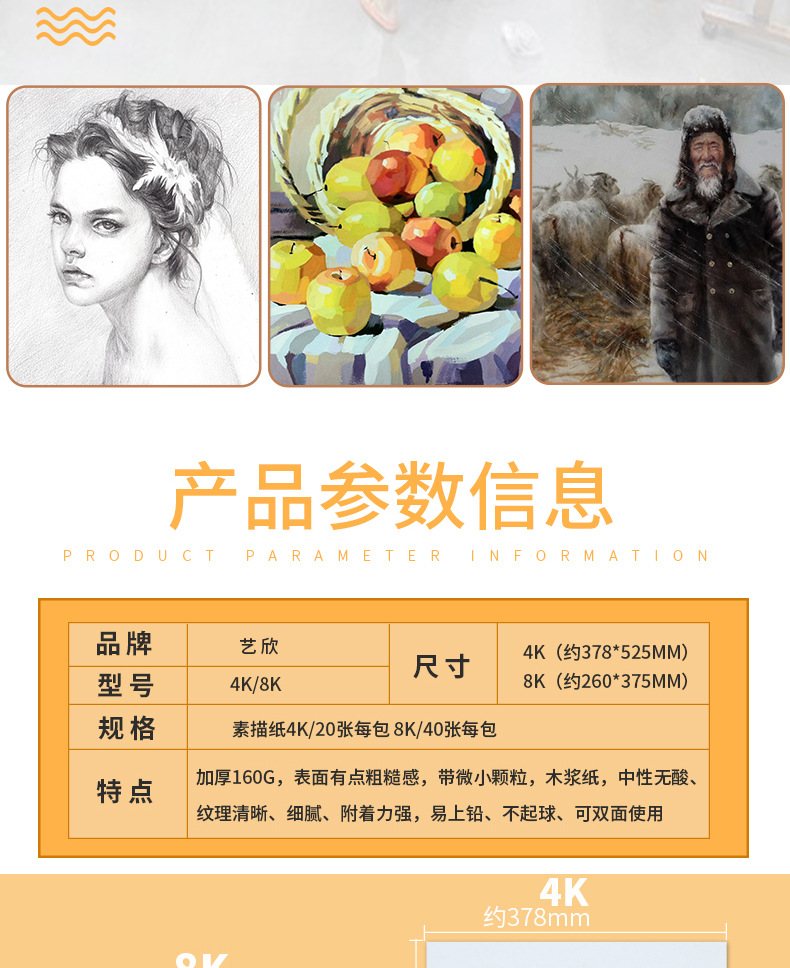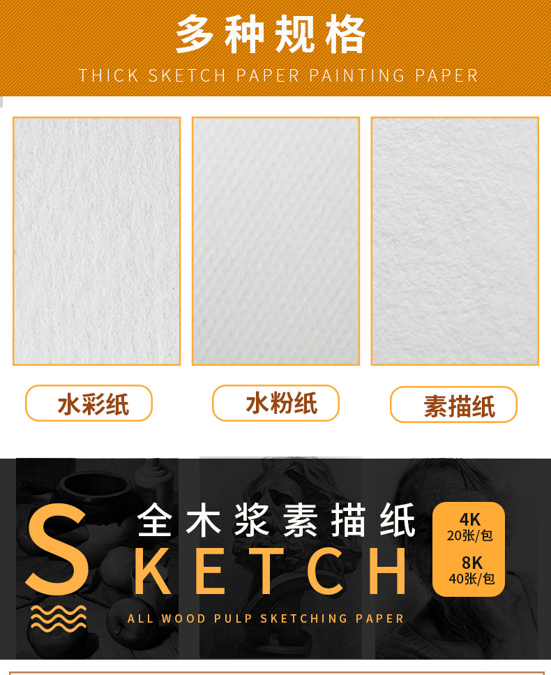Sketch paper large quantity 8K paper yellowish thickened Art special gouache watercolor children s 4K painting paper sketch paper