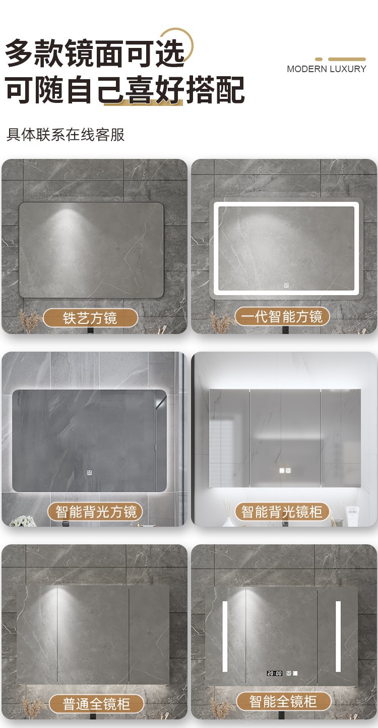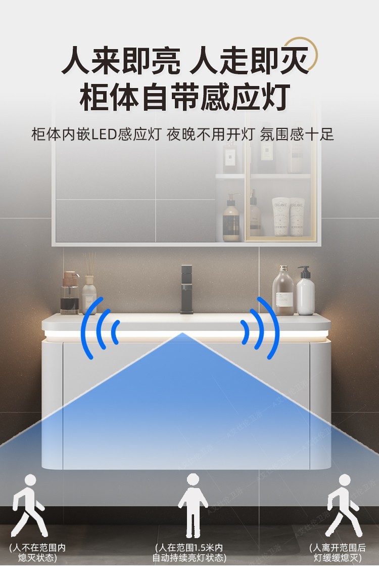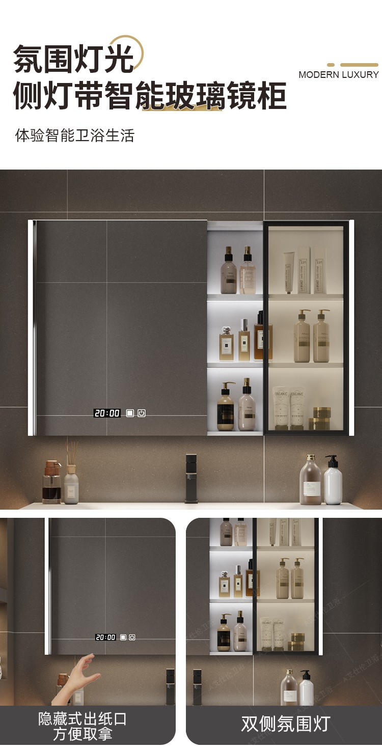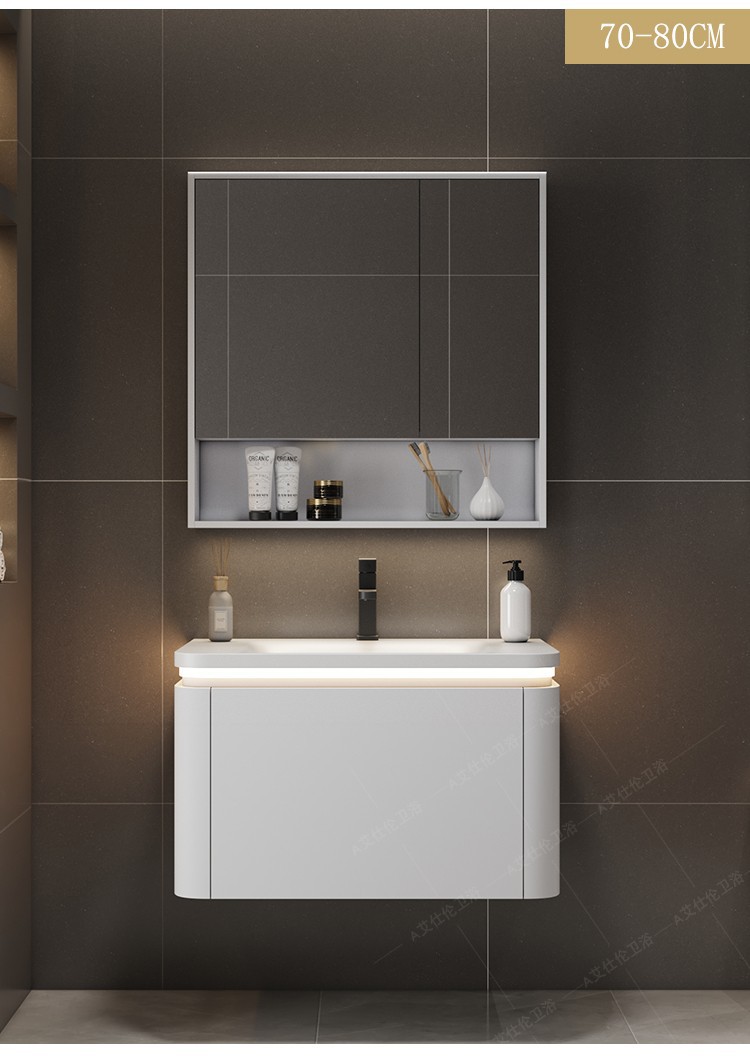 - Z35 intelligent backlit full mirror cabinet 80CM can withstand Li one basin white