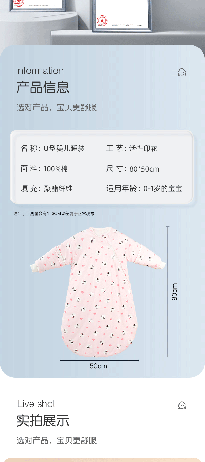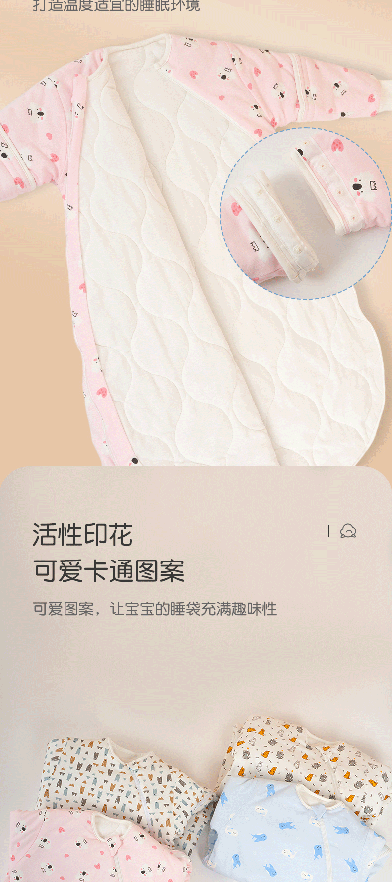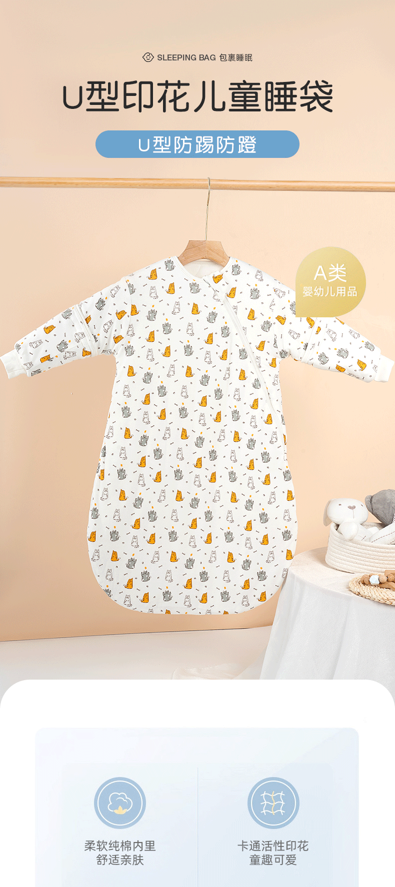 Sleeping bag baby Class a autumn and winter cartoon baby anti kick quilt removable zipper warm newborn U shaped sleeping bag