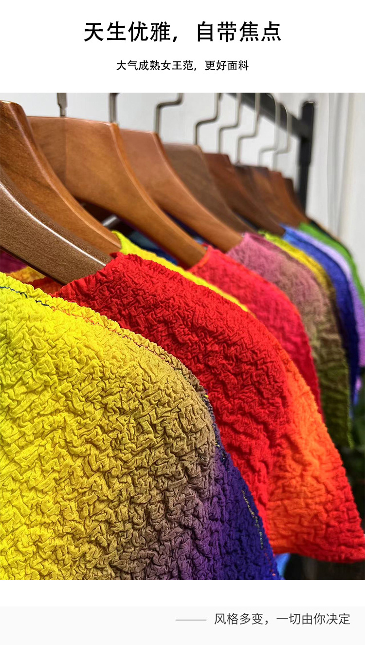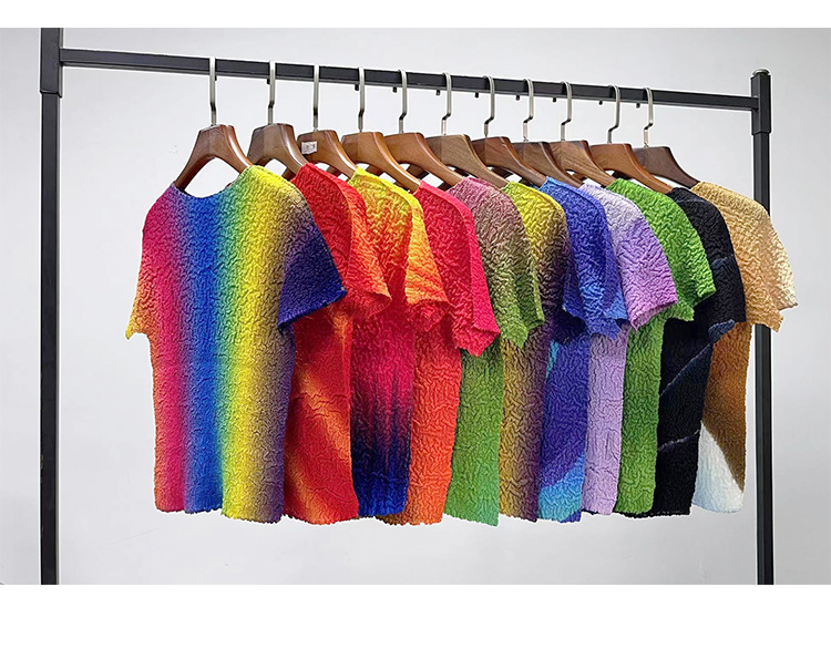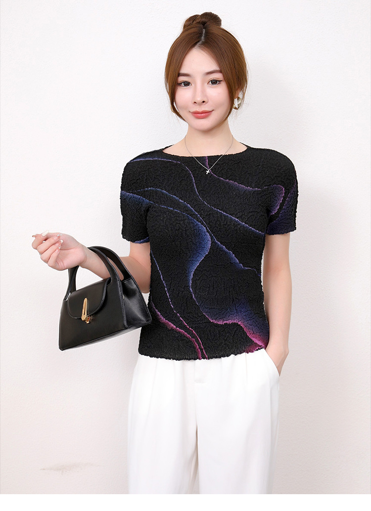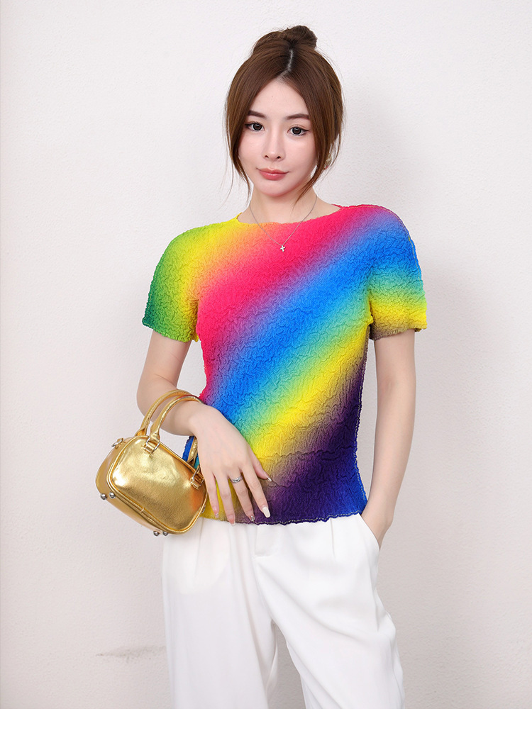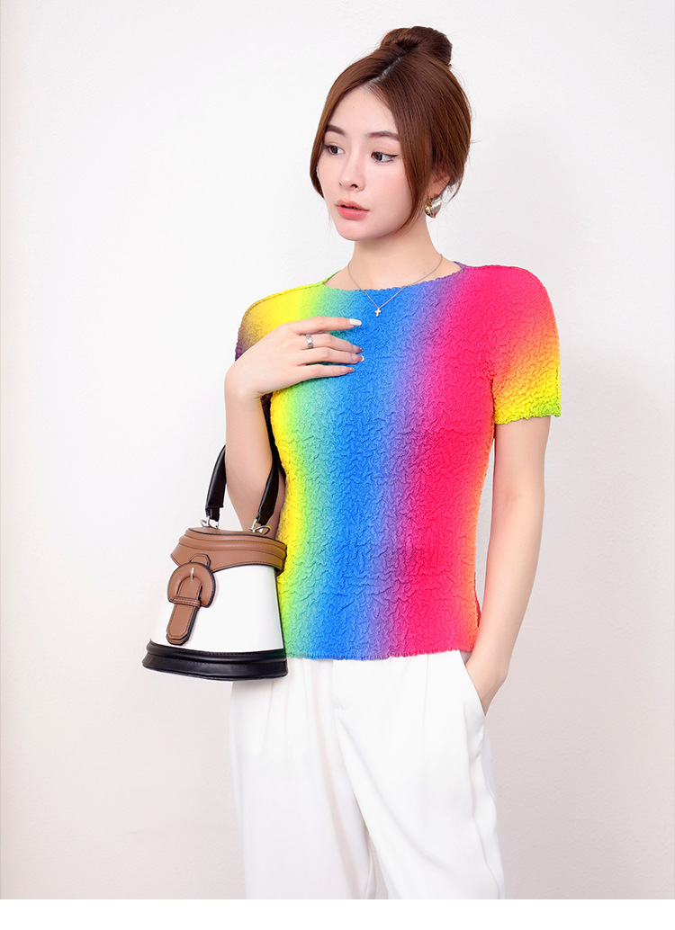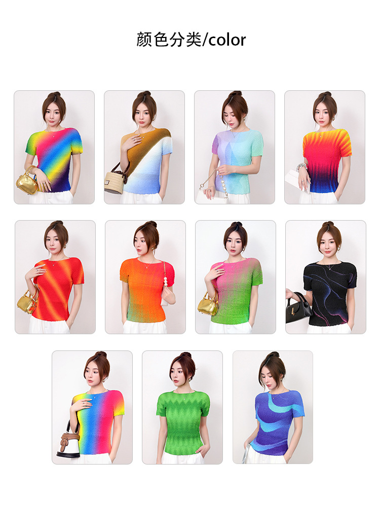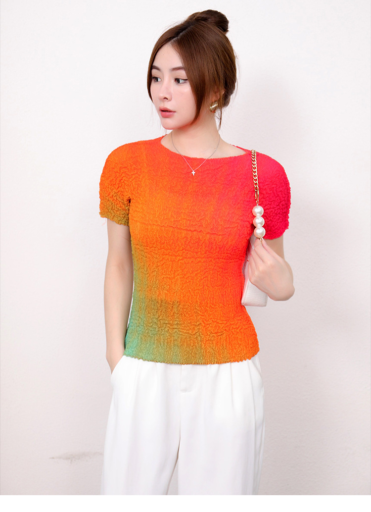Slimming Meat Covering Top Women s 2024 Summer Women s Design Sense T Shirt Short Sleeved Gradient Base Shirt Miyake Pleated Top