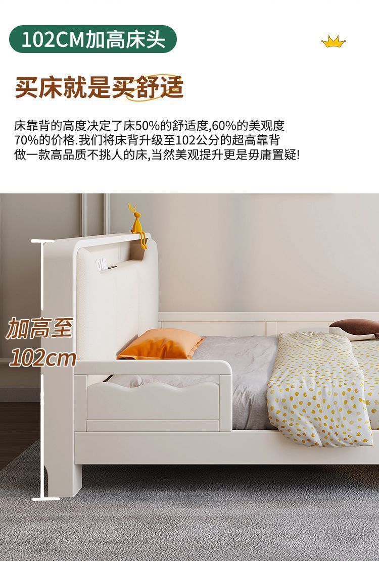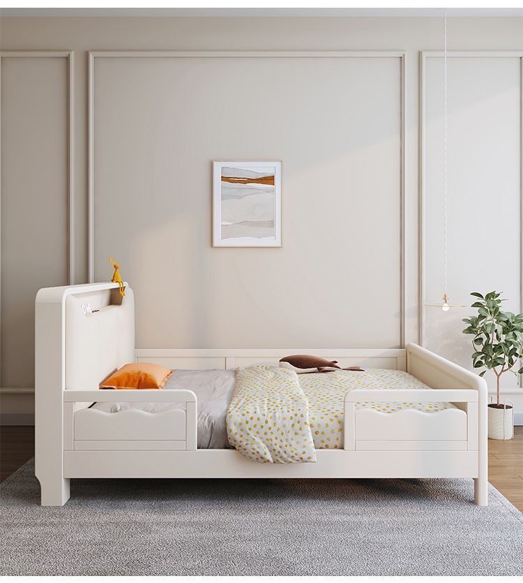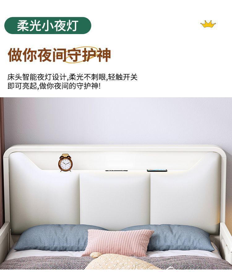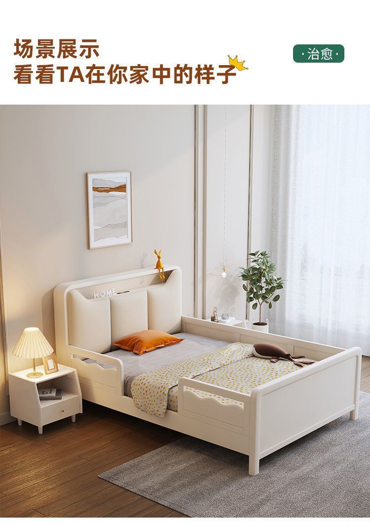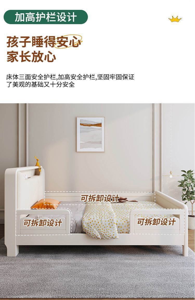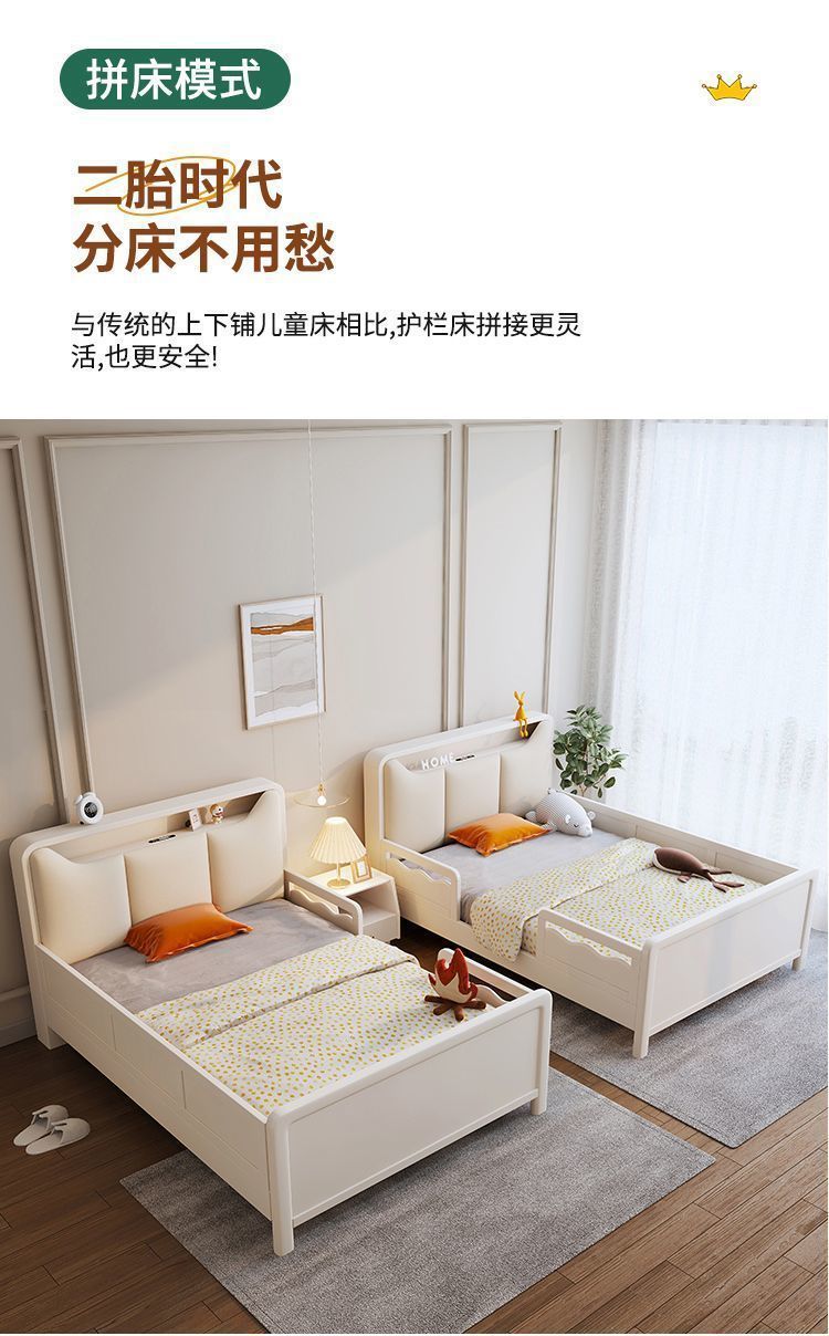 Small Apartment Light Luxury White Boys and Girls with Guardrail Integrated Simple Solid Wooden Bed Children s Bed Bedroom American Bed