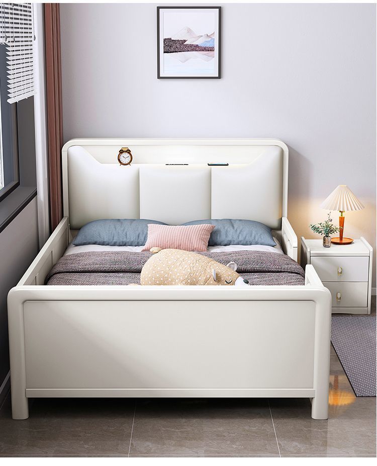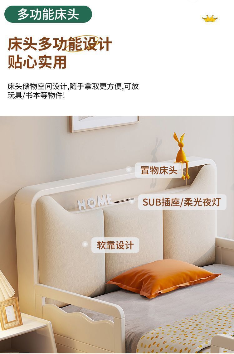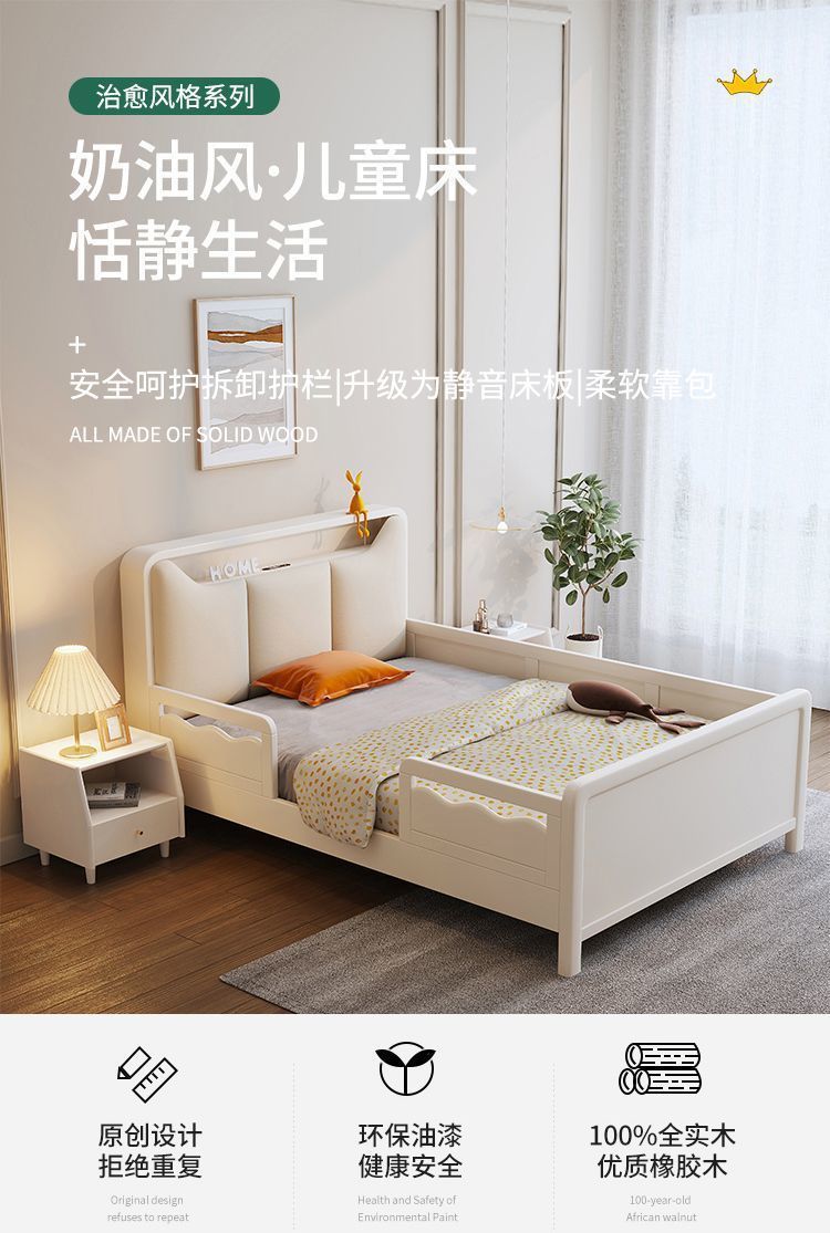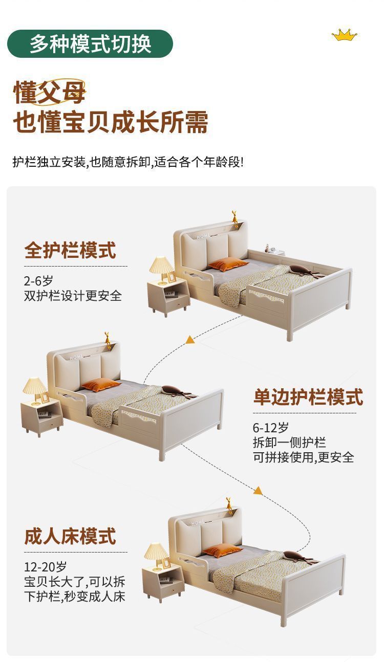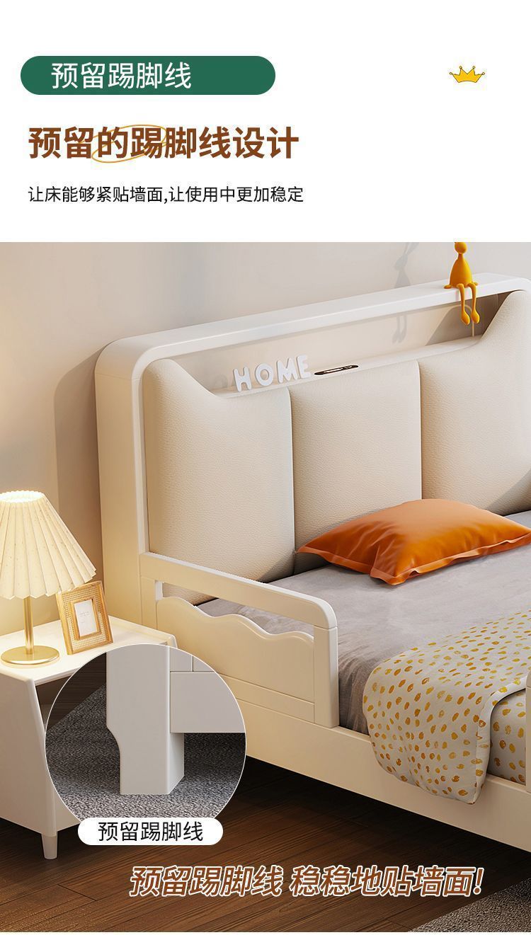 Small Apartment Light Luxury White Boys and Girls with Guardrail Integrated Simple Solid Wooden Bed Children s Bed Bedroom American Bed