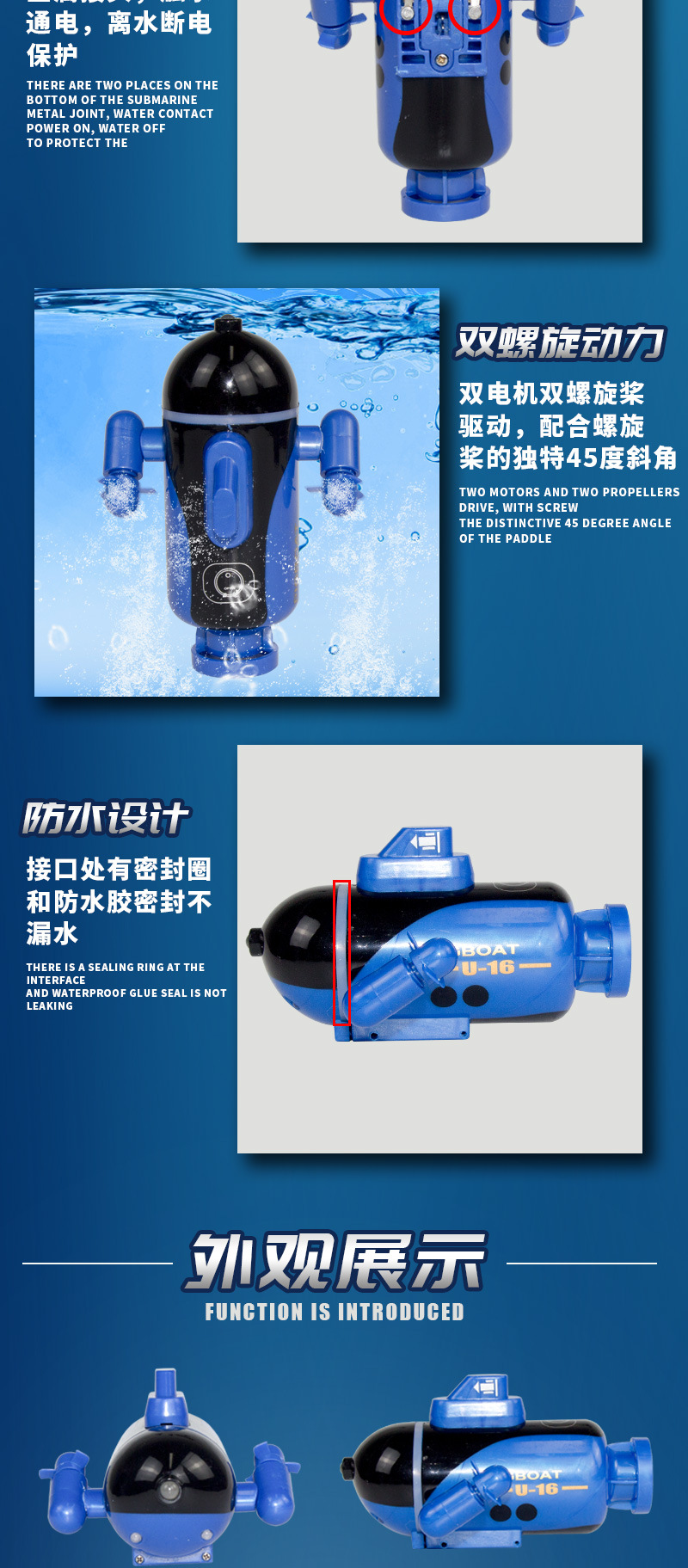 Small Remote Control Nuclear Submarine Submarine Charging Hovercraft Toy Boat Speedboat Mini Waterproof Fish Tank Battery