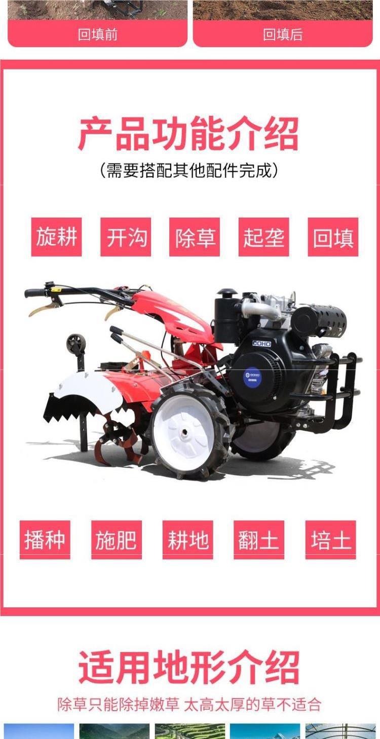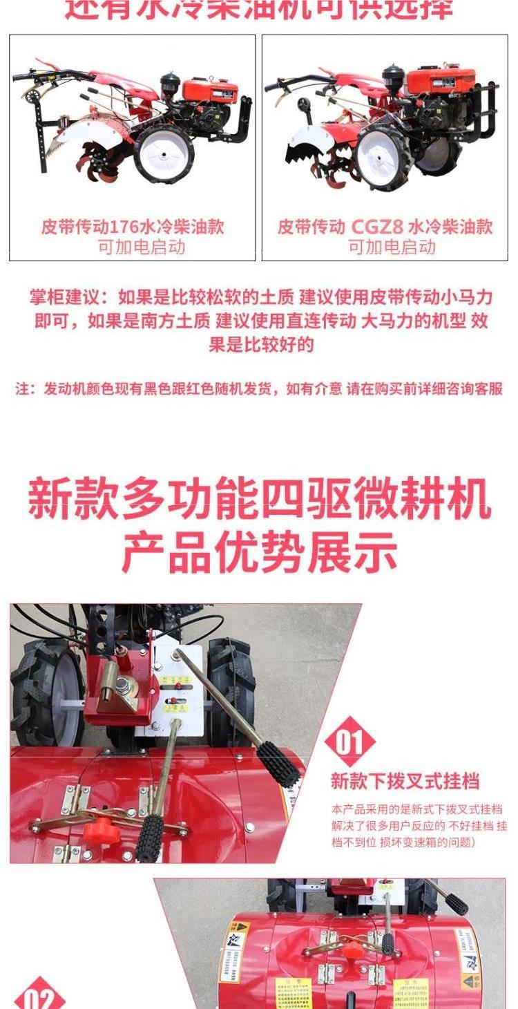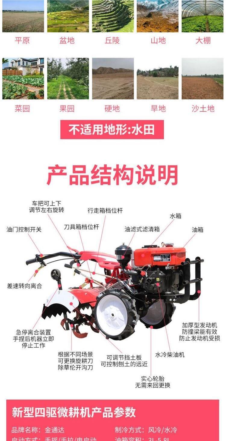 Small agricultural factory hard soil tillage rotary tiller micro tiller diesel ditching machine plowing four wheel drive tiller farming