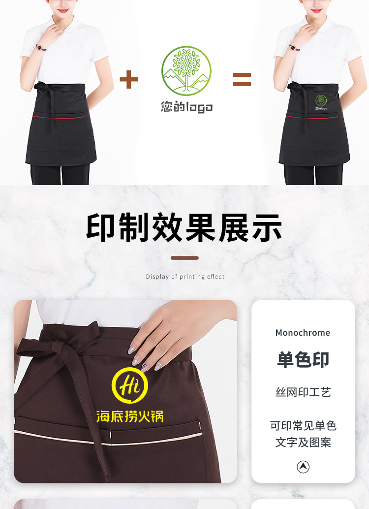 Small apron female half length printed logo Korean fashion kitchen waist restaurant work clothes fruit shop printing