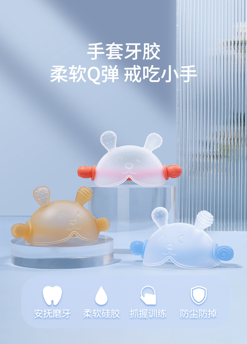 Small mushroom teether infant teether stick baby food grade silicone toy anti eating hand soothing artifact bite glue