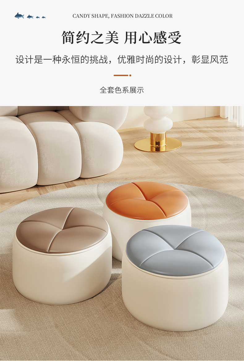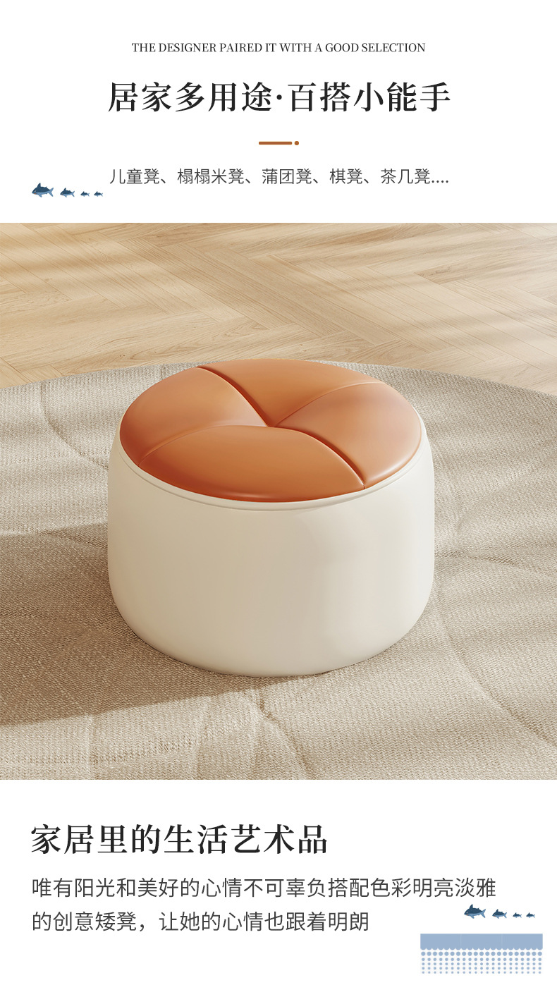 Small stool household round stool living room leather stool sitting Pier doorway shoe changing stool children s low stool modern simple pumpkin stool