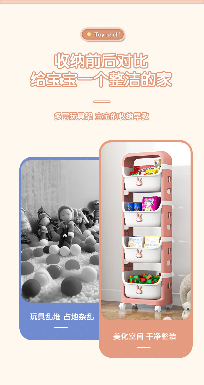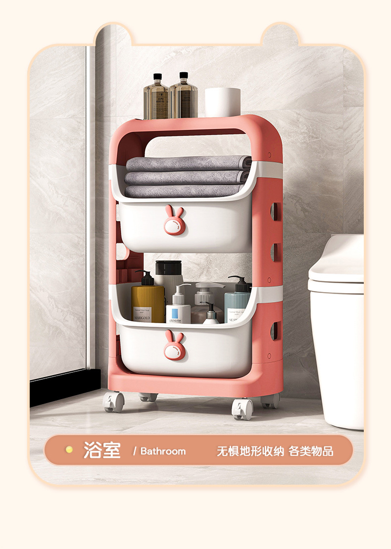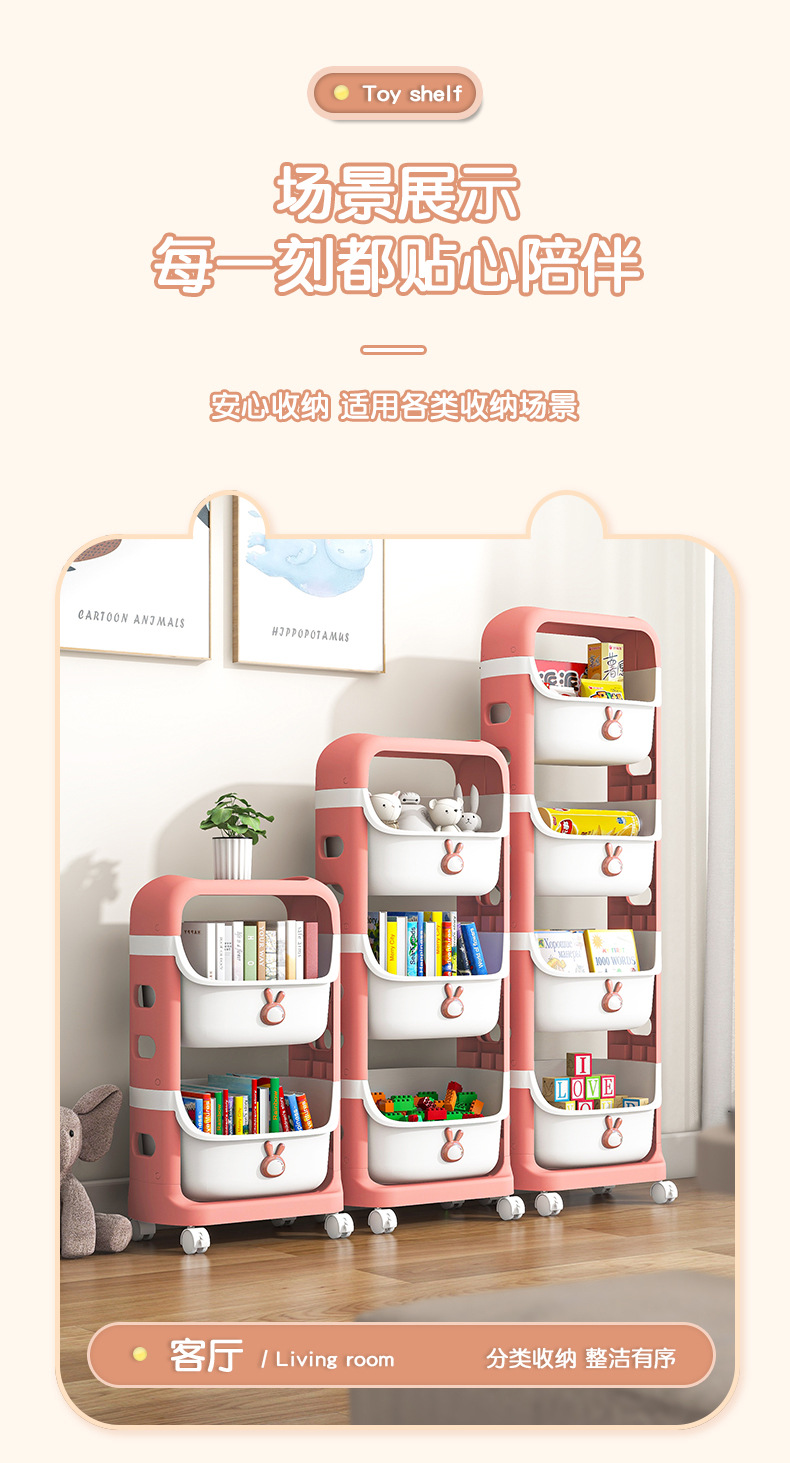 - Rabbit cartoon toy shelf [4 layers-pink]]