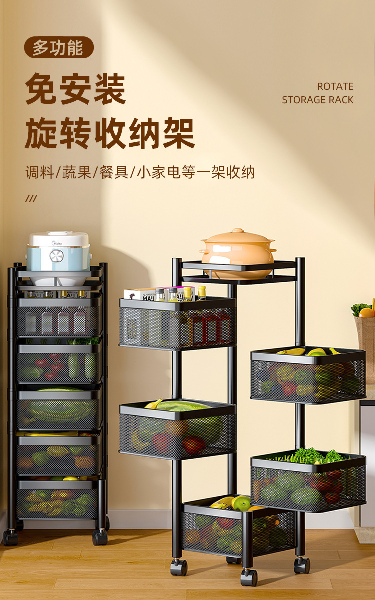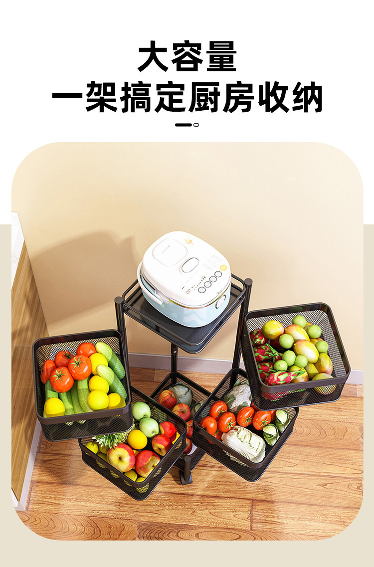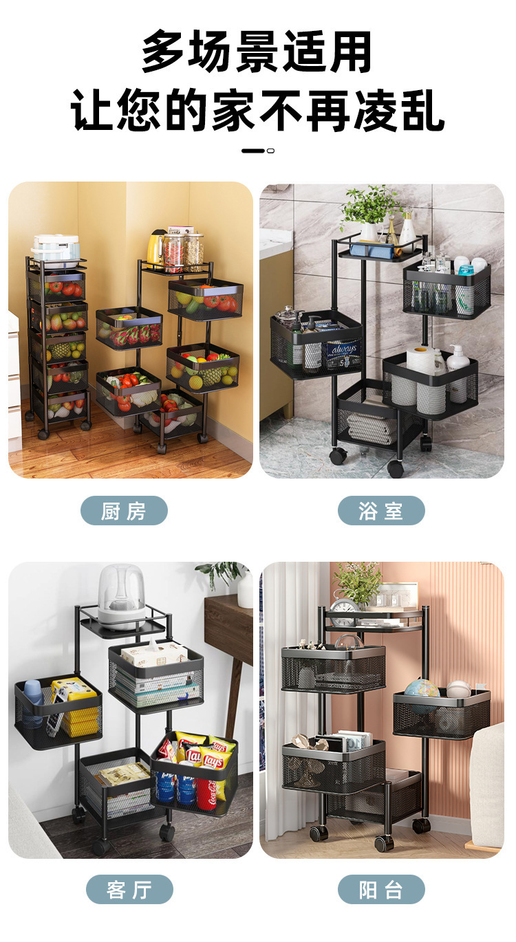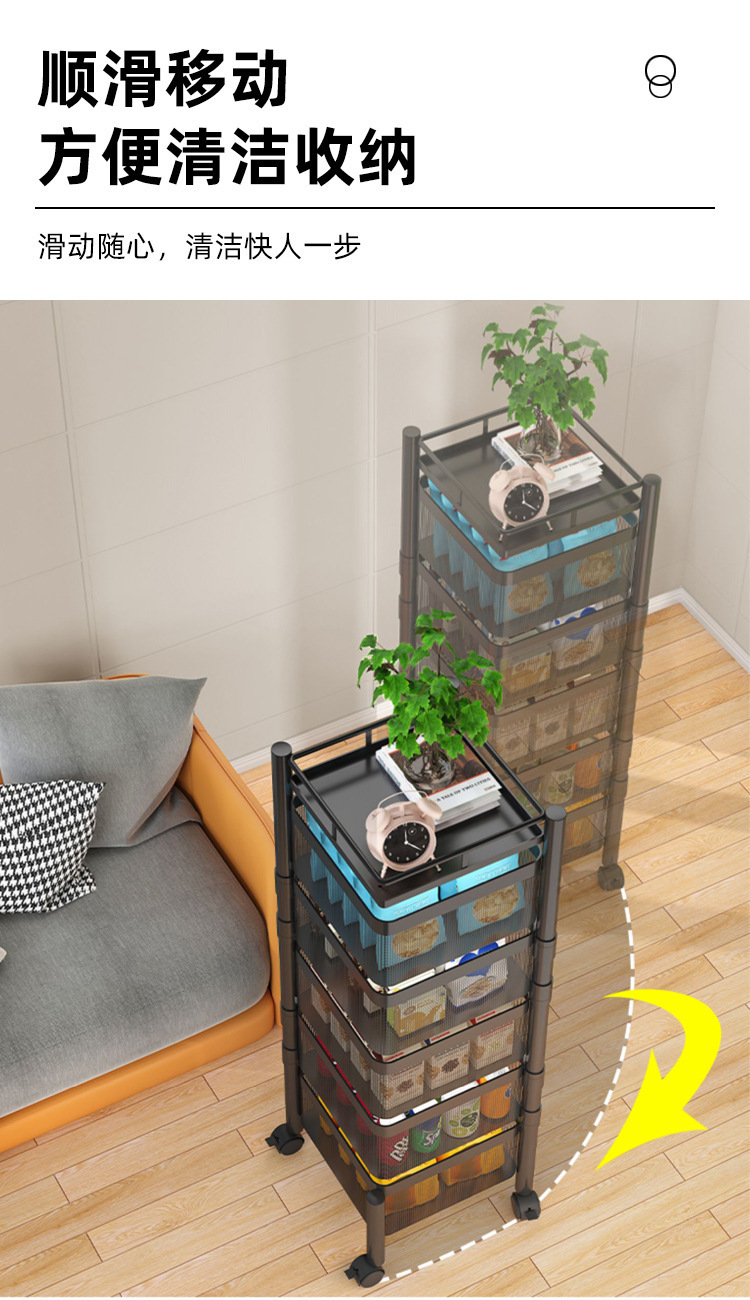 Snack storage rack living room rotating storage rack kitchen fruit and vegetable basket storage cabinet storage box trolley rack