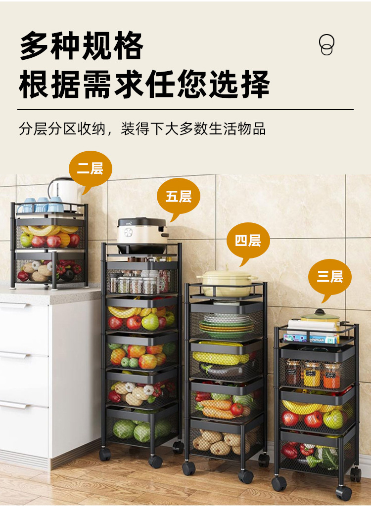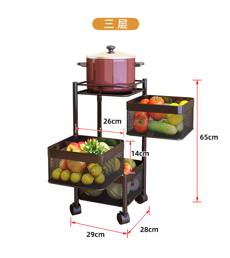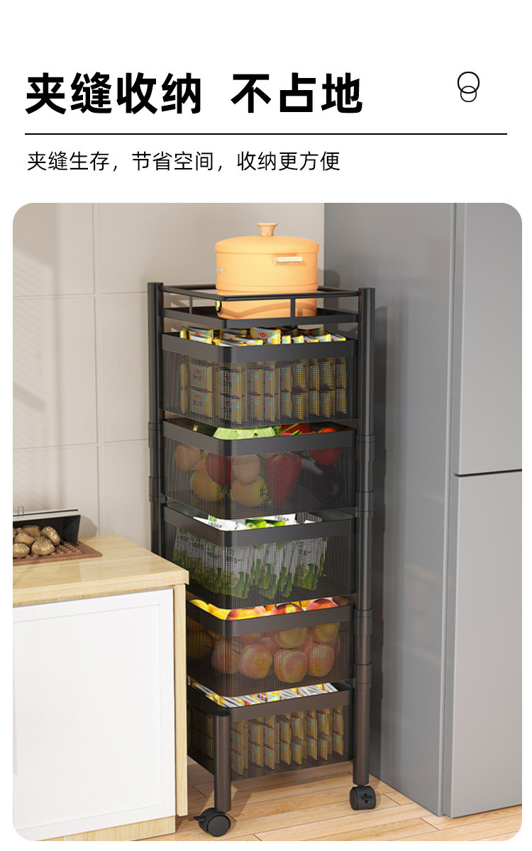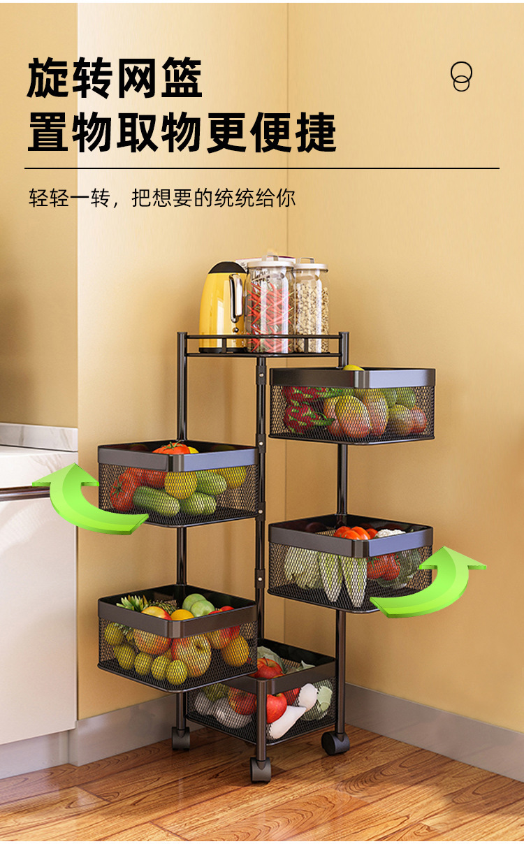 Snack storage rack living room rotating storage rack kitchen fruit and vegetable basket storage cabinet storage box trolley rack