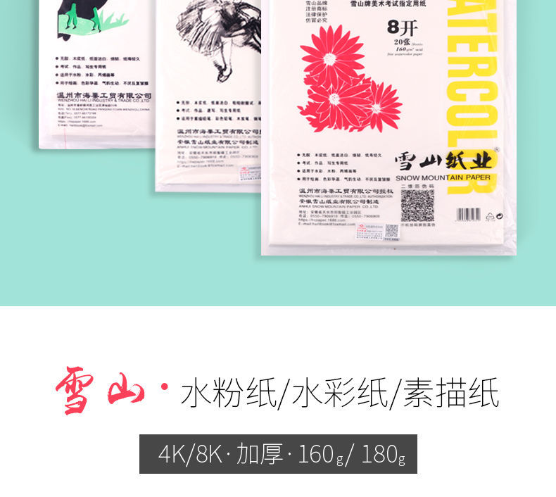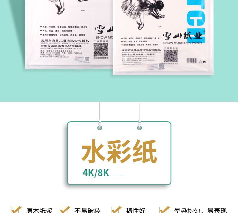Snow mountain sketch paper 4k8k gouache watercolor paper white yellowish thickened student art paper drawing paper 160 180g