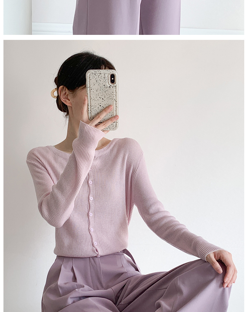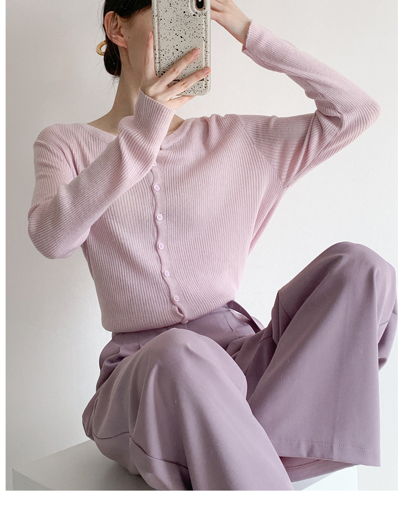 Soft Purple Knitted Cardigan Women s Thin Outer Long Sleeved Air conditioning Shirt for Small Women s Inner Shoulder Short Top