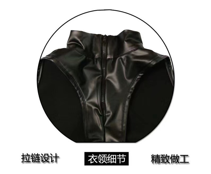 Soft Yanluo sexy lingerie patent leather SM jumpsuit sexy mask sleeveless turtleneck corset female slave maid outfit 043