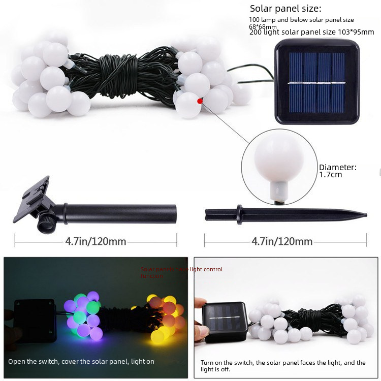 Solar LED string lights 200 lights small white ball milk bubble outdoor landscape courtyard decoration lights Christmas holiday lighting