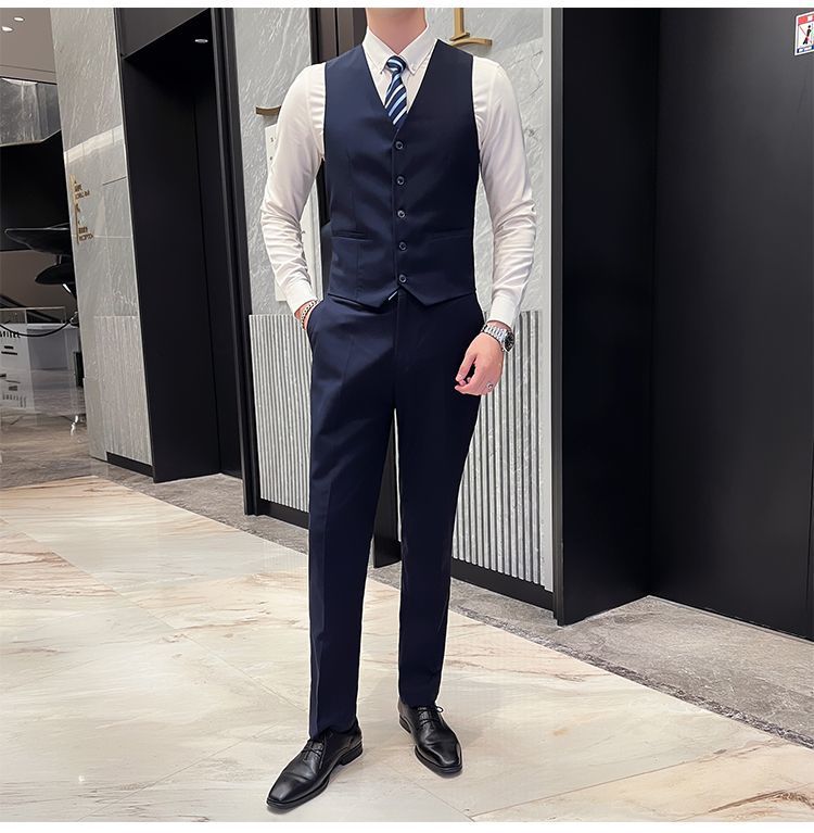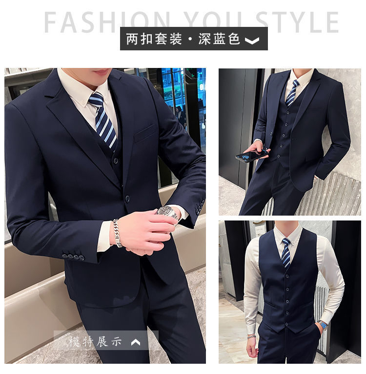 Solid Color Two Button Suit Suit Suit Men s Handsome Set Casual Business Career Wedding Groom Best Man