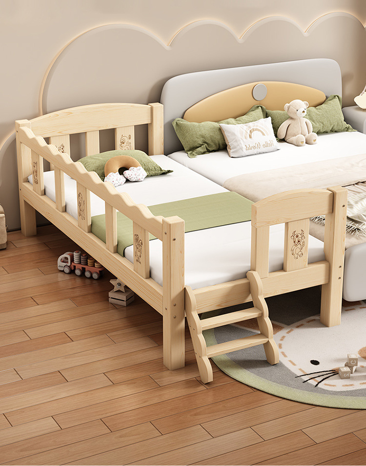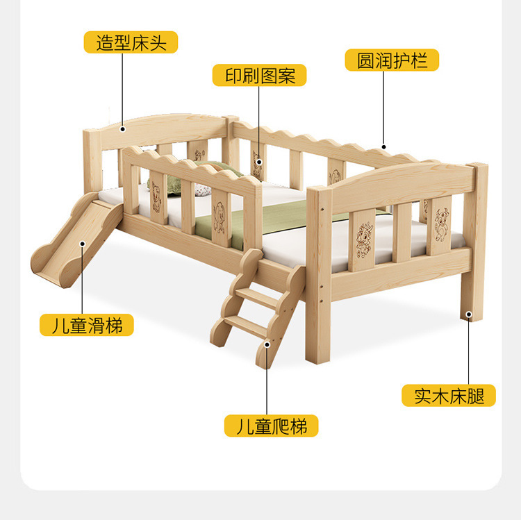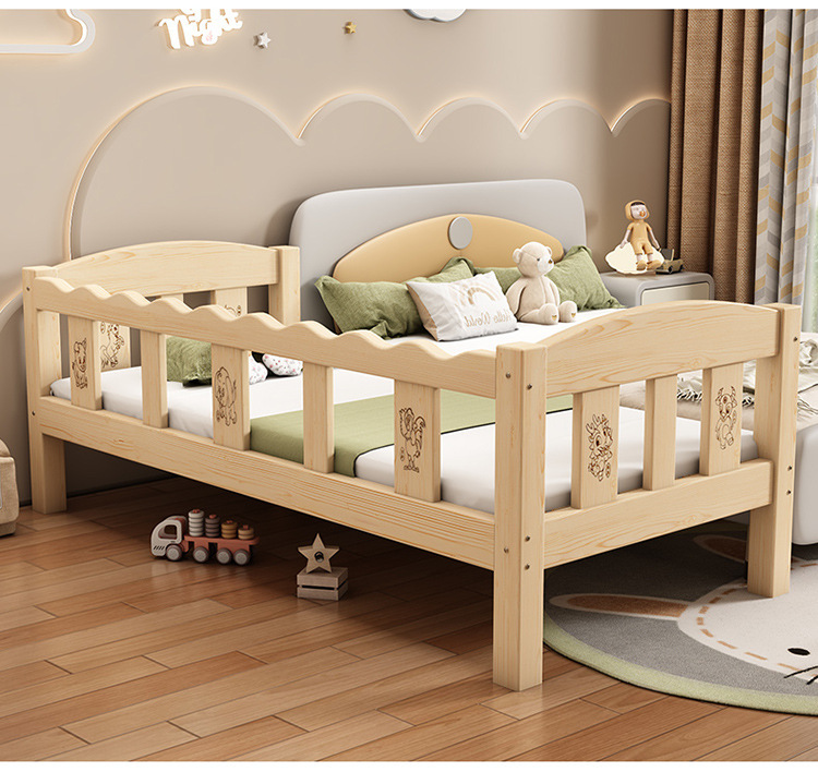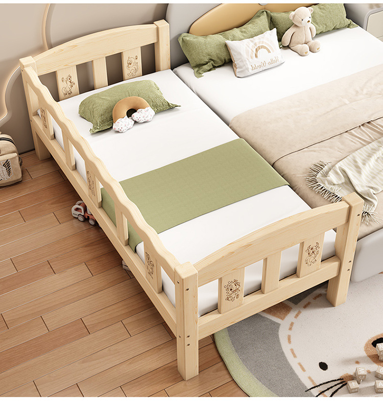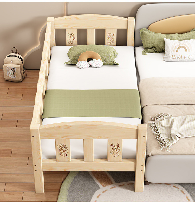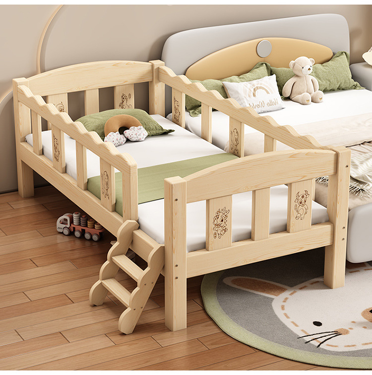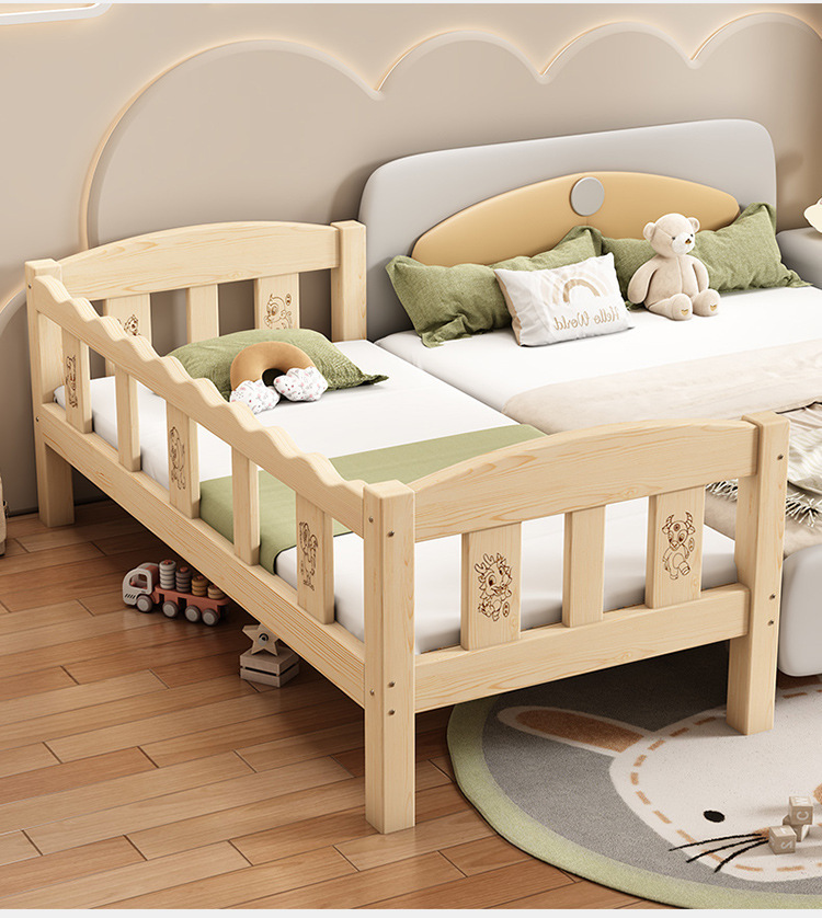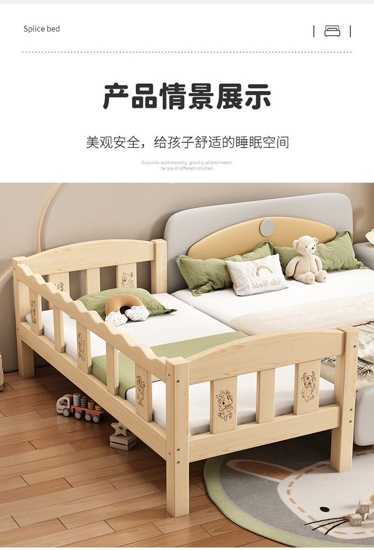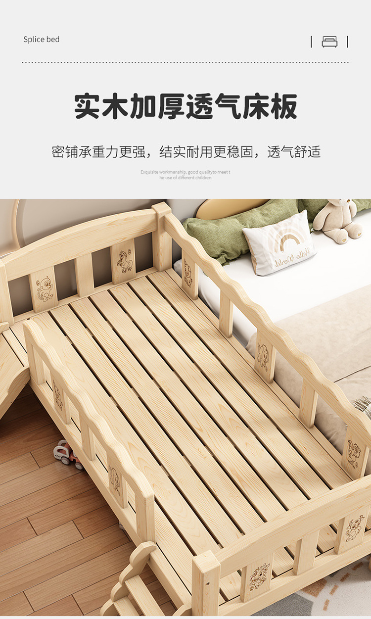 Solid Wood Baby Bed Children s Baby Bed with Guardrail Fence Stitching Big Bed Widened Boys and Girls Small Bed Slide Bed