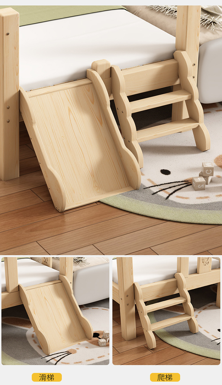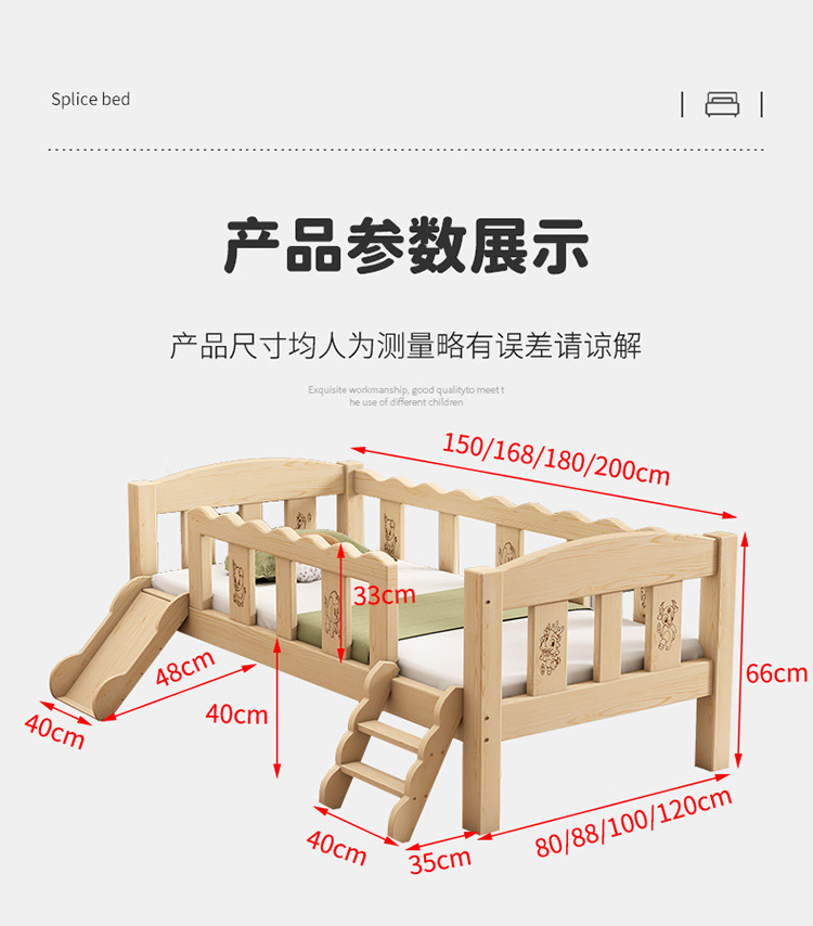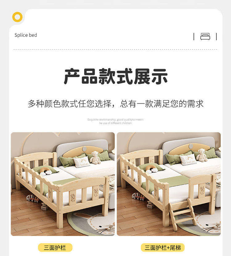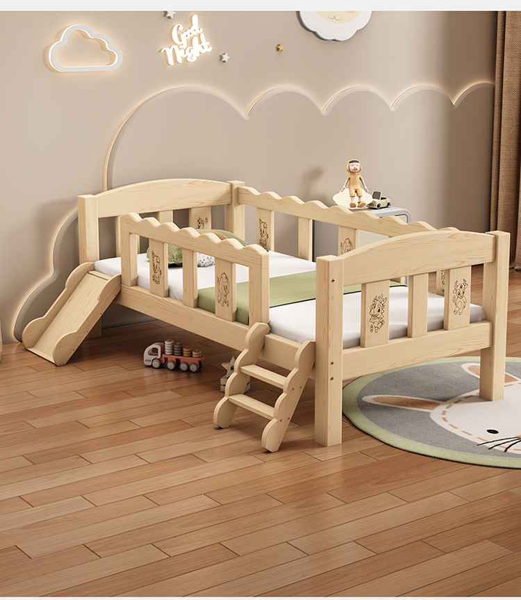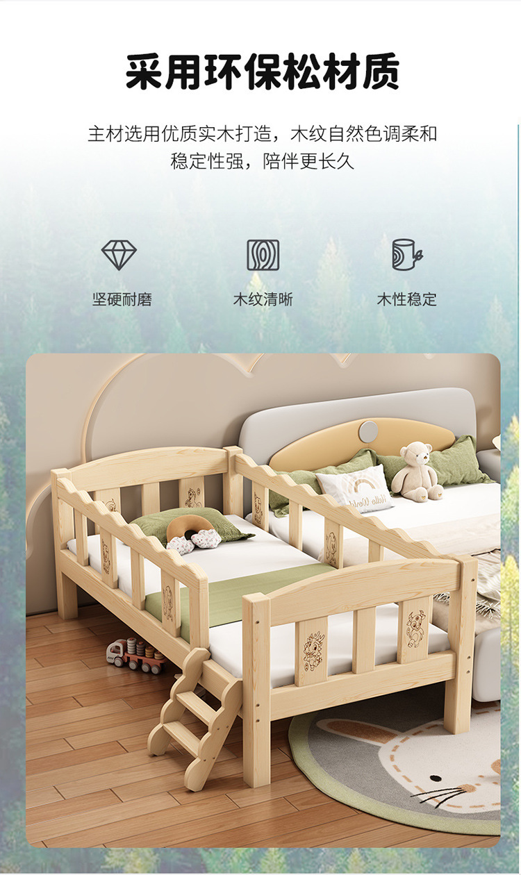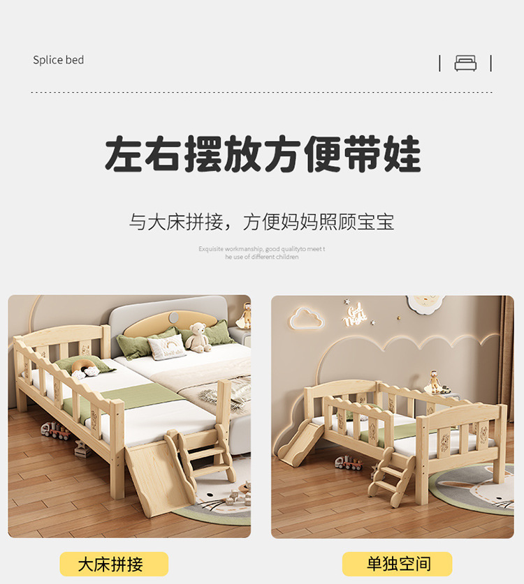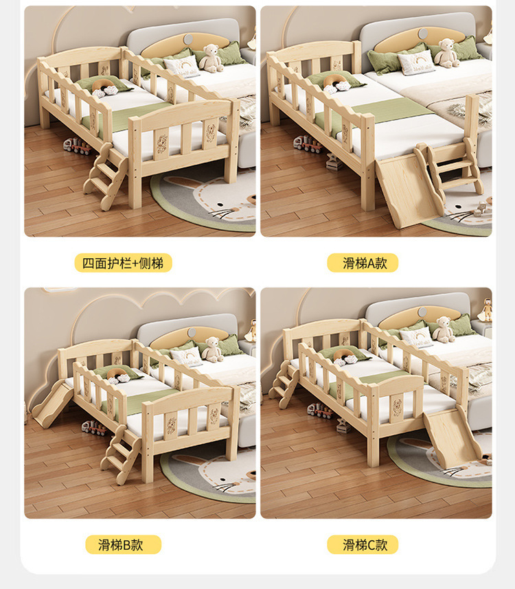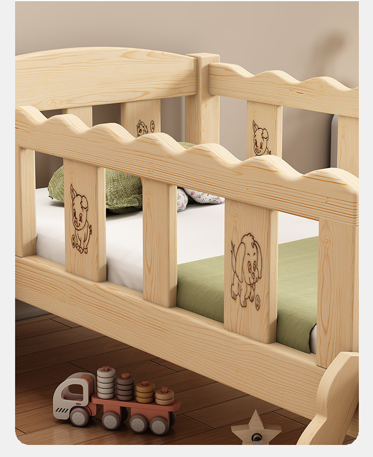 Solid Wood Baby Bed Children s Baby Bed with Guardrail Fence Stitching Big Bed Widened Boys and Girls Small Bed Slide Bed