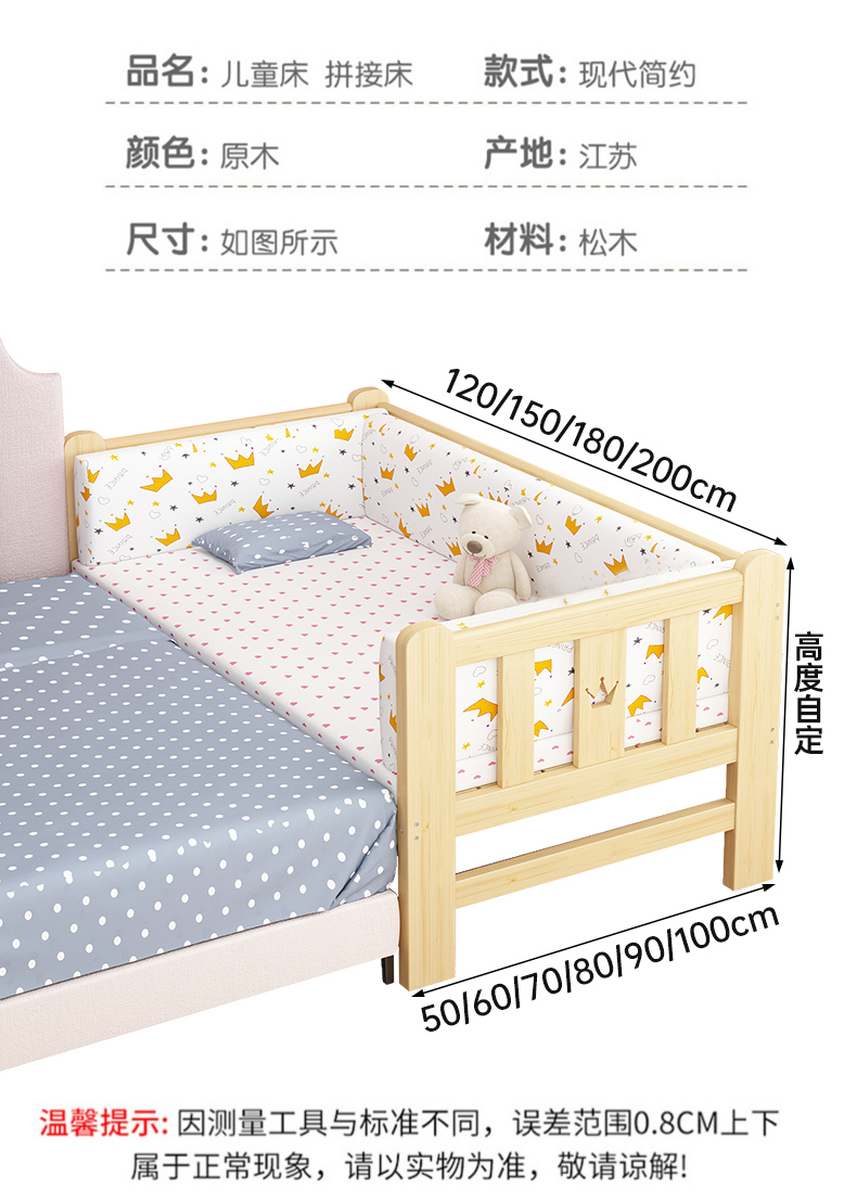 Solid Wood Children s Bed Splicing Bed with Guardrail Baby Bed Single Small Bed Splicing Big Bed Side Widened Bed