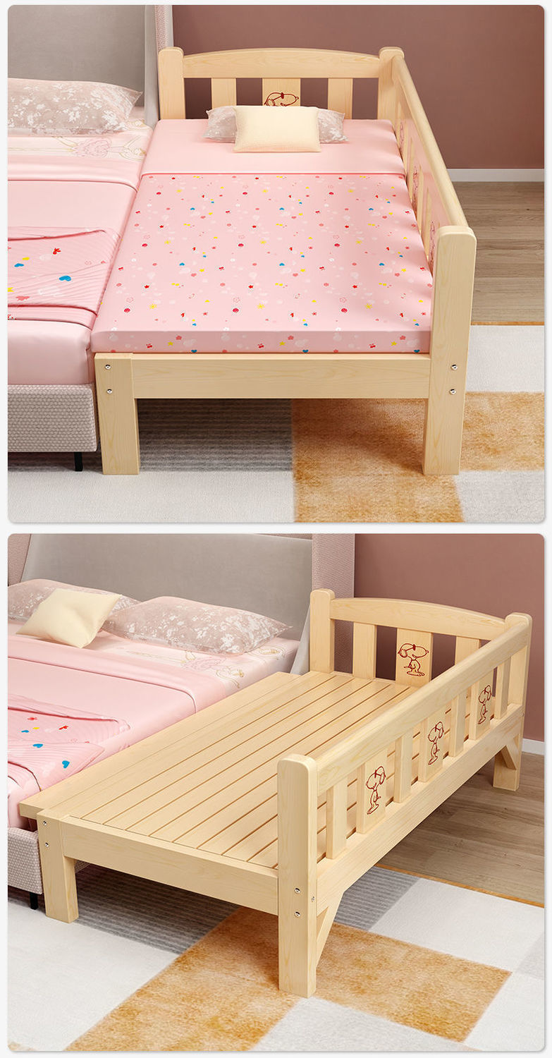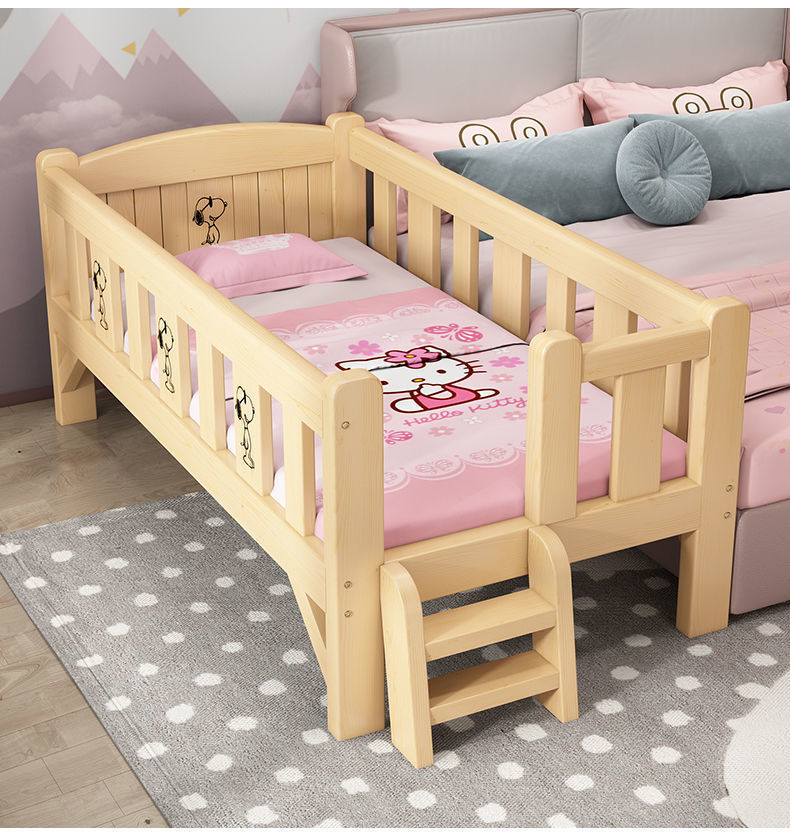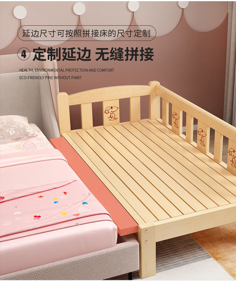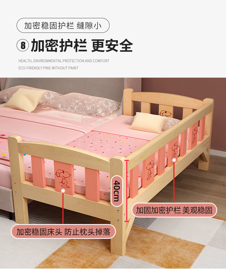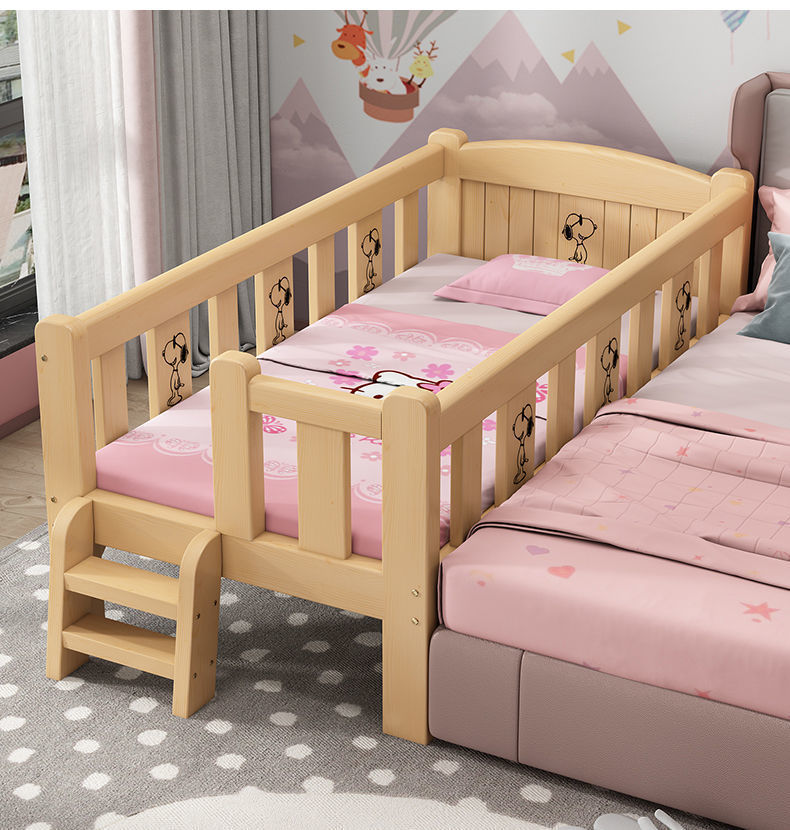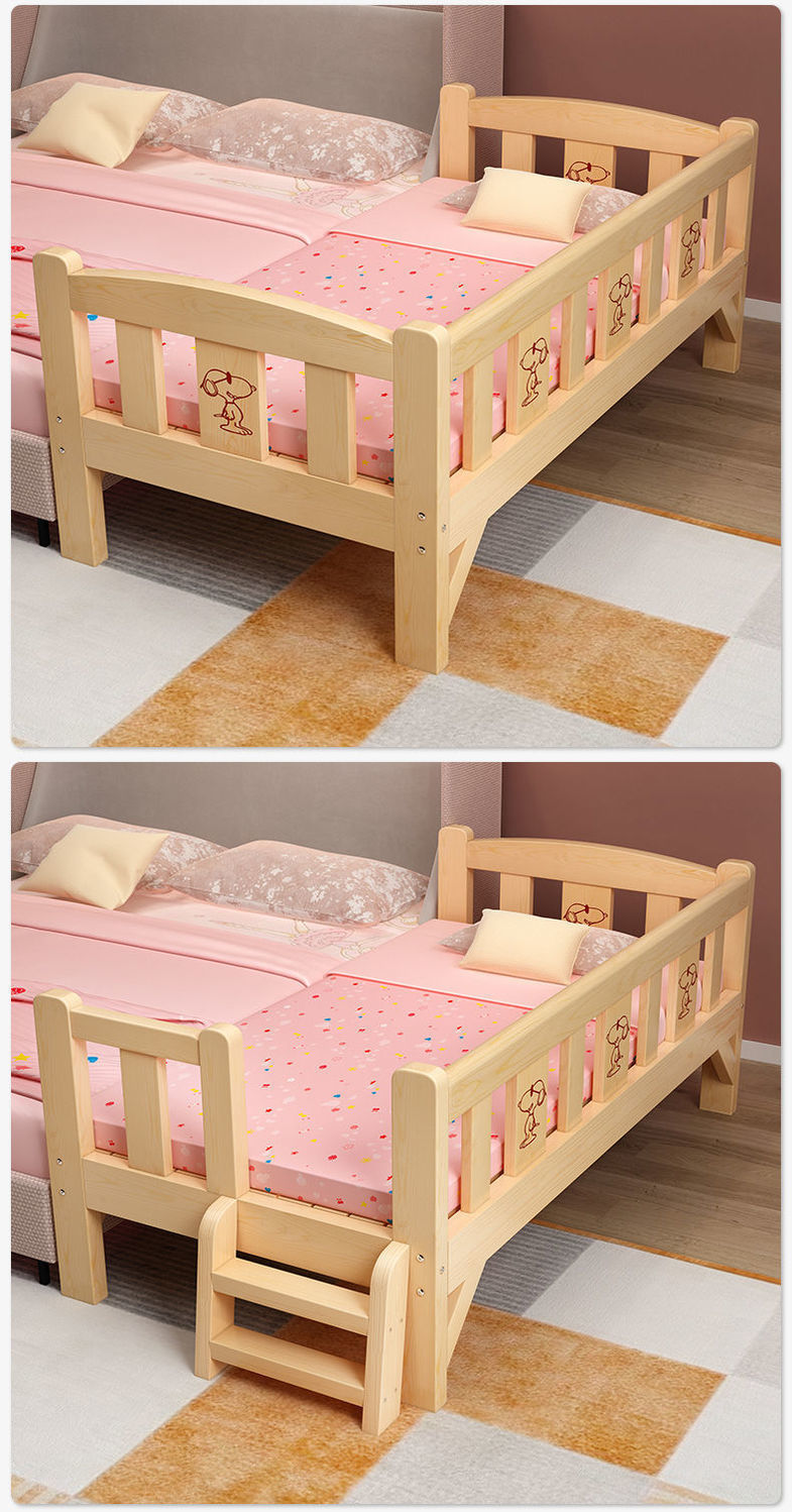 Solid Wood Children s Bed with Guardrail Baby s Crib Newborn Boys and Girls Spliced Big Bed Single Bed Bed