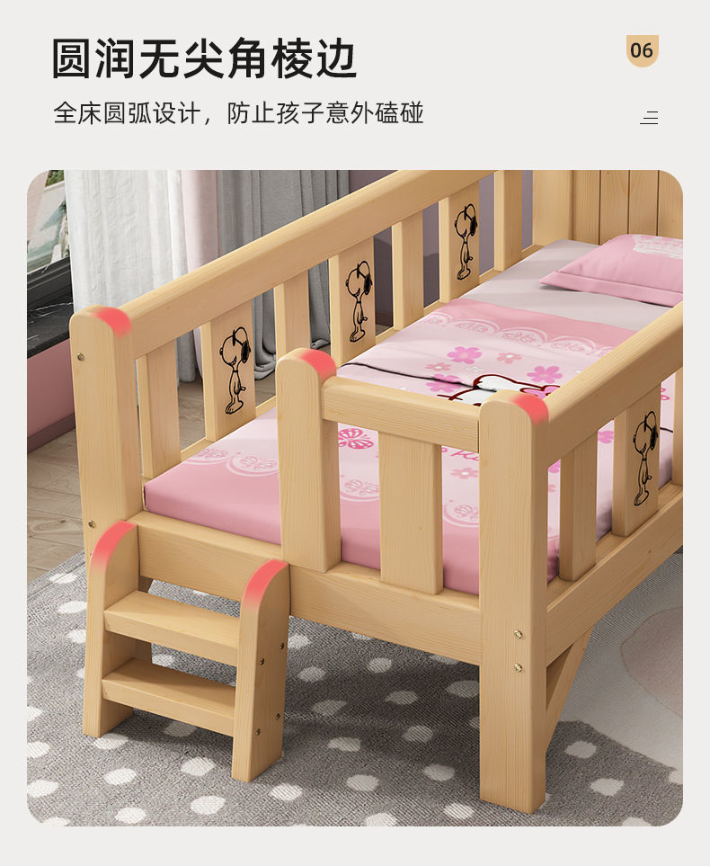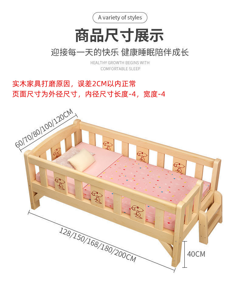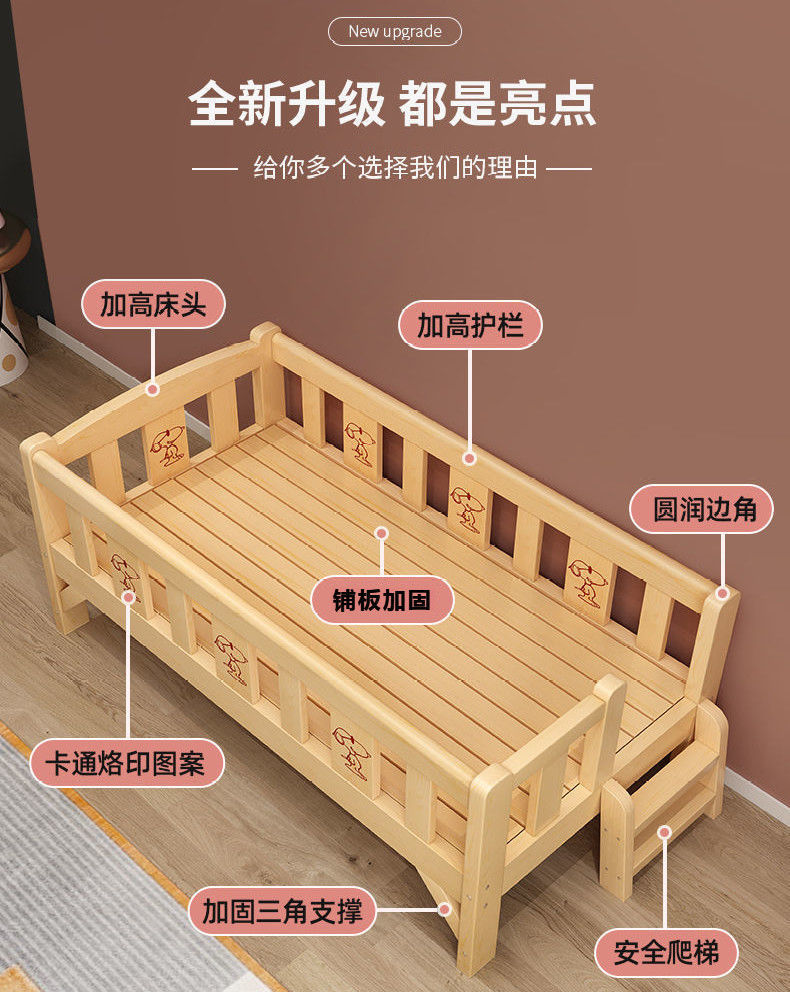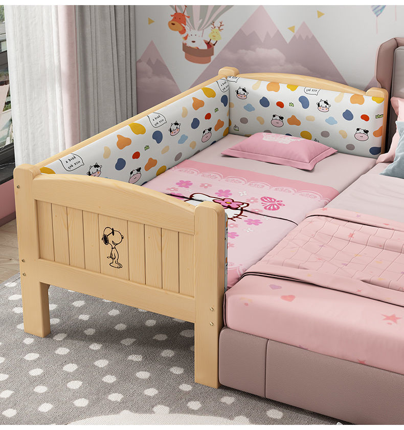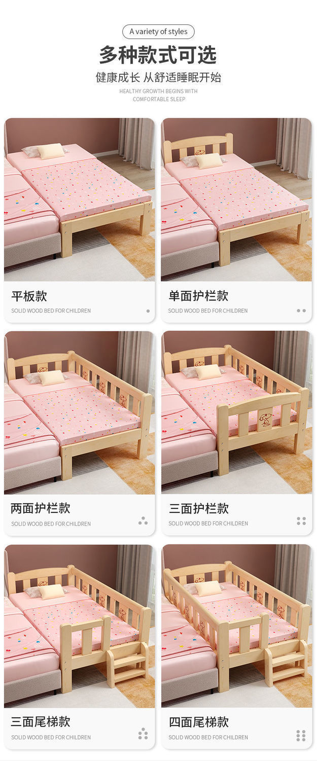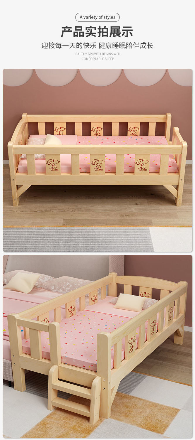 Solid Wood Children s Bed with Guardrail Baby s Crib Newborn Boys and Girls Spliced Big Bed Single Bed Bed