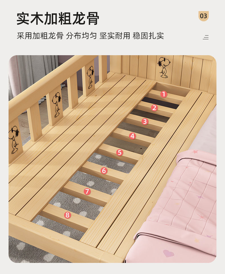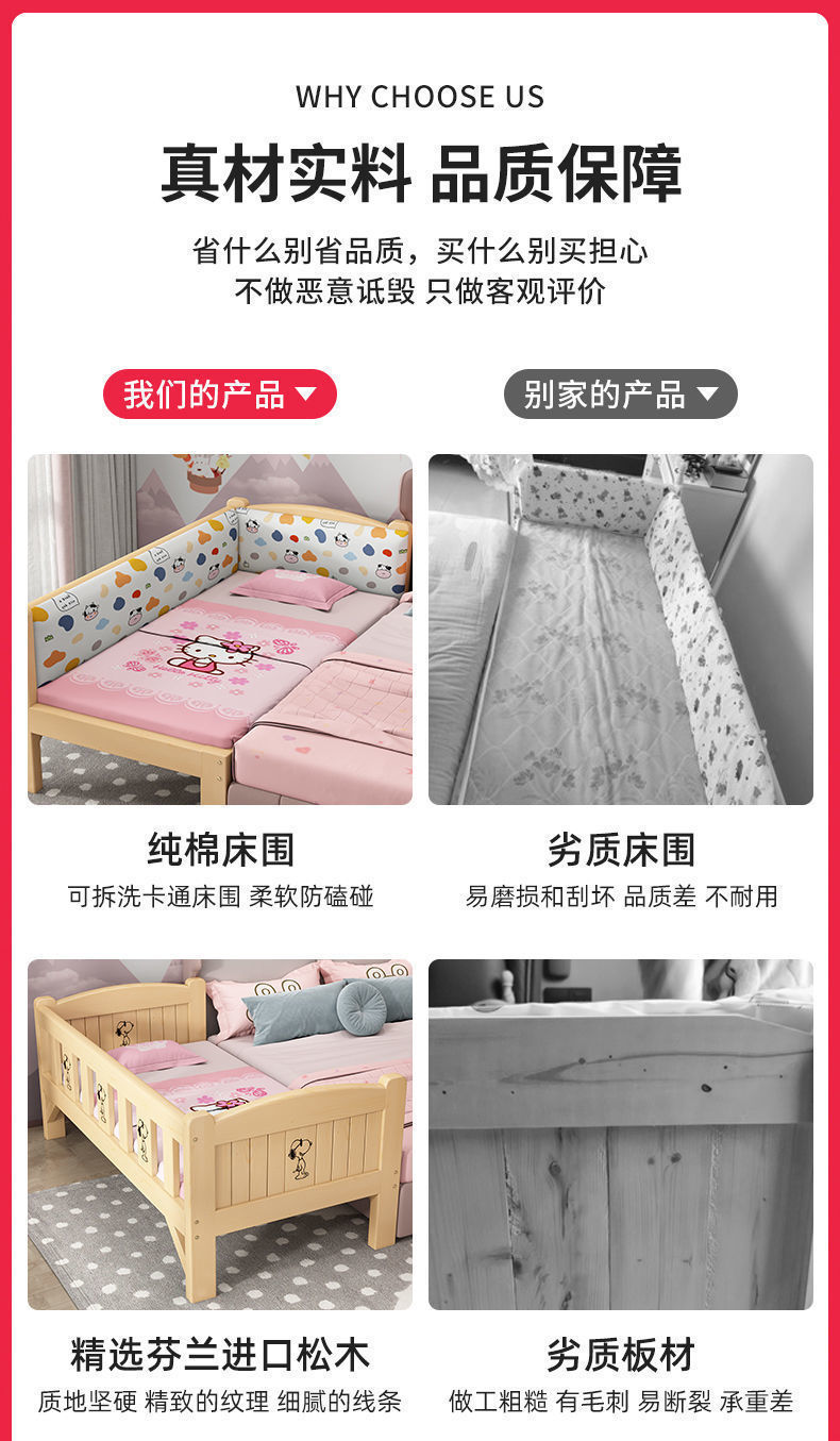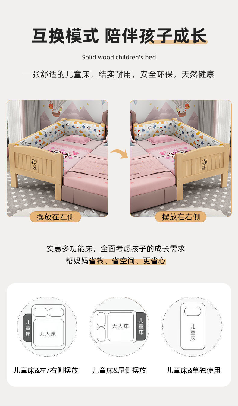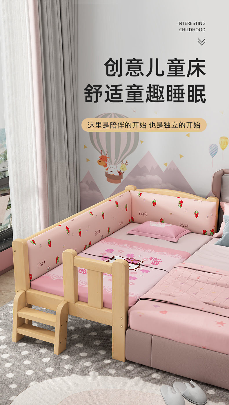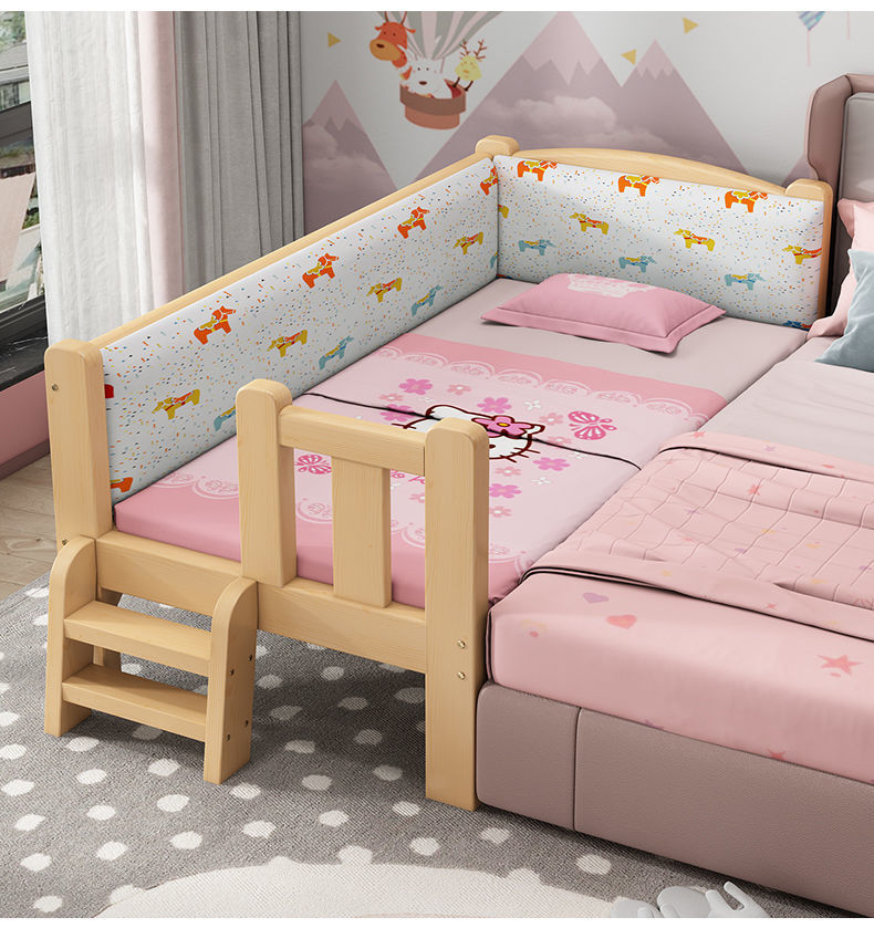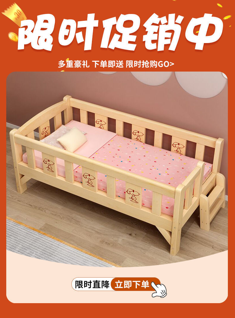 Solid Wood Children s Bed with Guardrail Baby s Crib Newborn Boys and Girls Spliced Big Bed Single Bed Bed