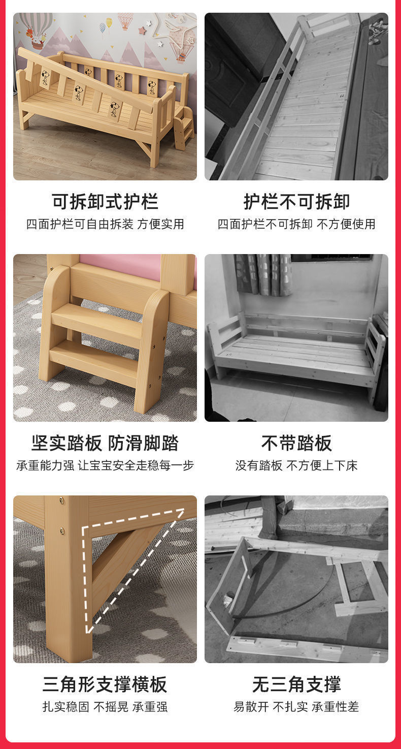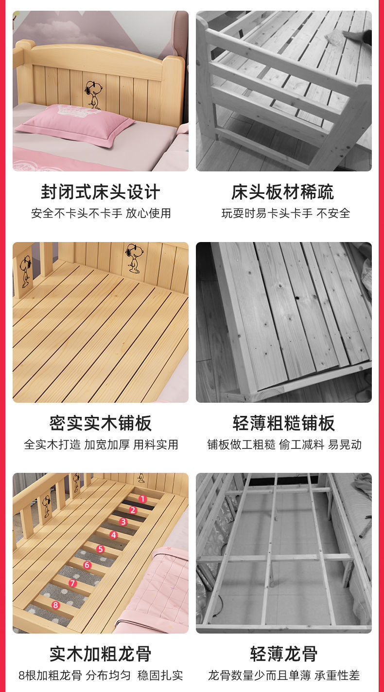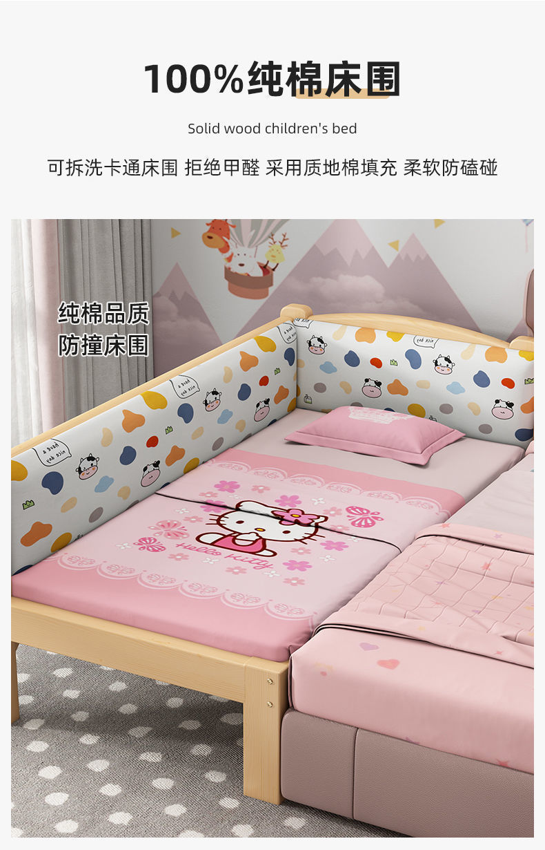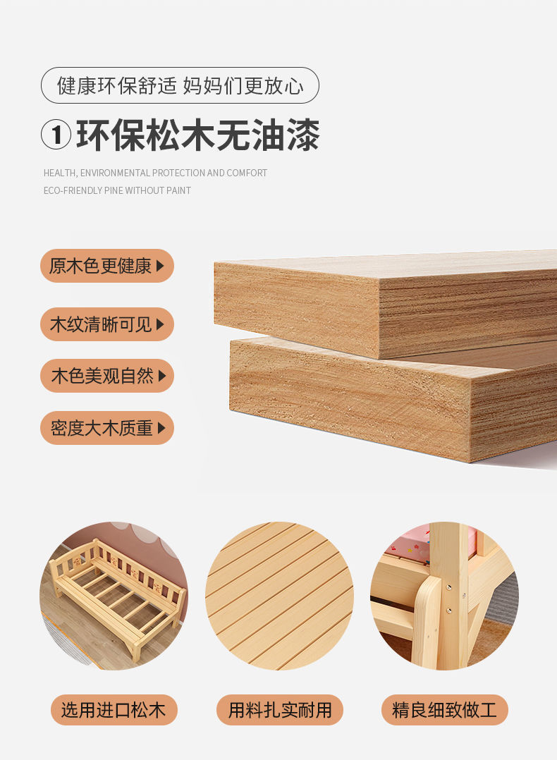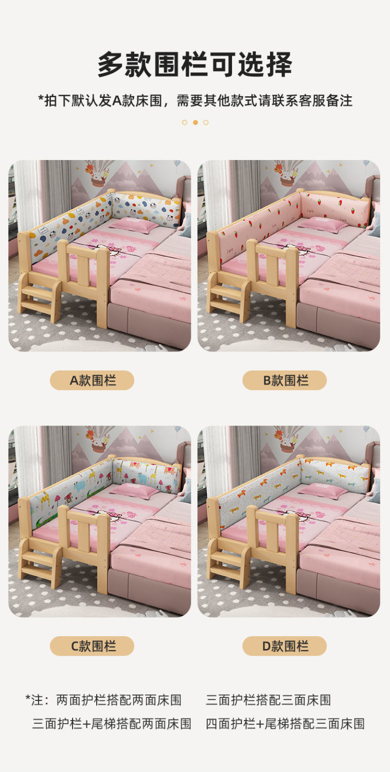 Solid Wood Children s Bed with Guardrail Baby s Crib Newborn Boys and Girls Spliced Big Bed Single Bed Bed