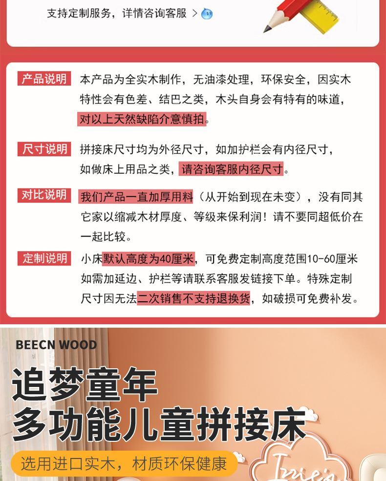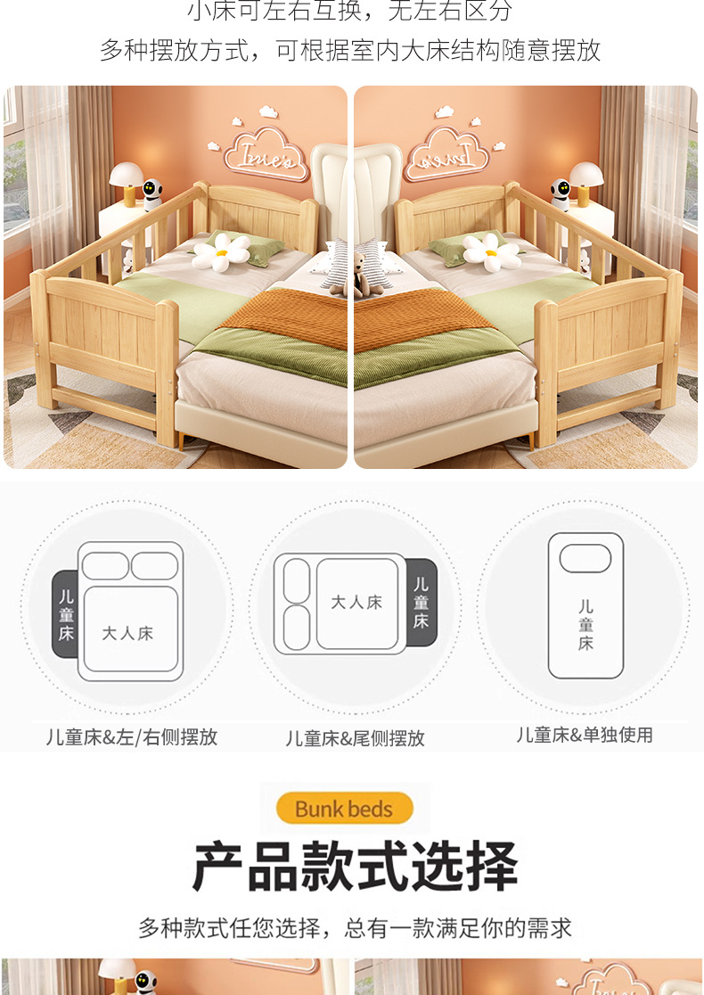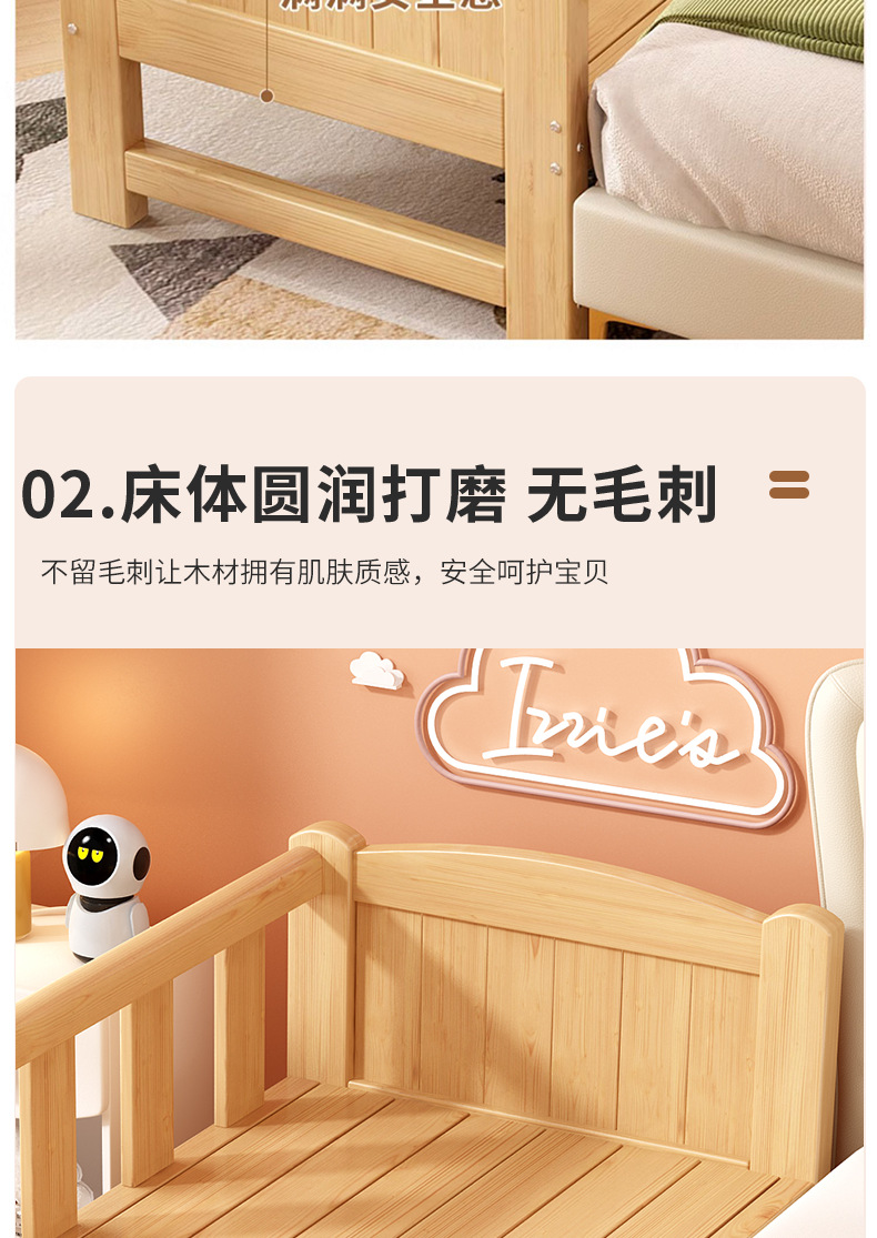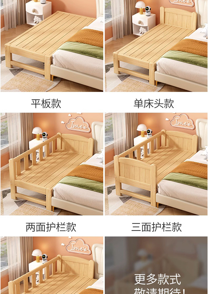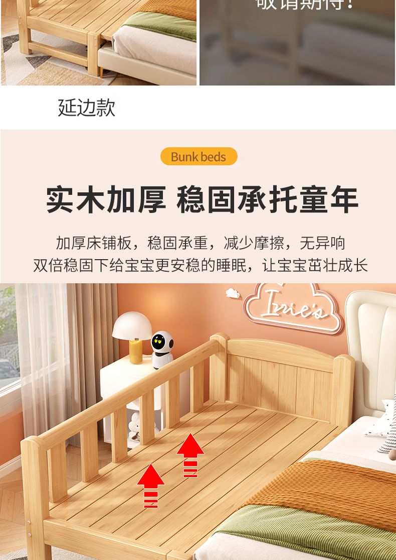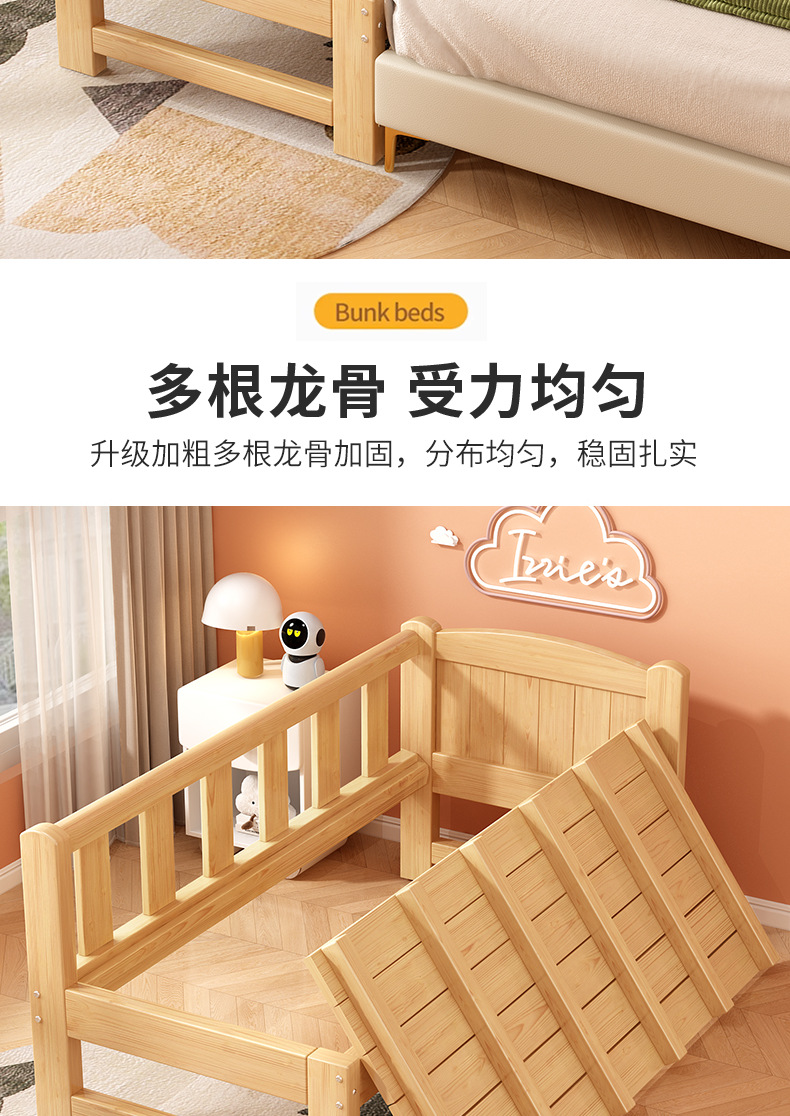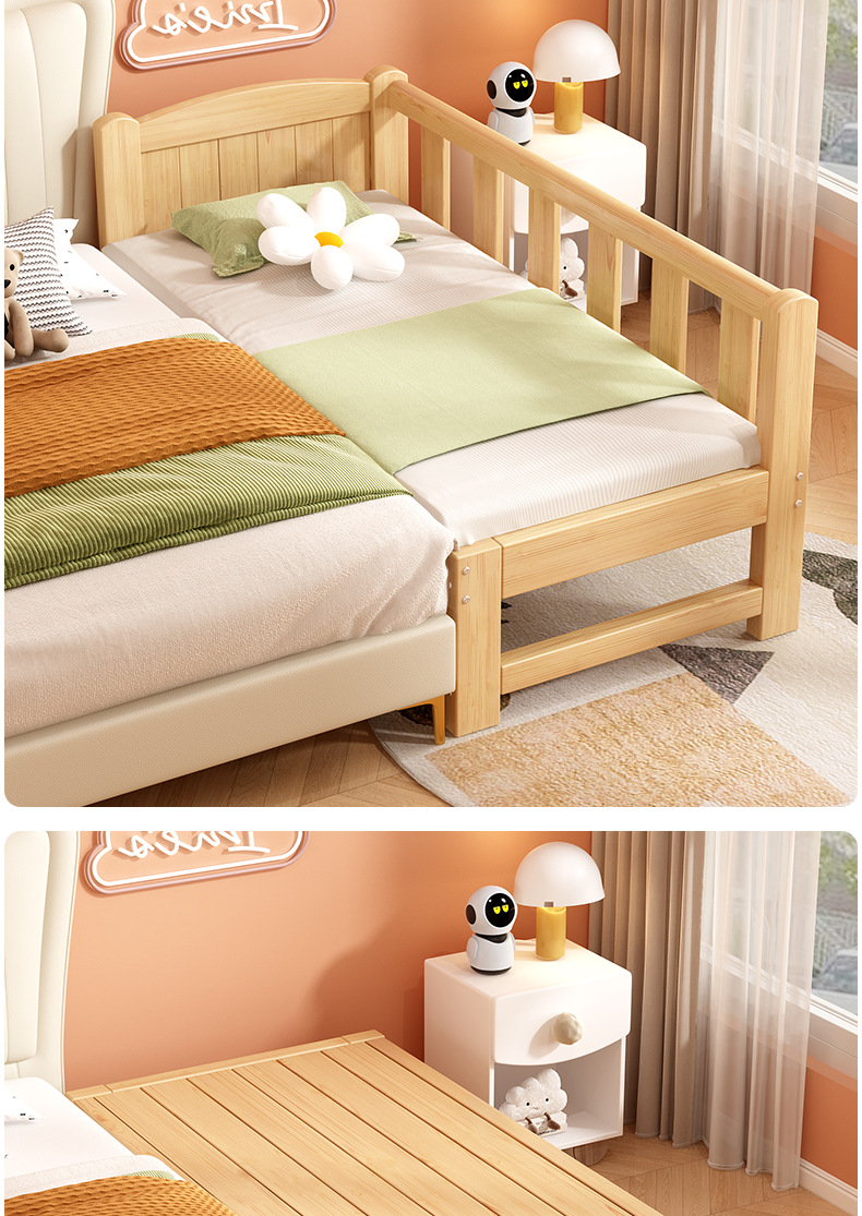 Solid Wood Children s Bed with Guardrail Infant Splicing Bed Widened Bedside Bed for Boys and Girls Single Bed for adults