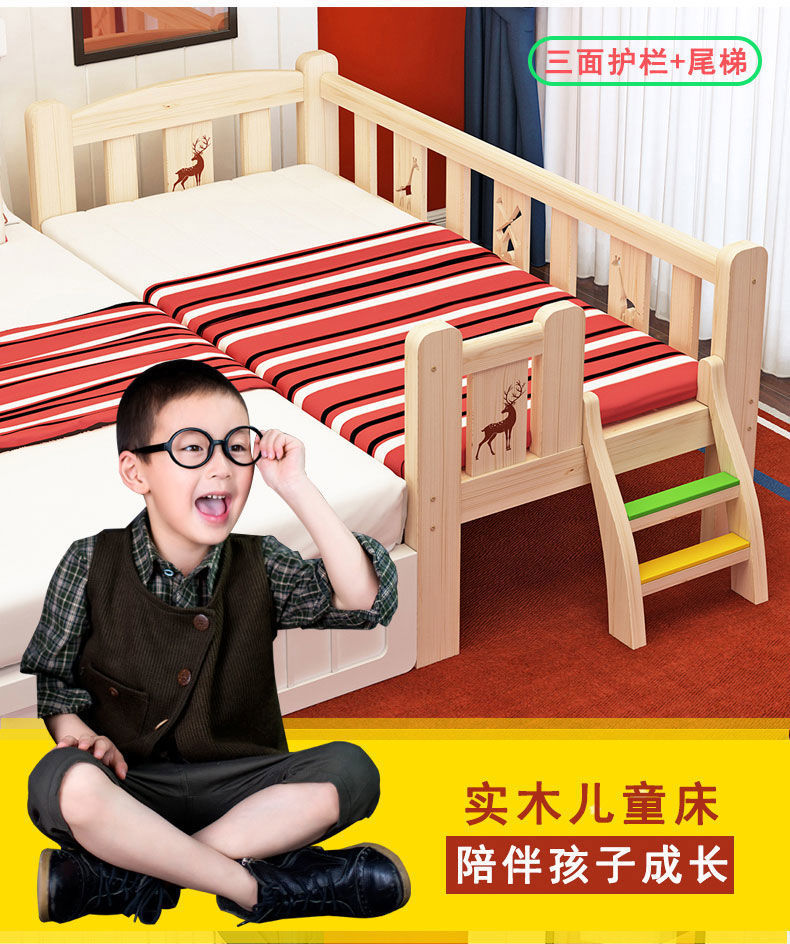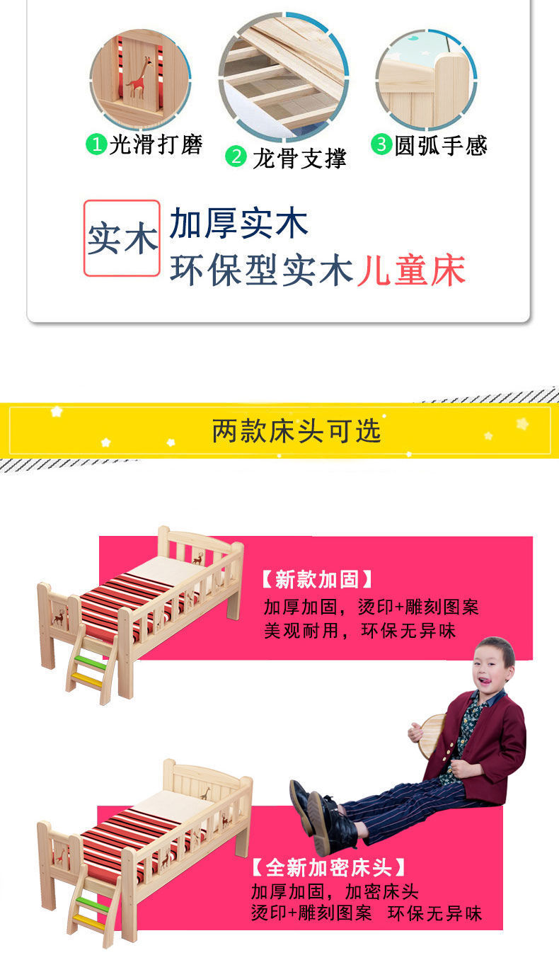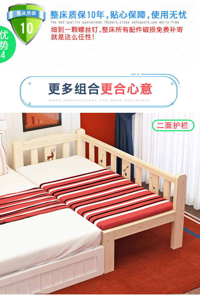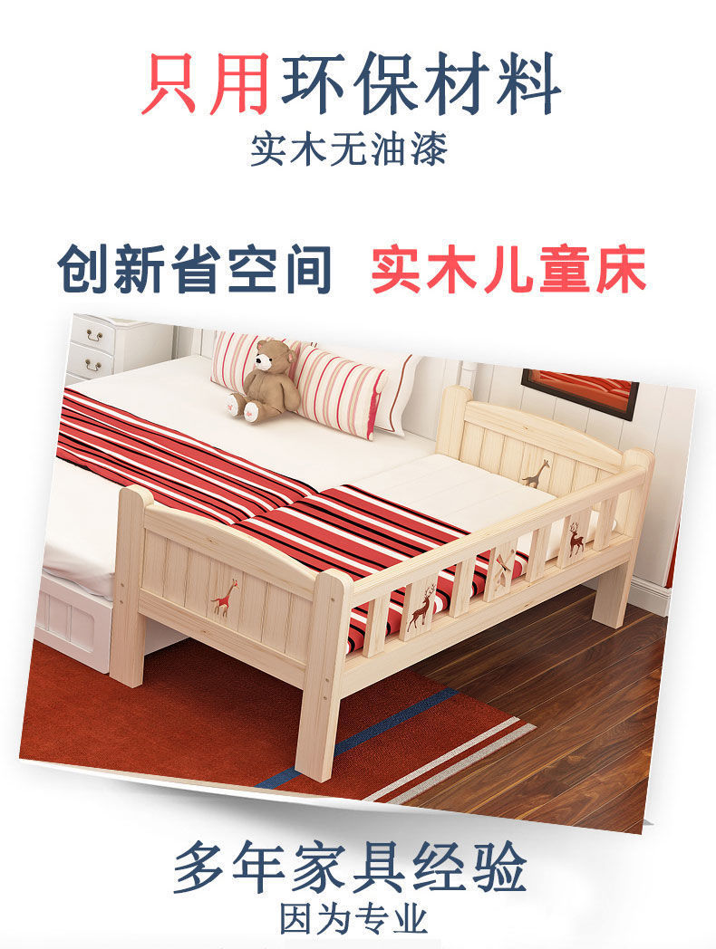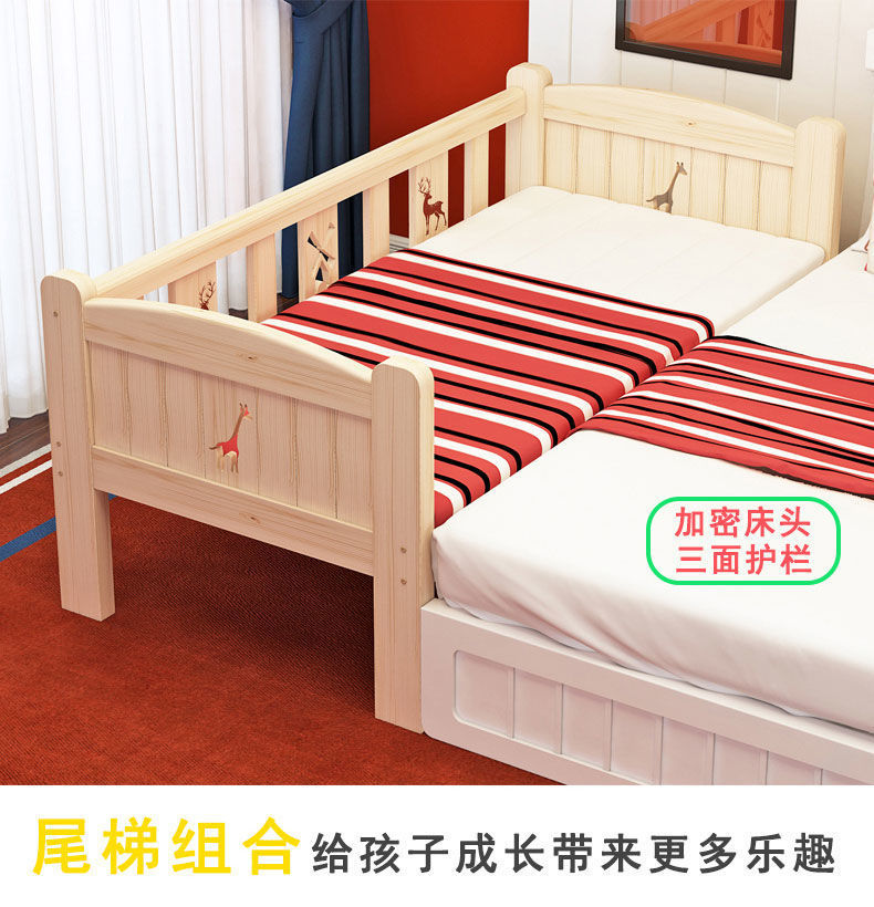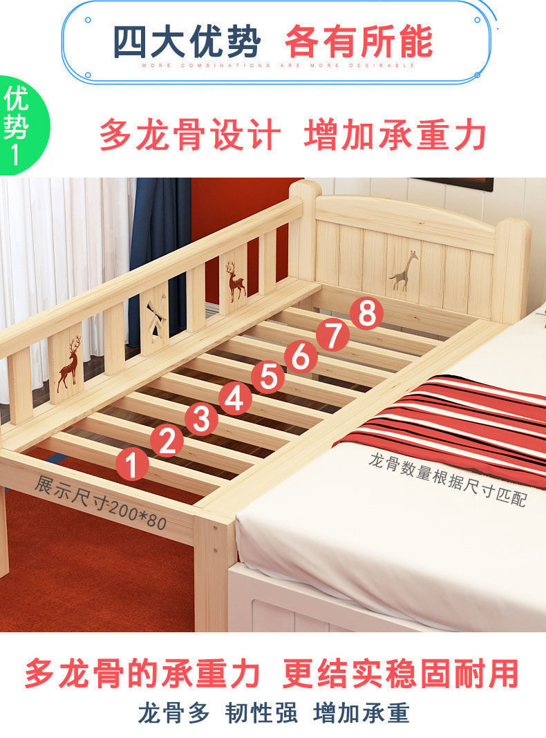 Solid Wood Children s Bed with Guardrail Small Bed Baby Boys and Girls Princess Bed Single Bed Side Bed Widened Spliced Big Bed