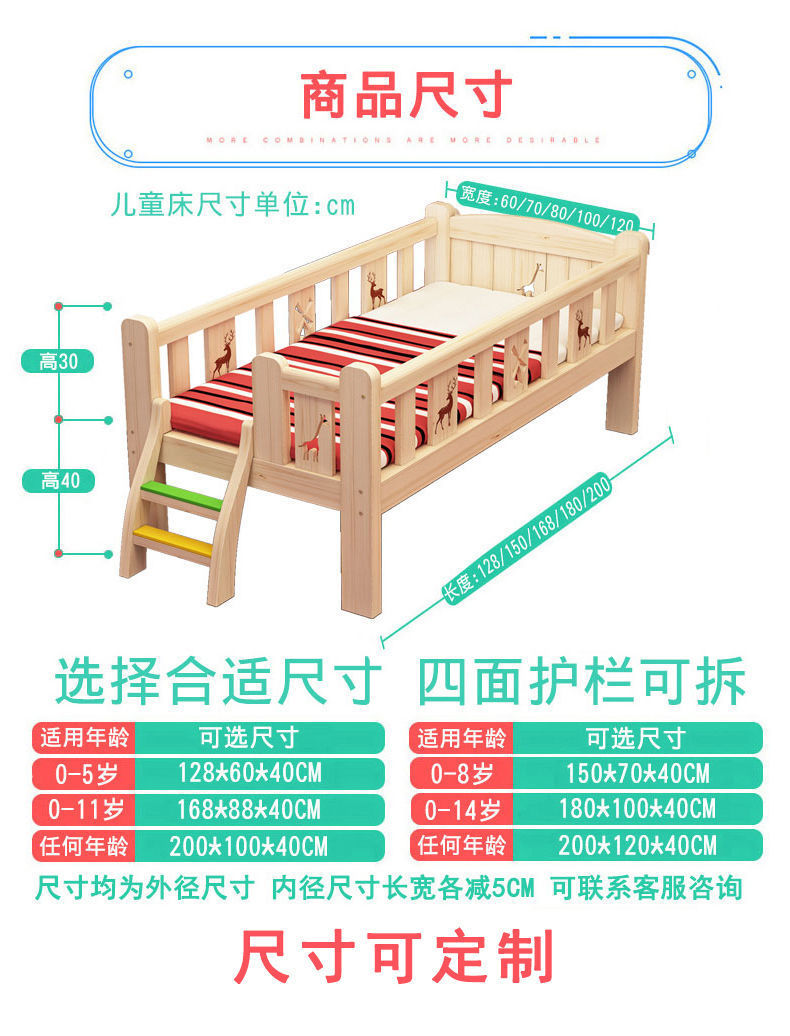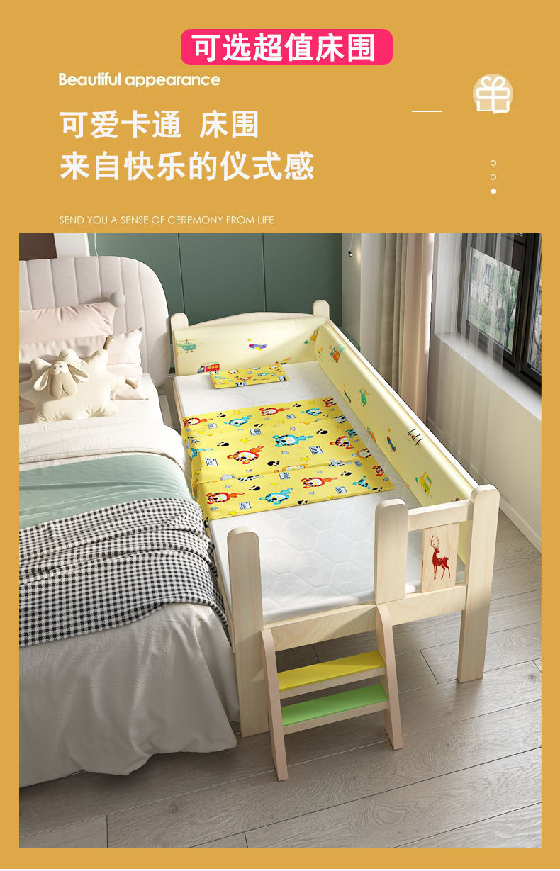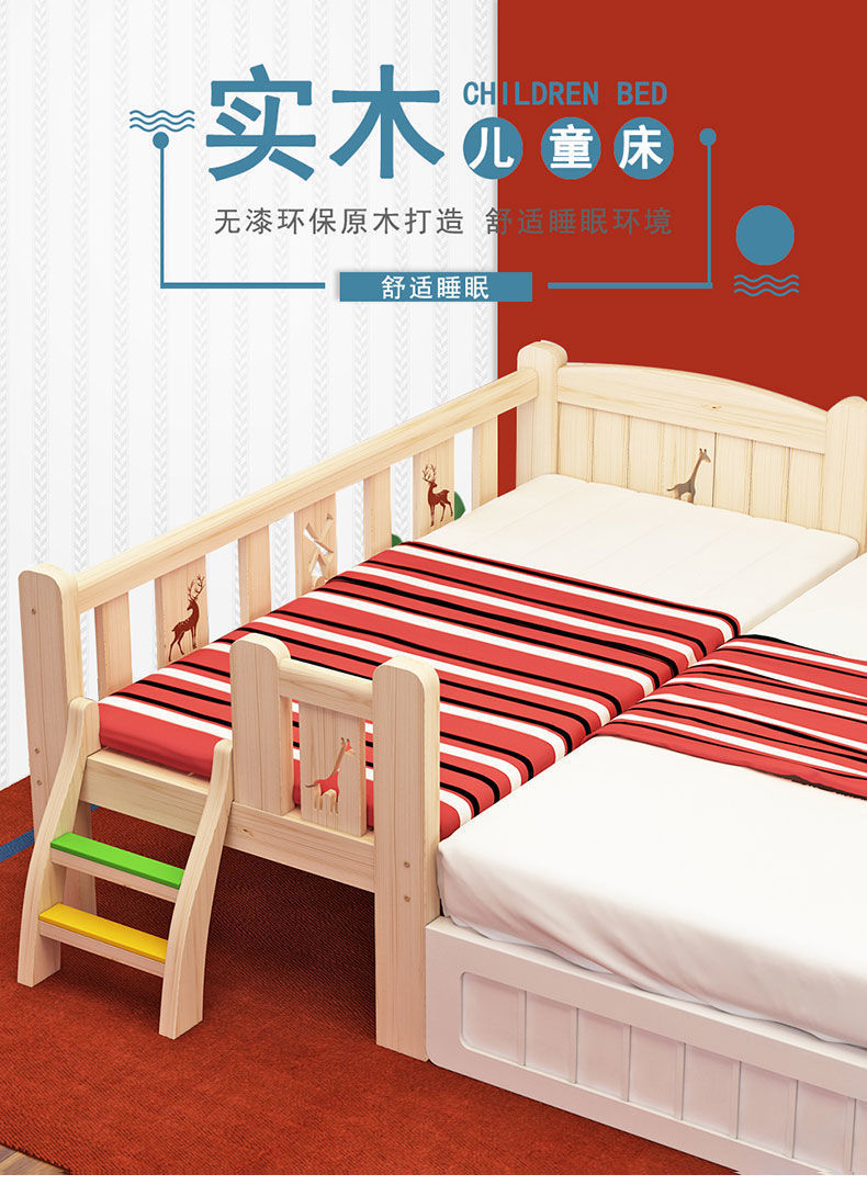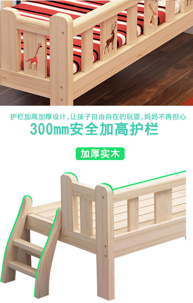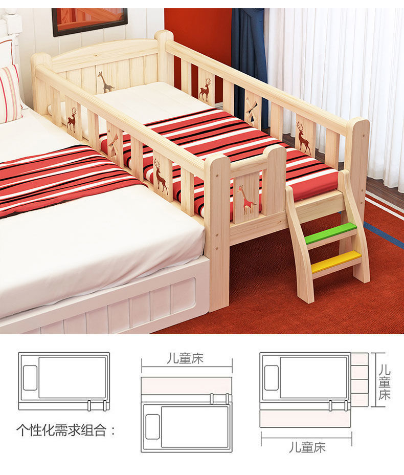Solid Wood Children s Bed with Guardrail Small Bed Baby Boys and Girls Princess Bed Single Bed Side Bed Widened Spliced Big Bed