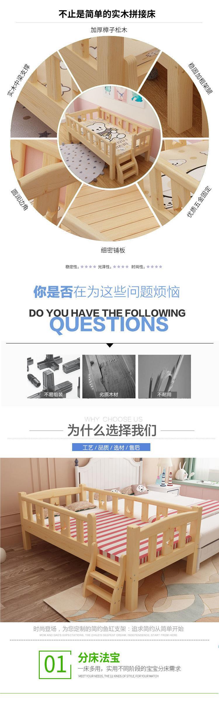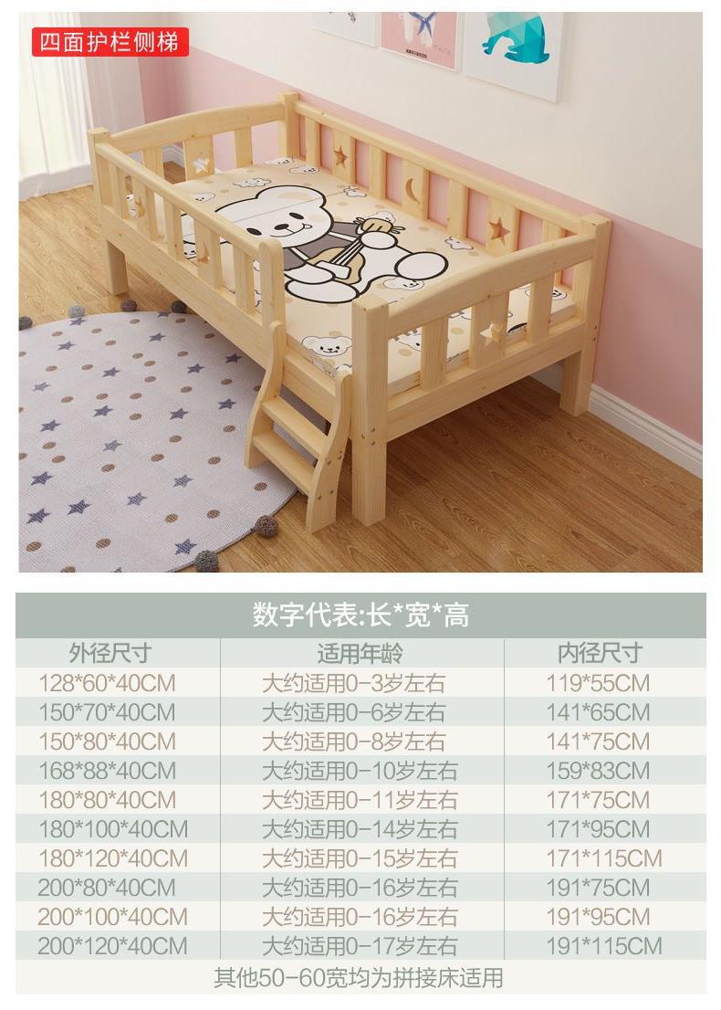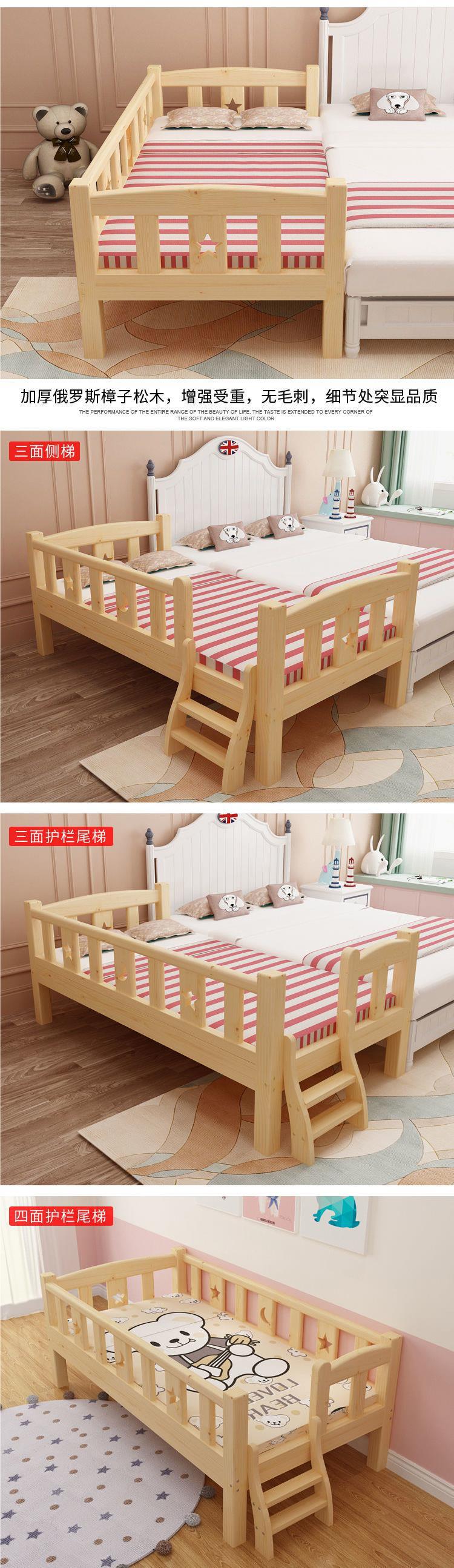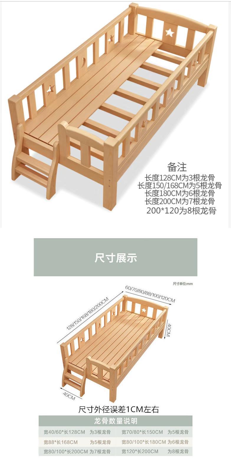 Solid Wood Children s Bed with Guardrail Small Bed Baby Boys and Girls Princess Bed Single Bed Side Bed Widened Spliced Big Bed