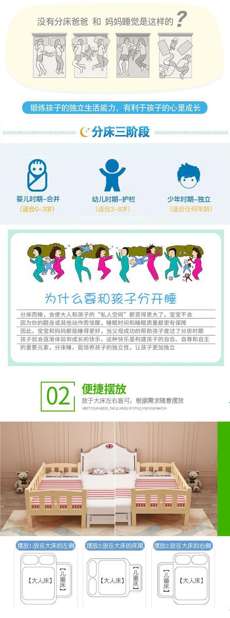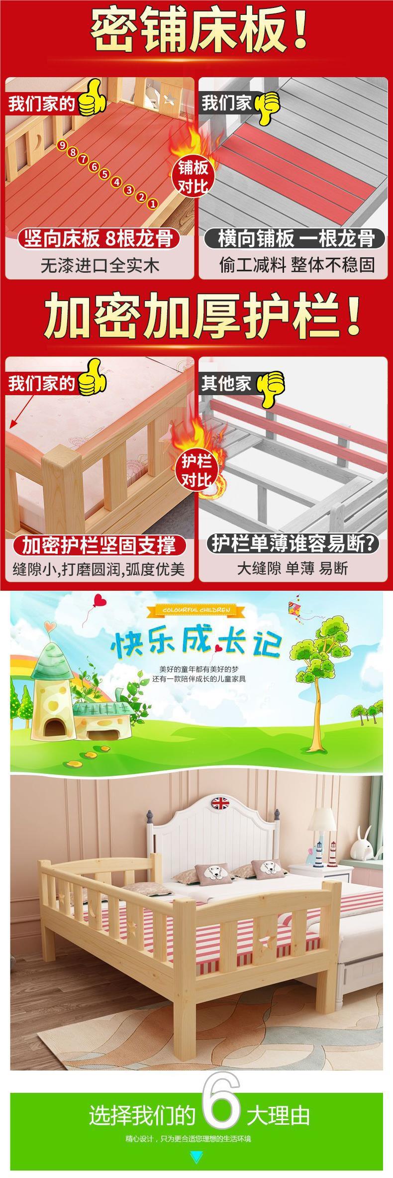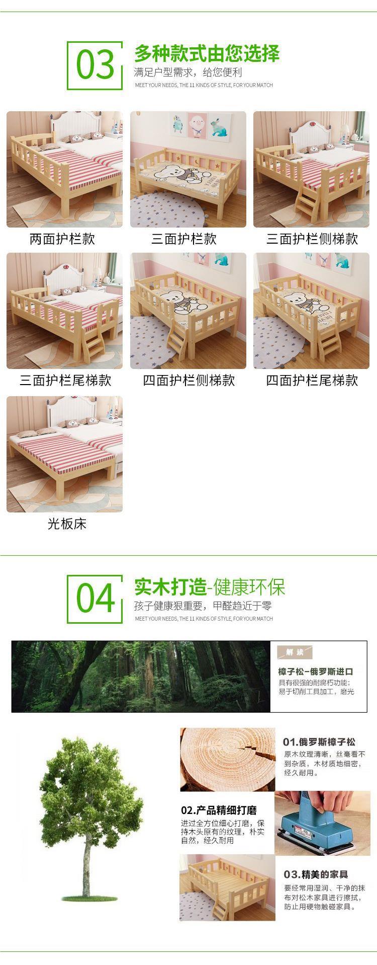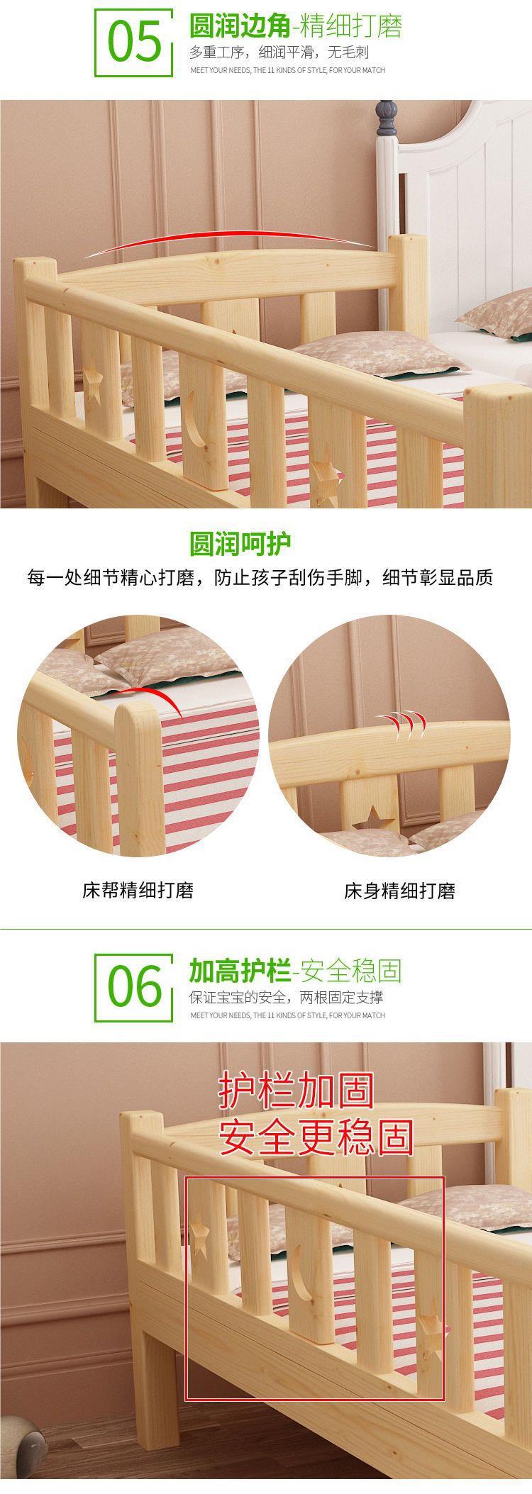 Solid Wood Children s Bed with Guardrail Small Bed Baby Boys and Girls Princess Bed Single Bed Side Bed Widened Spliced Big Bed