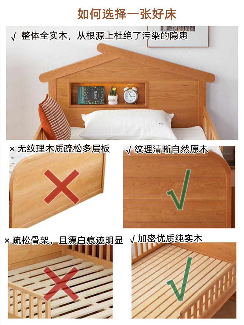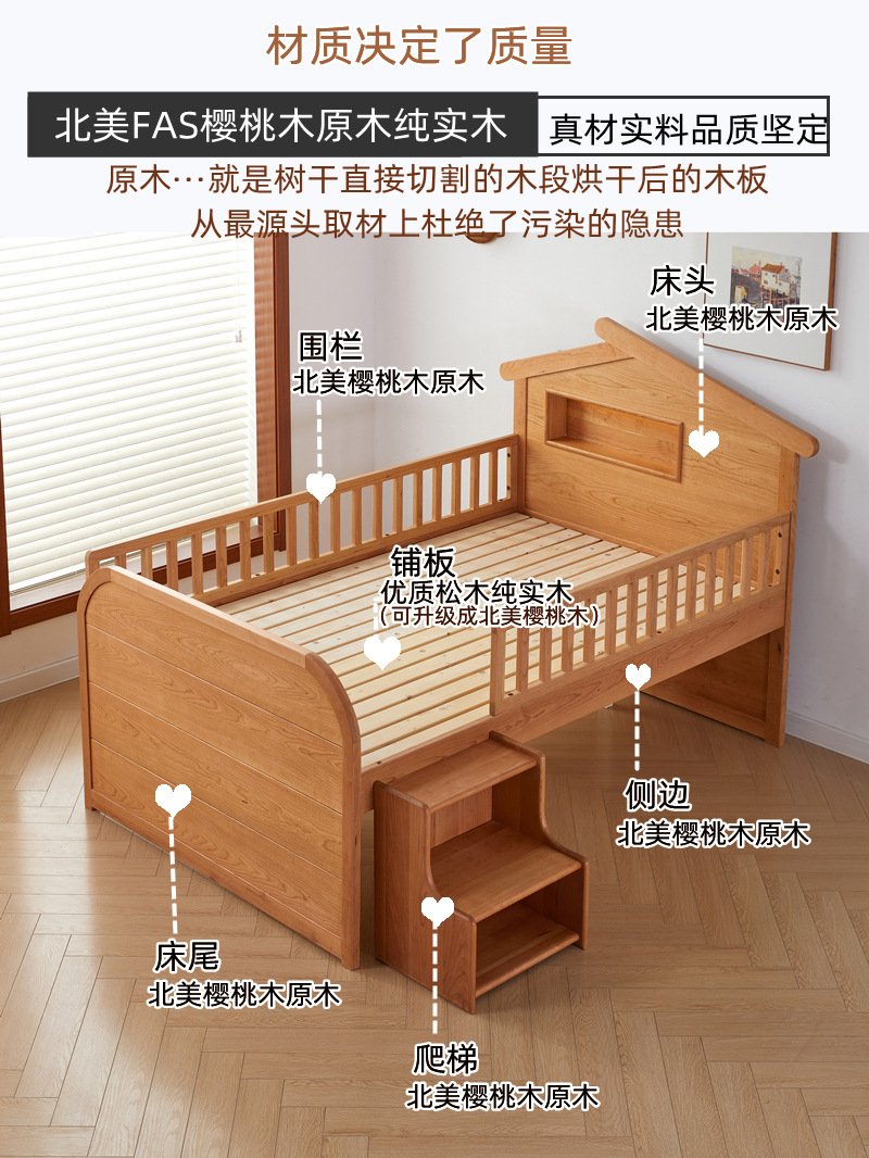 Solid Wood Children s Tree House Bed Boys and Girls Half Height Bed Cherry Wood Log Bed Splicing Multifunctional Guardrail 1.2 m