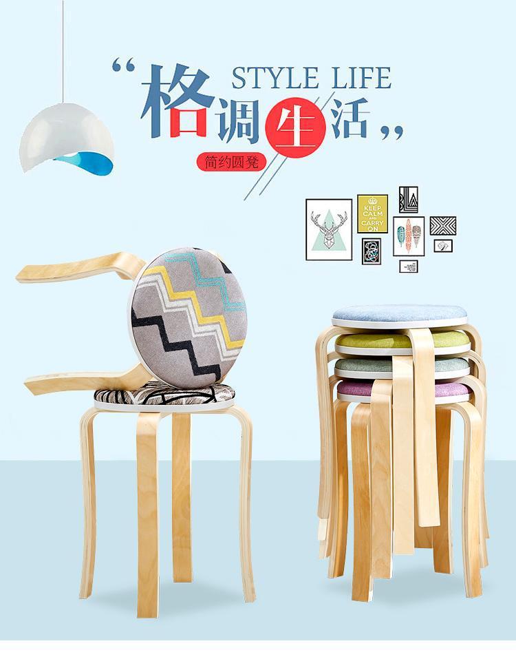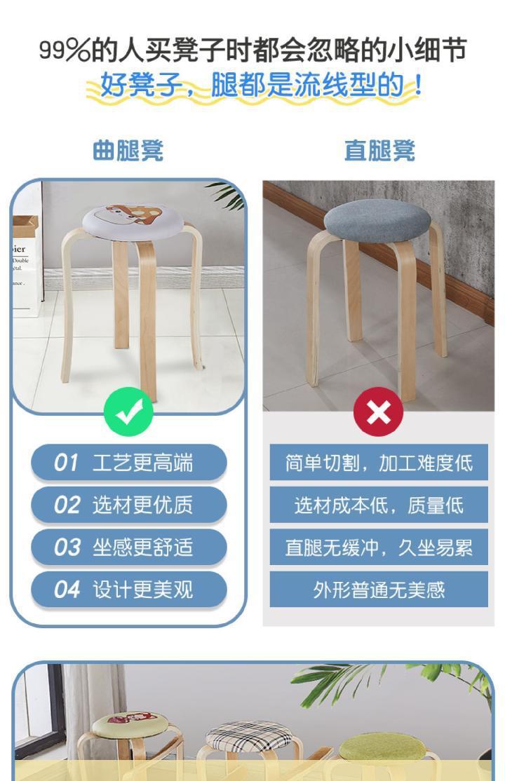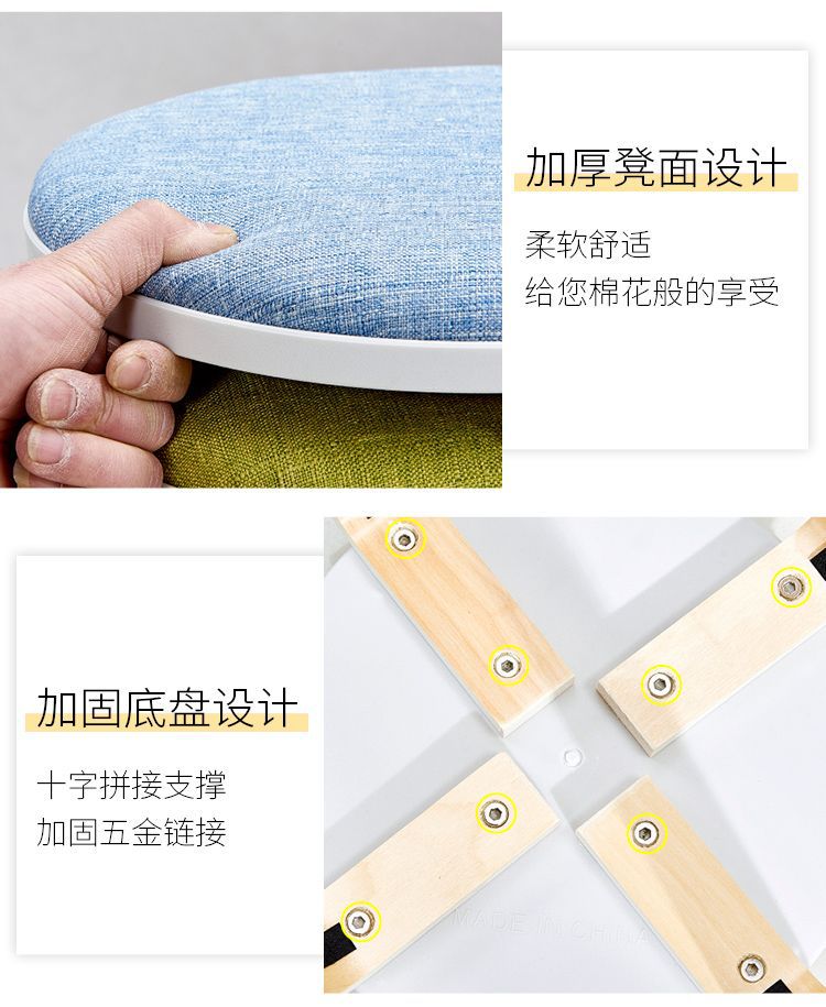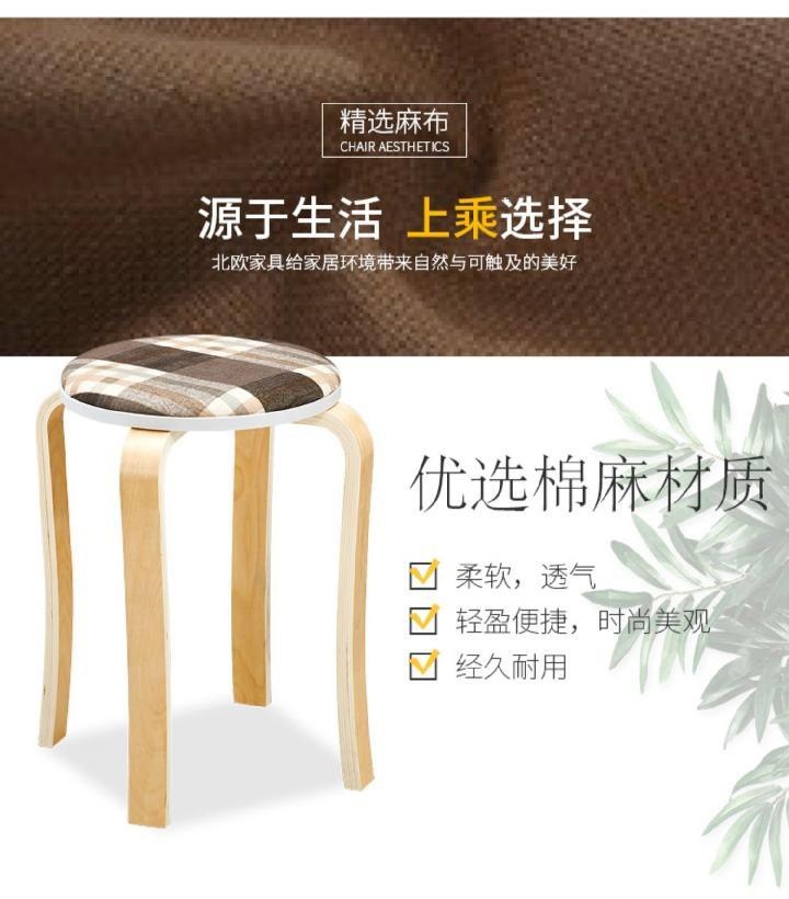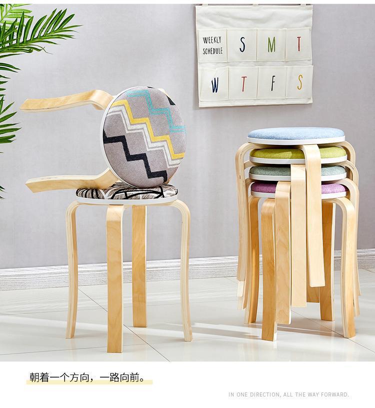 Solid Wood Stool Fashion Living Room Small Chair Household High Round Stool Simple Soft Surface Dining Table Bench Adult Dining Chair Direct Selling