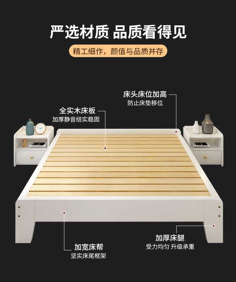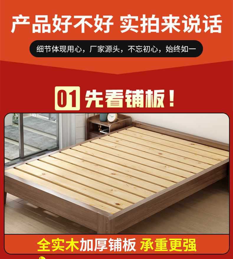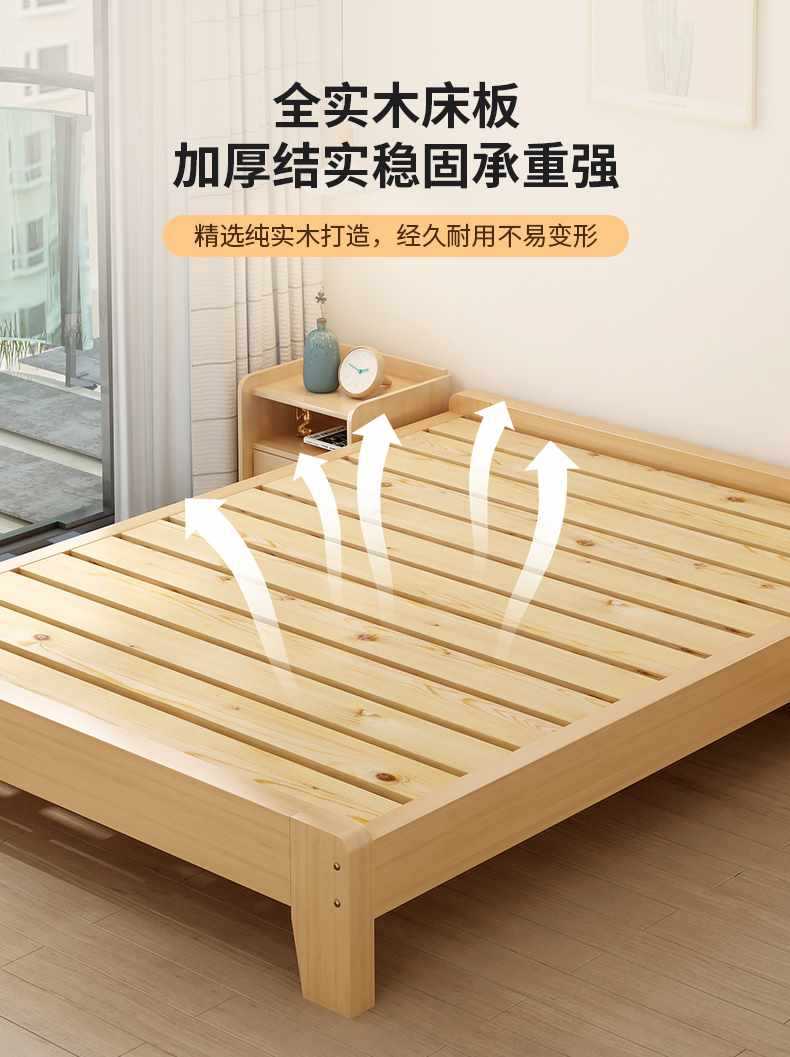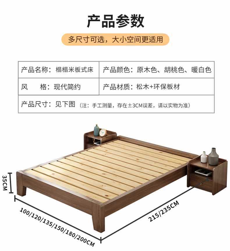 Solid wood bed tatami bed frame without bedside plate rib rack bed 1.2 35 5 8 m single bed without backrest
