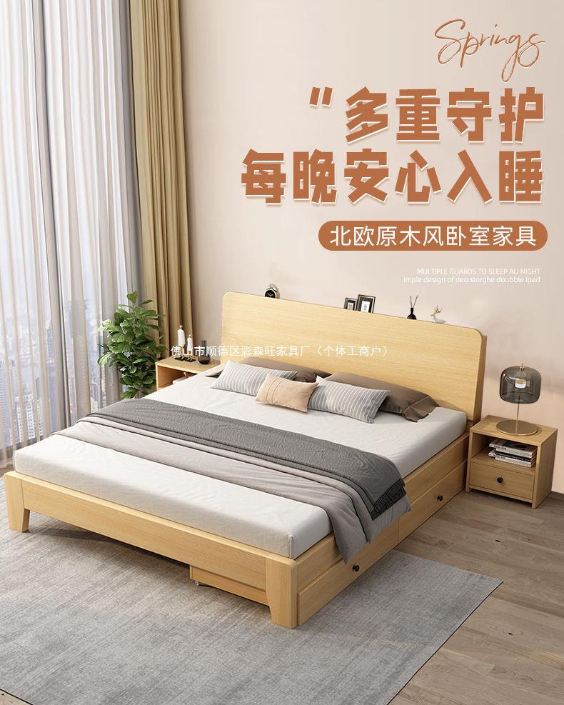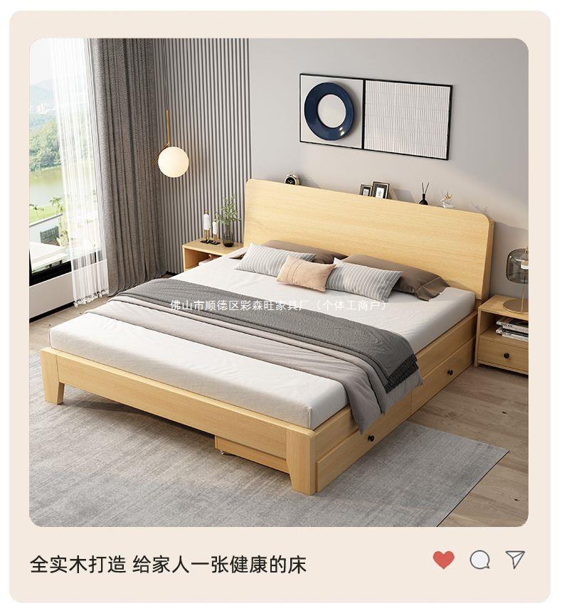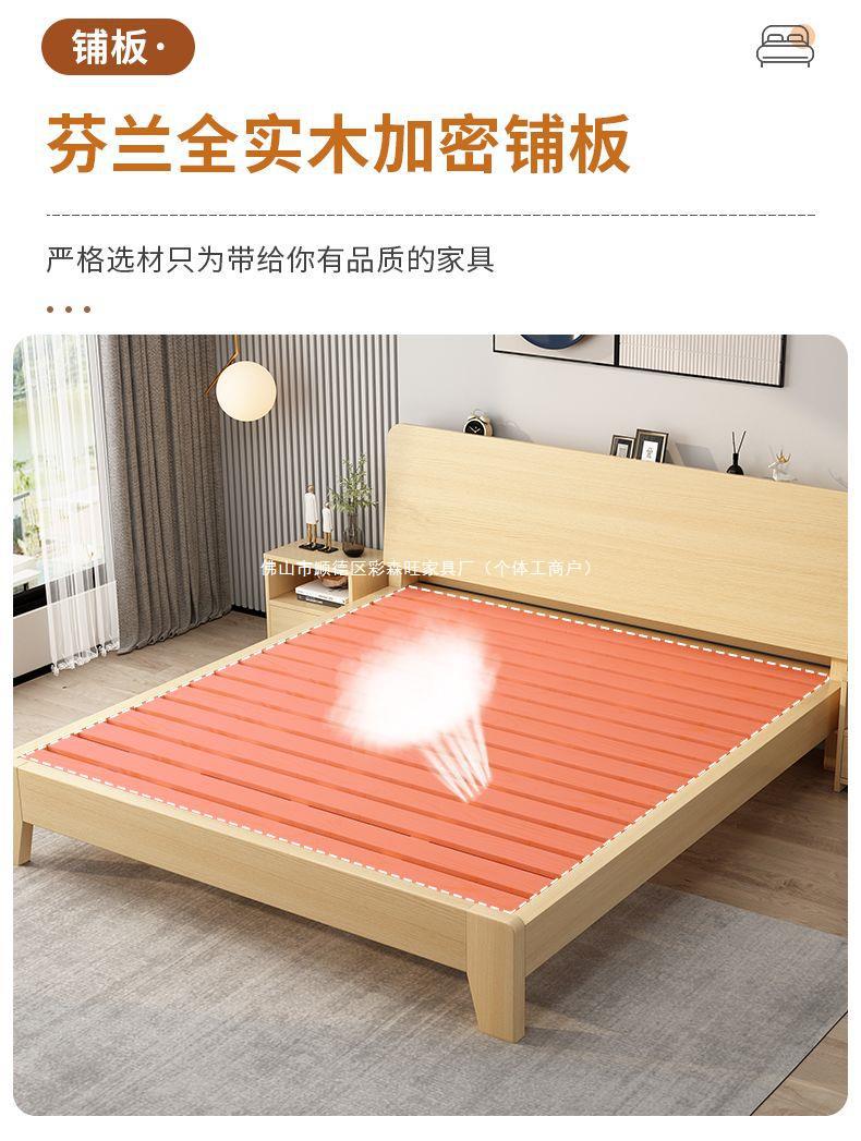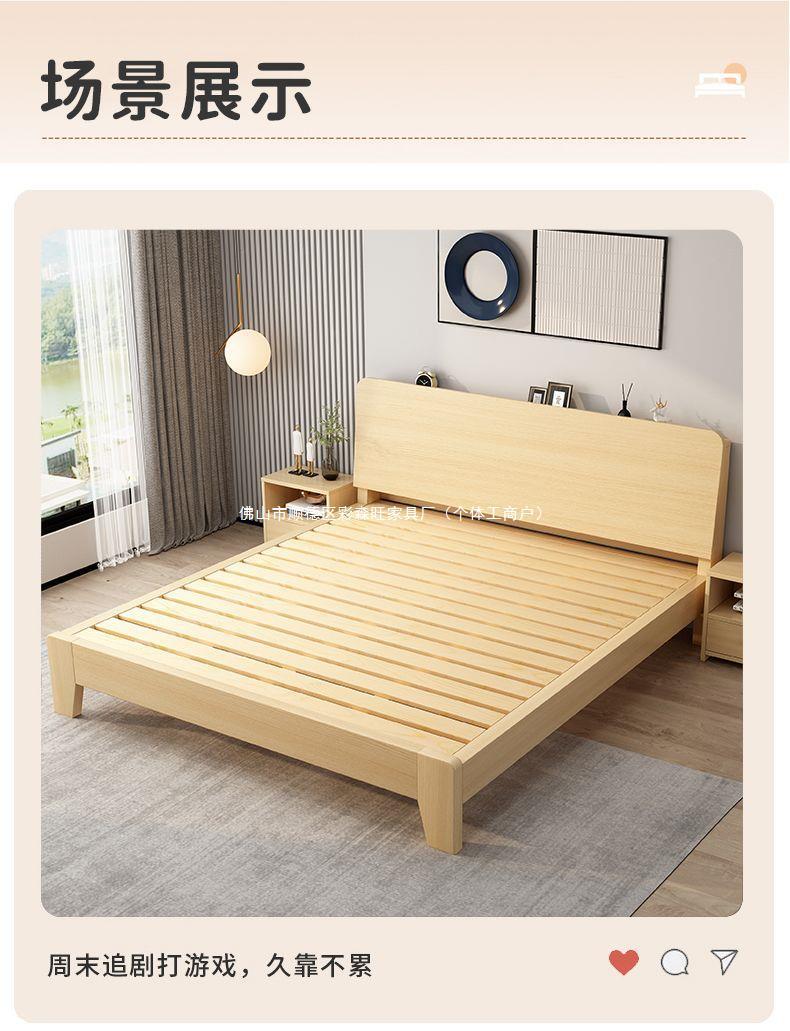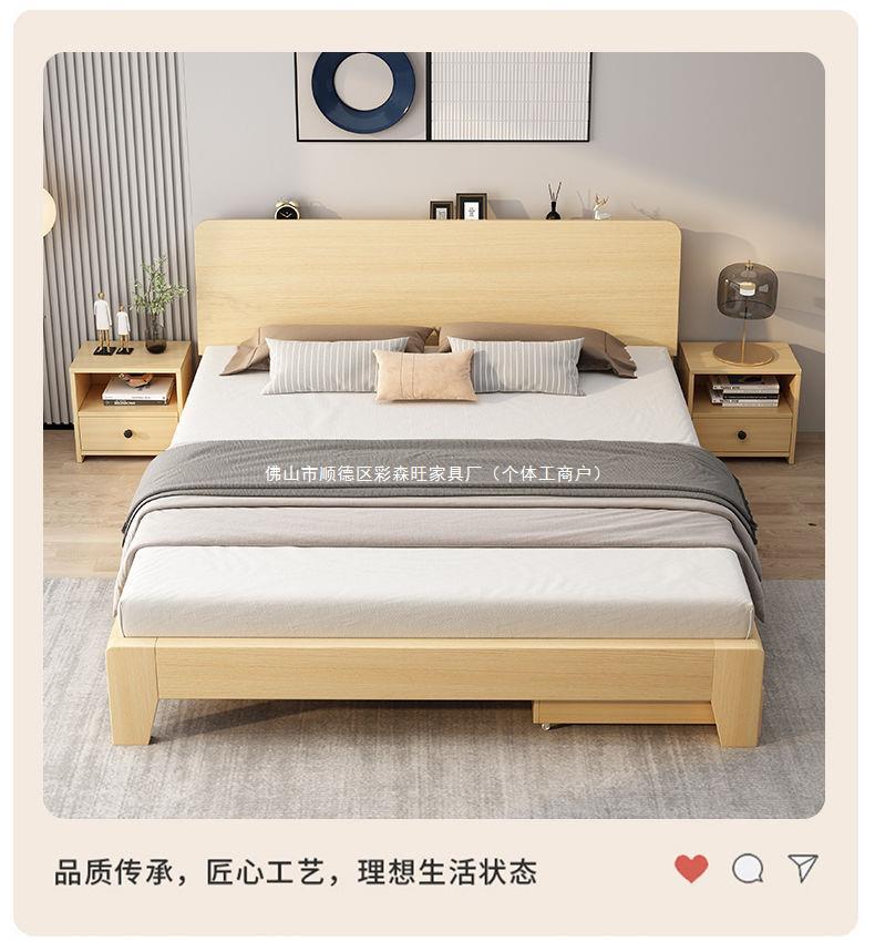 Solid wood board bed 1.5 m simple 1 m adult 1.8 m double master bedroom bed rental house Nordic single bed
