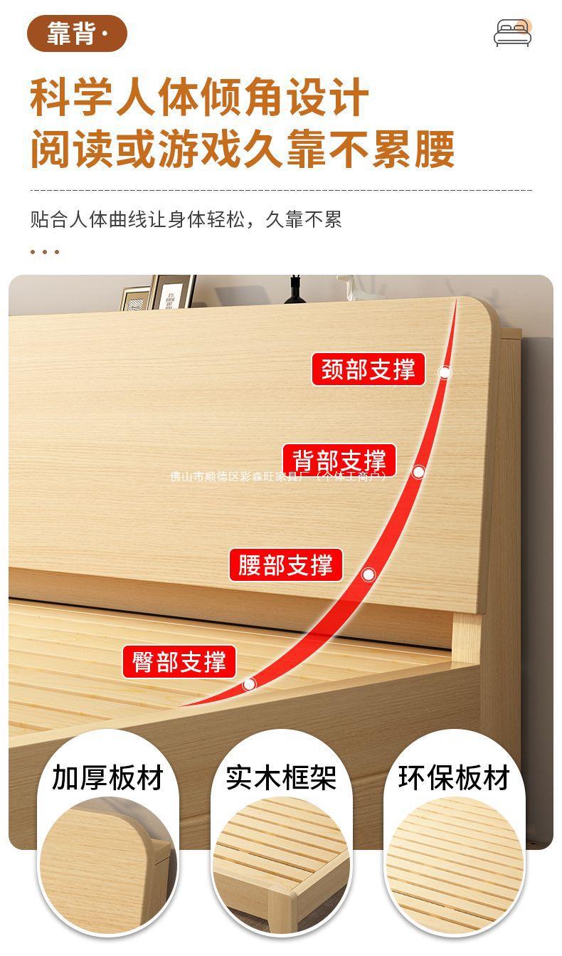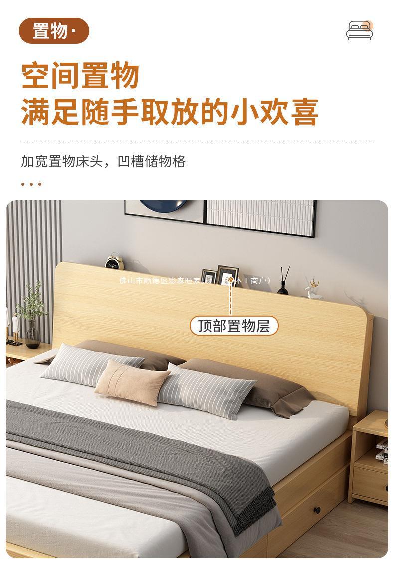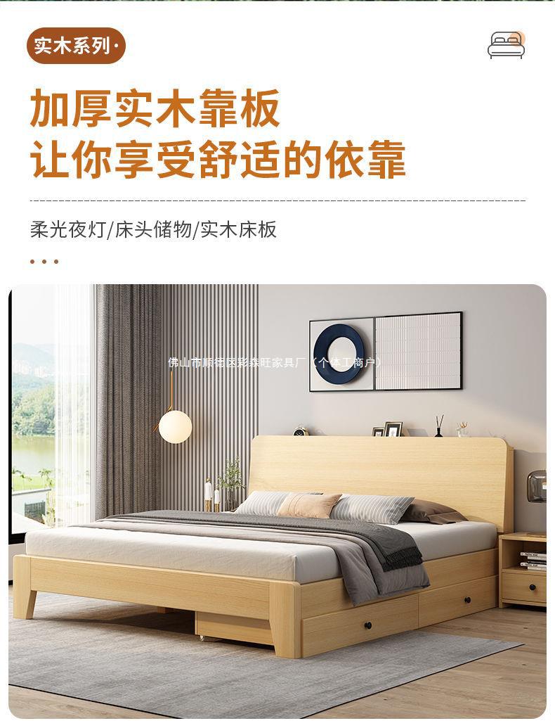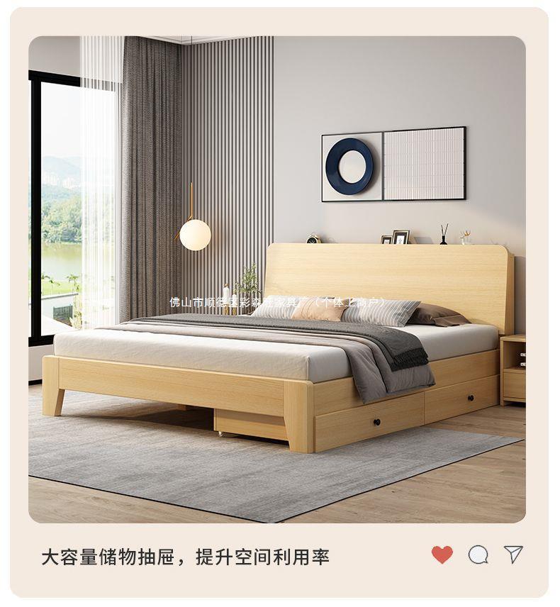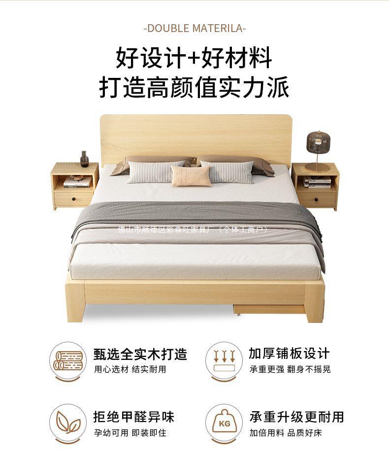 Solid wood board bed 1.5 m simple 1 m adult 1.8 m double master bedroom bed rental house Nordic single bed