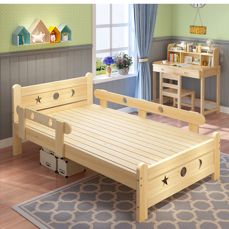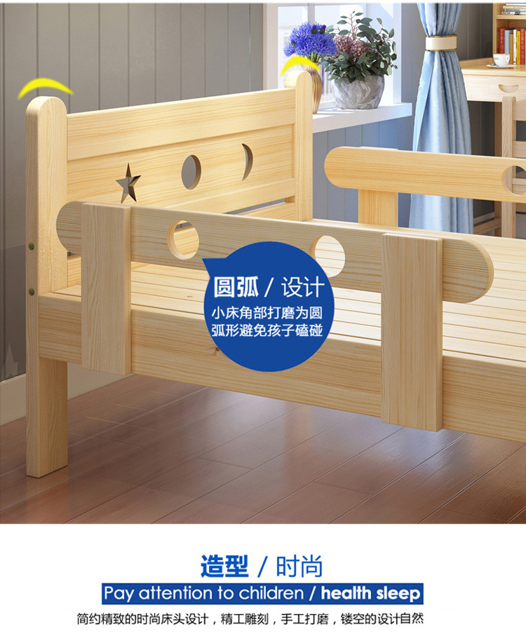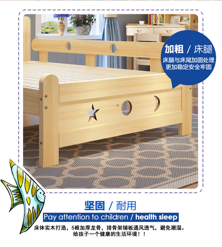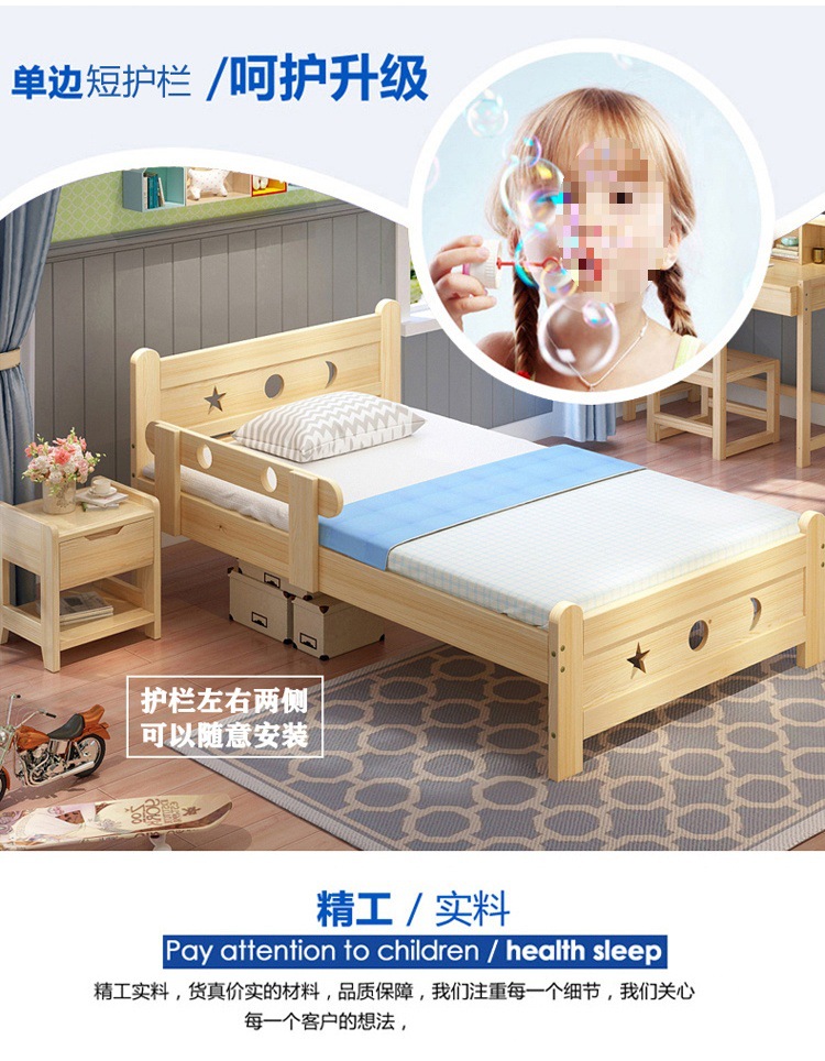Solid wood children s bed Boys single nursing bed teenagers bed girls princess bed 1.2 m children s bed with guardrail