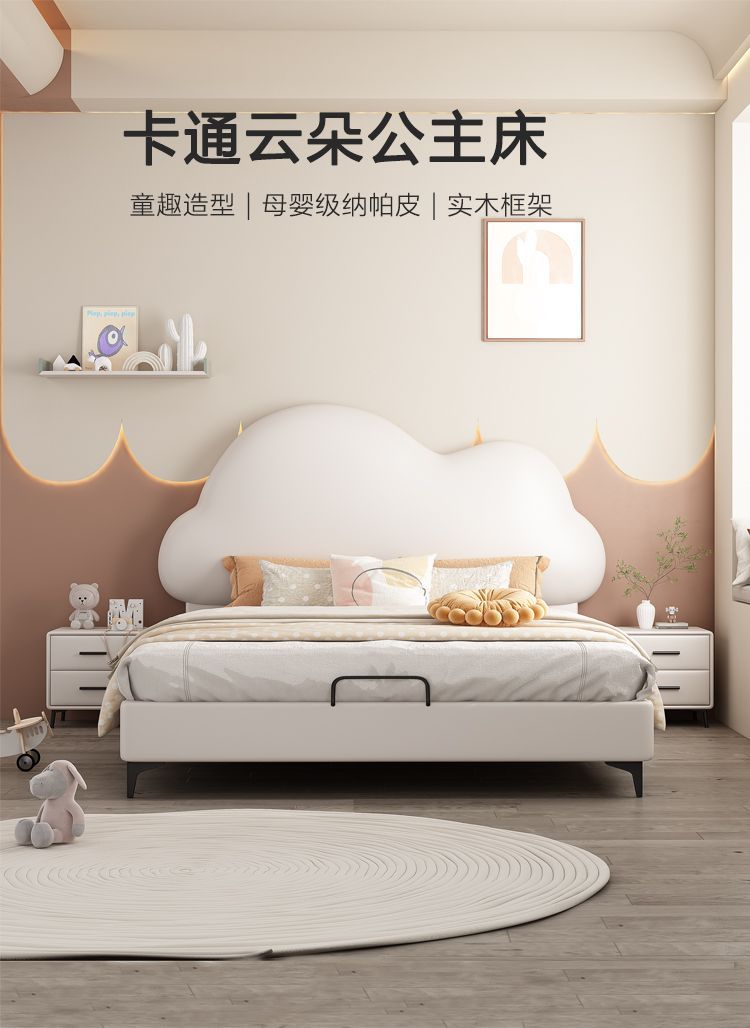 Solid wood children s bed for boys and girls 1.5 m home simple modern princess storage bed 1.8 m cloud bed