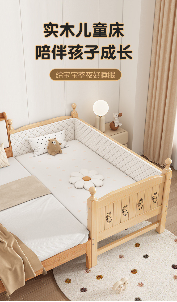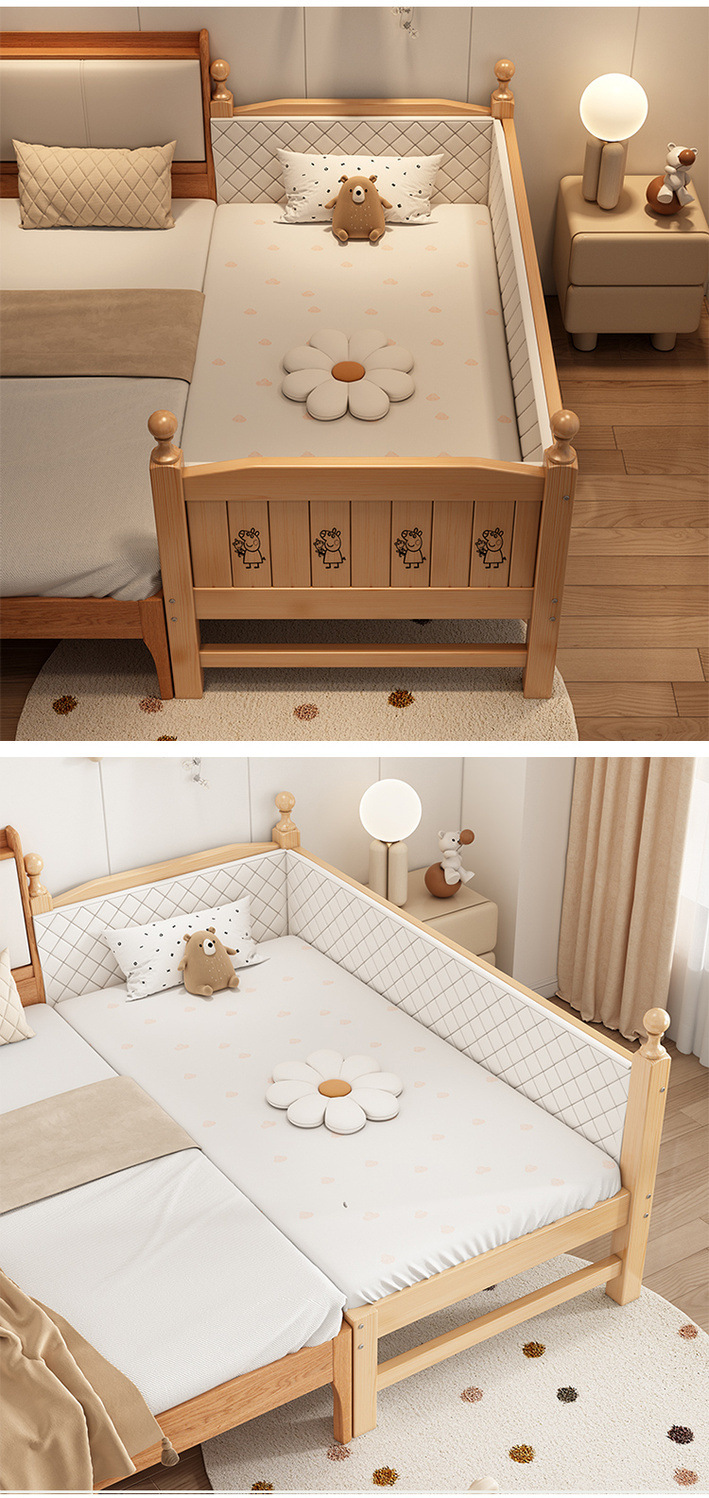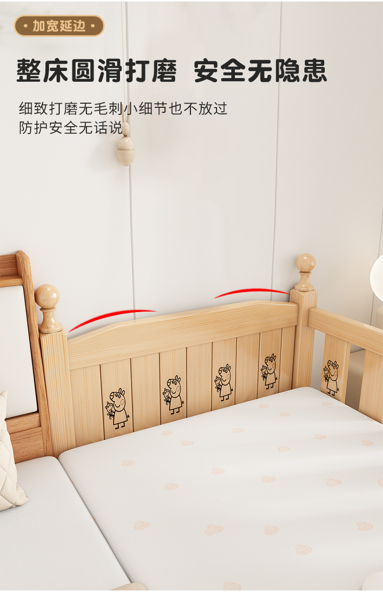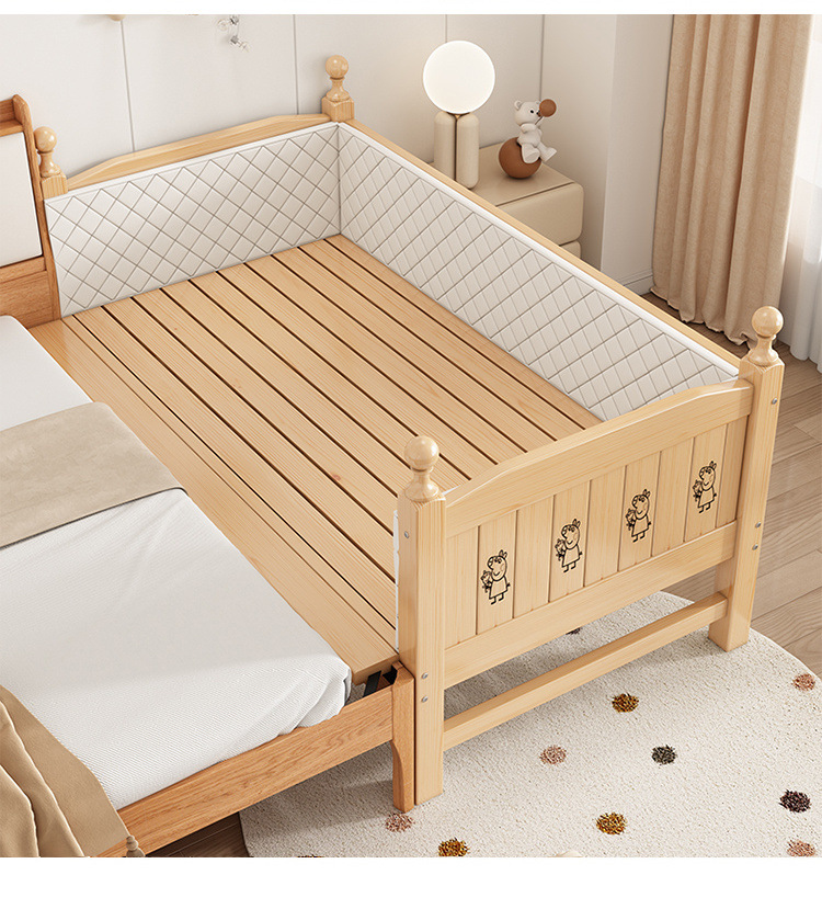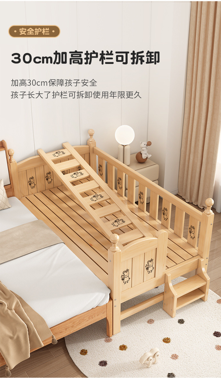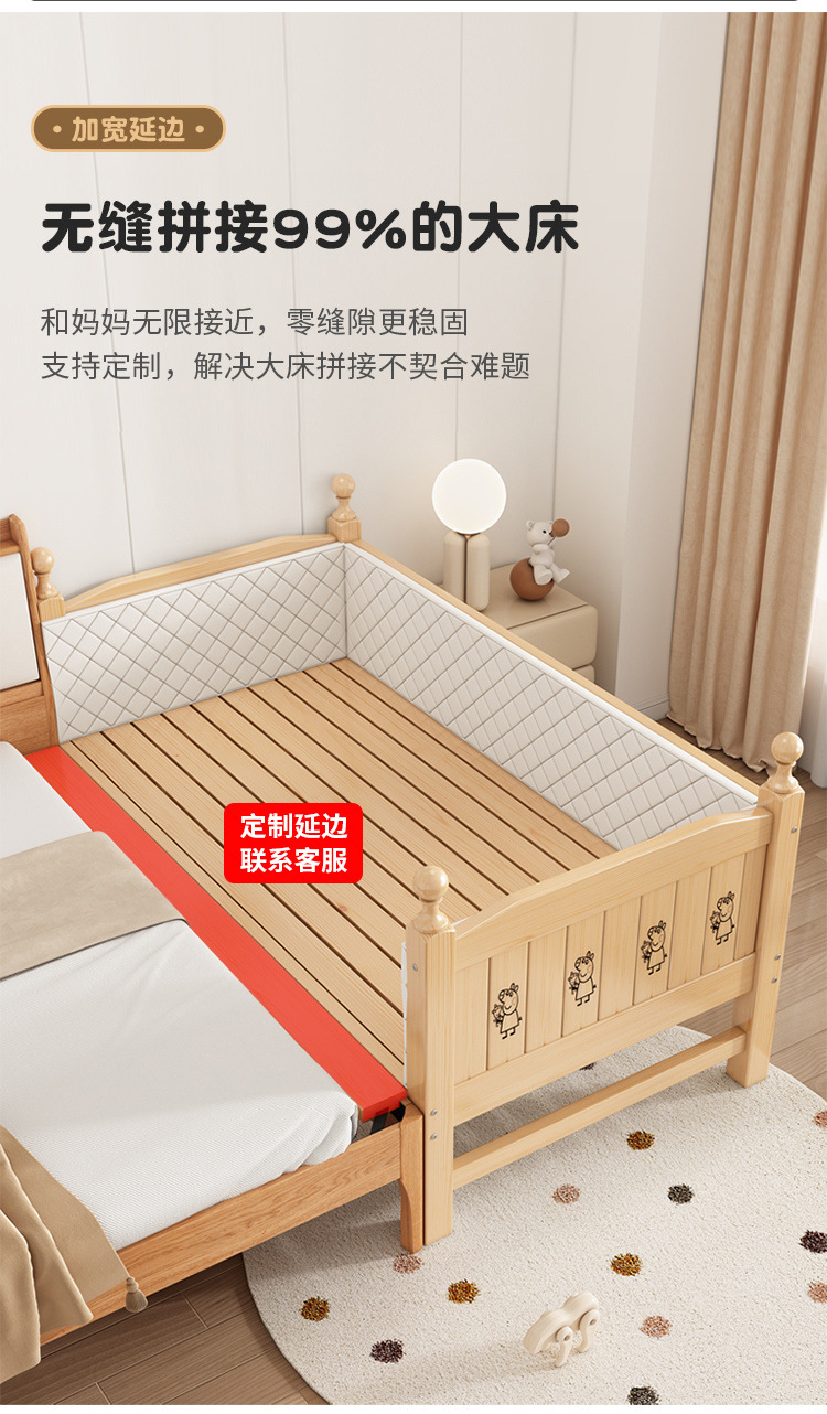 Solid wood children s bed with guardrail baby bed boy girl princess bed single bed side bed widened stitching bed