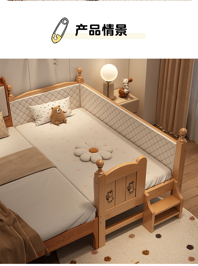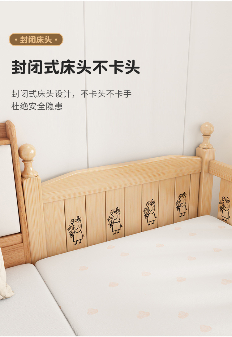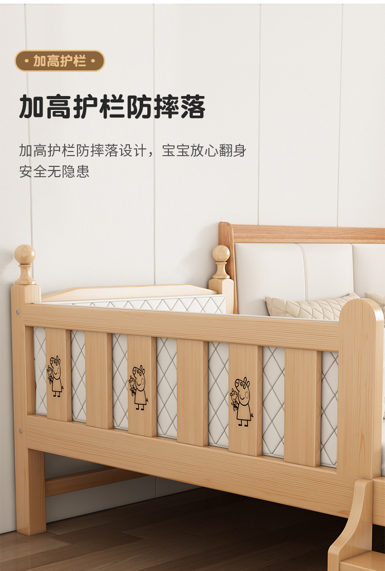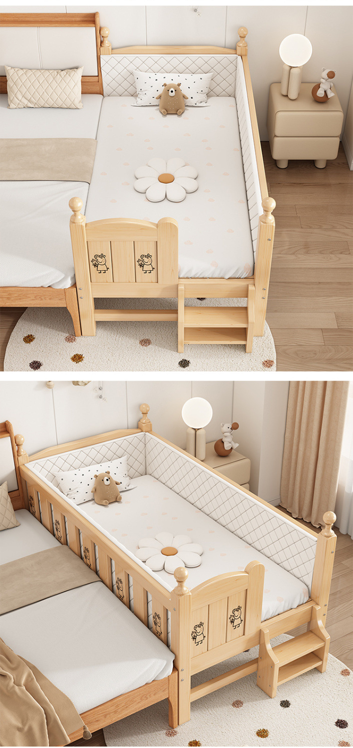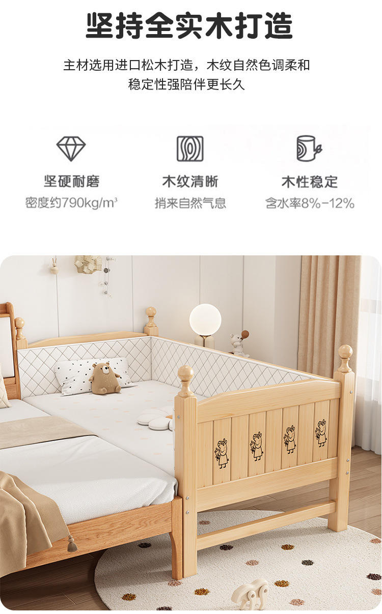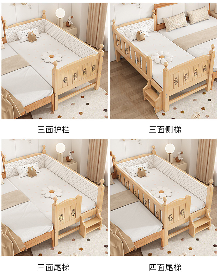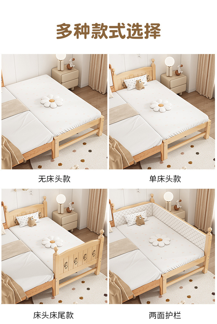 Solid wood children s bed with guardrail baby bed boy girl princess bed single bed side bed widened stitching bed