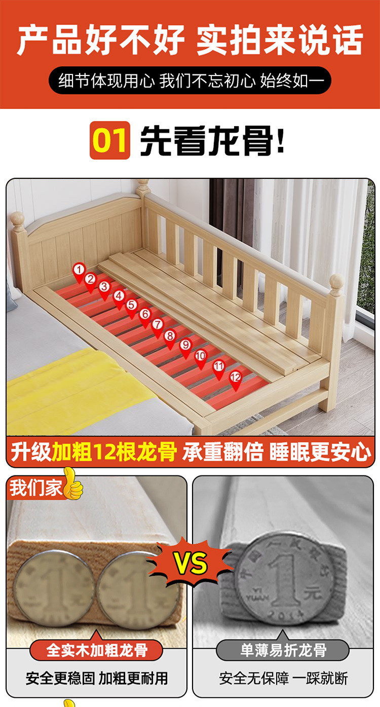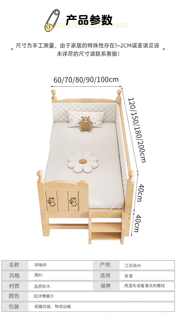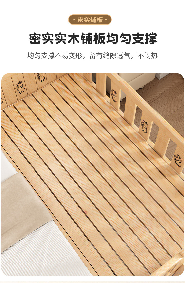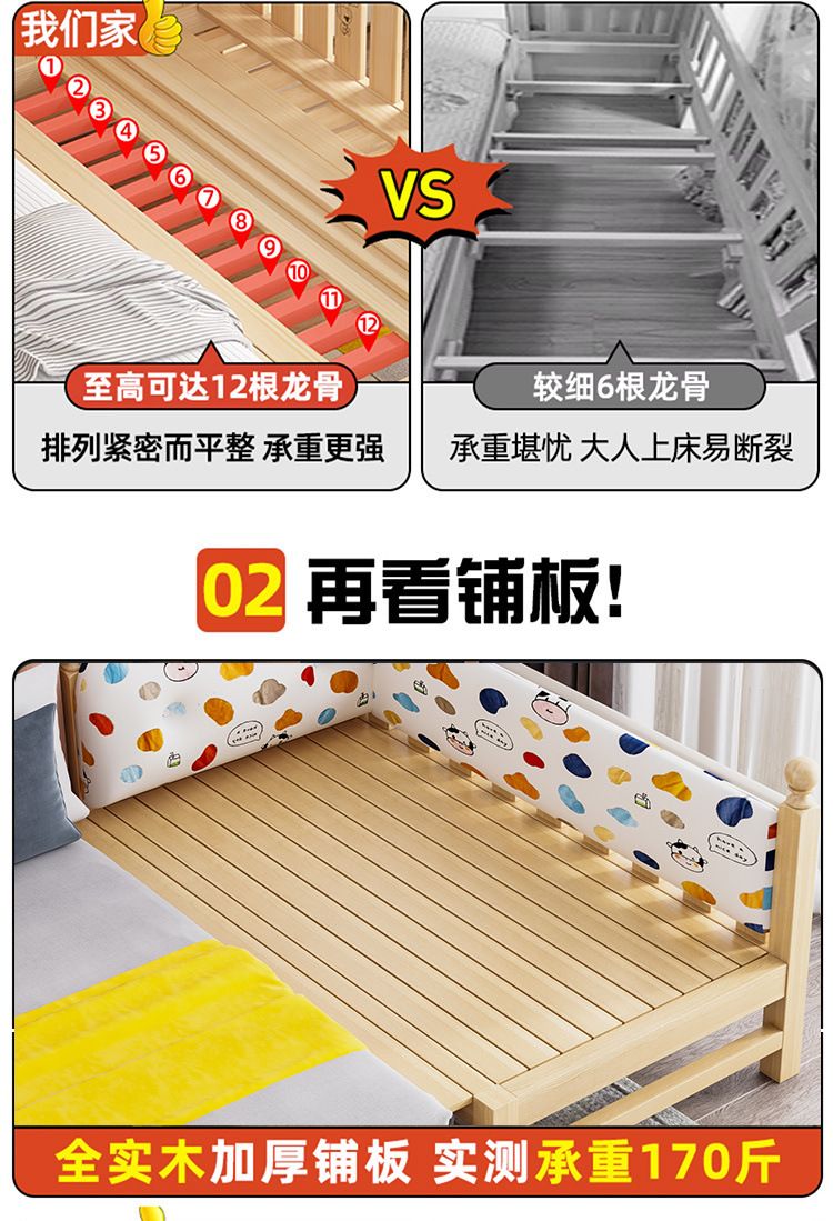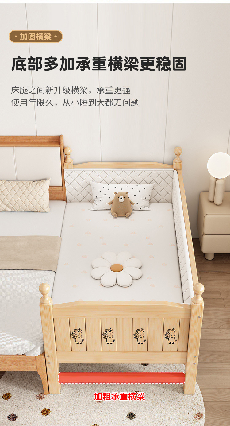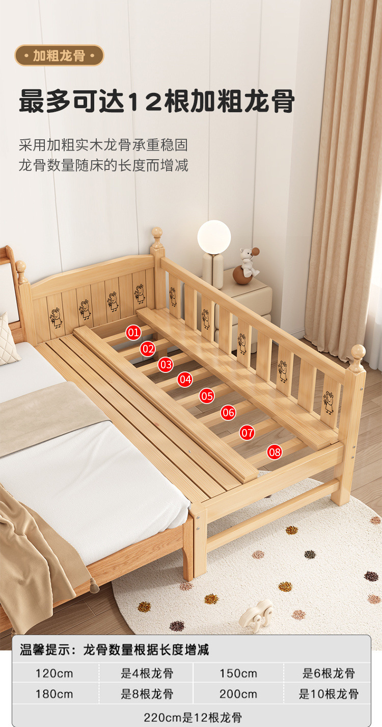 Solid wood children s bed with guardrail baby bed boy girl princess bed single bed side bed widened stitching bed