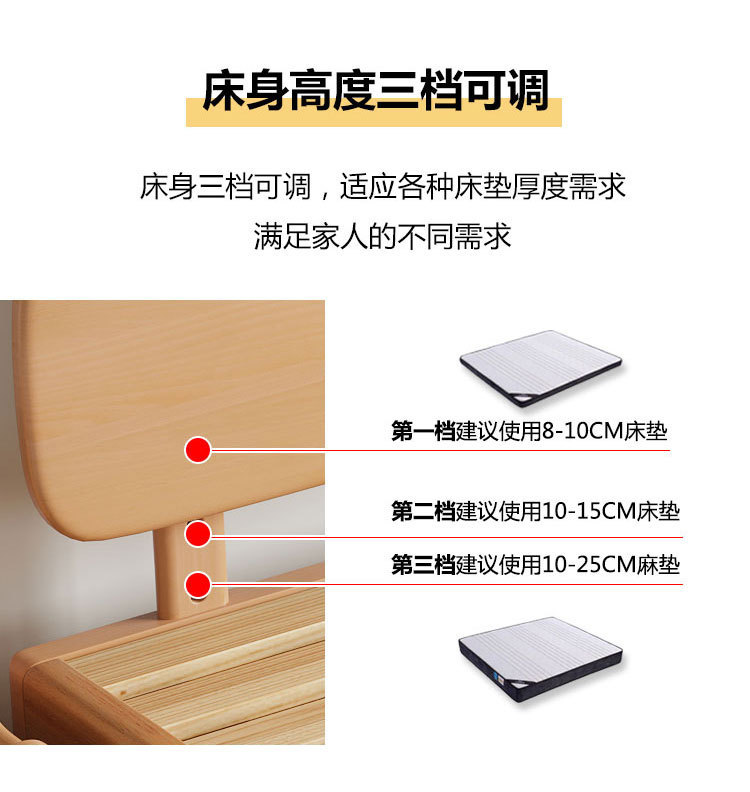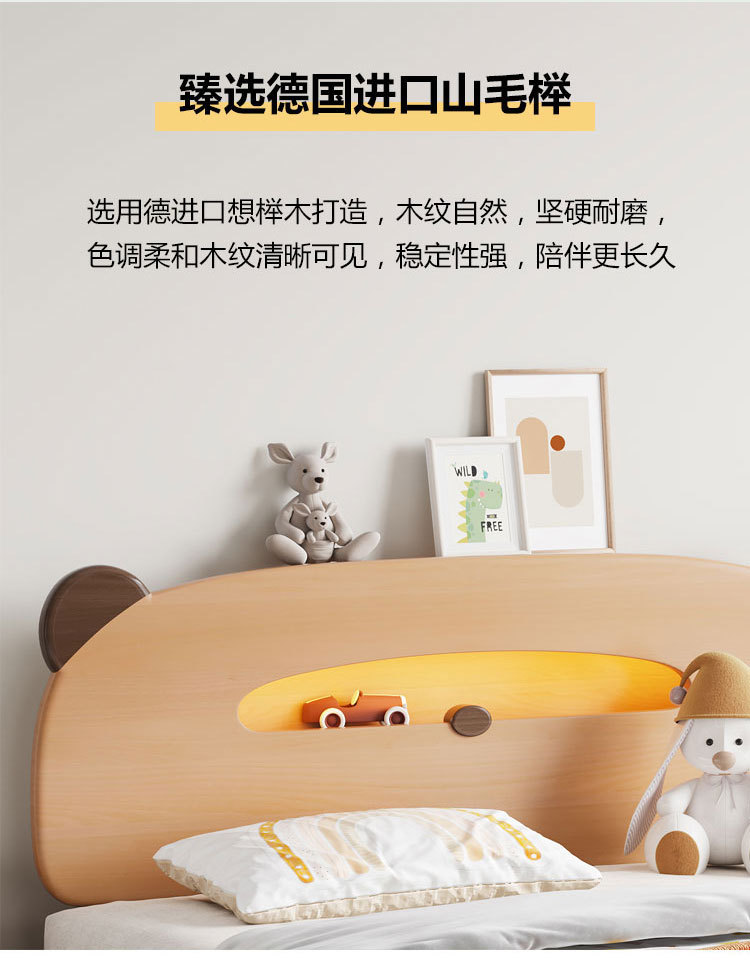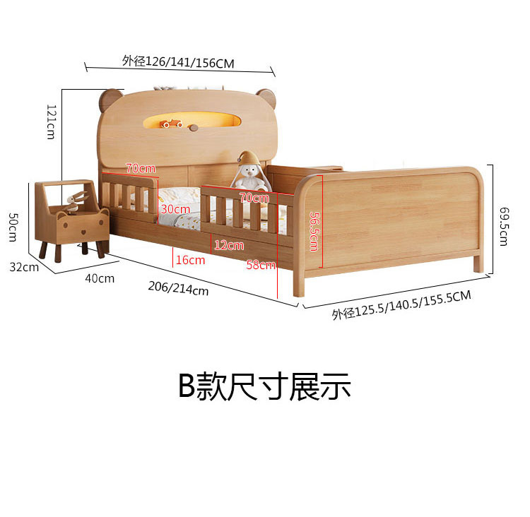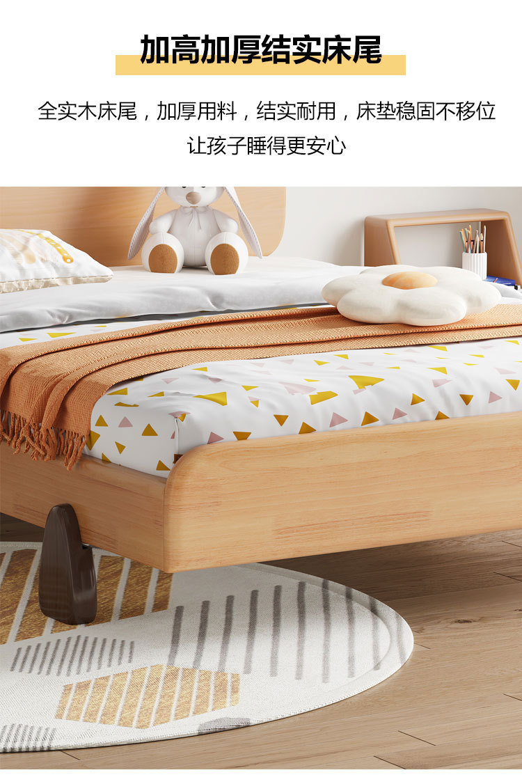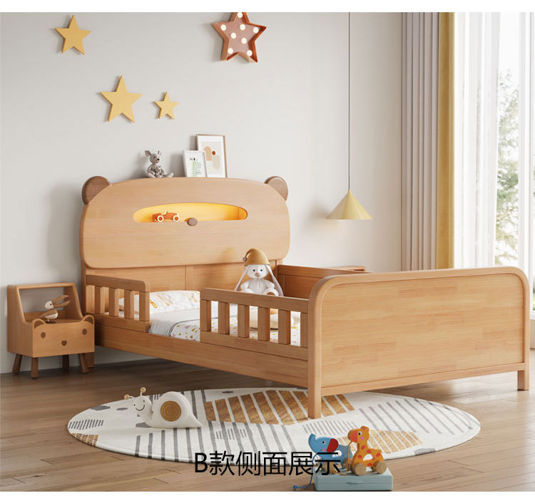 Solid wood modern simple wood color bear night light storage bed small apartment 1.5 m children s drop resistant fence bed