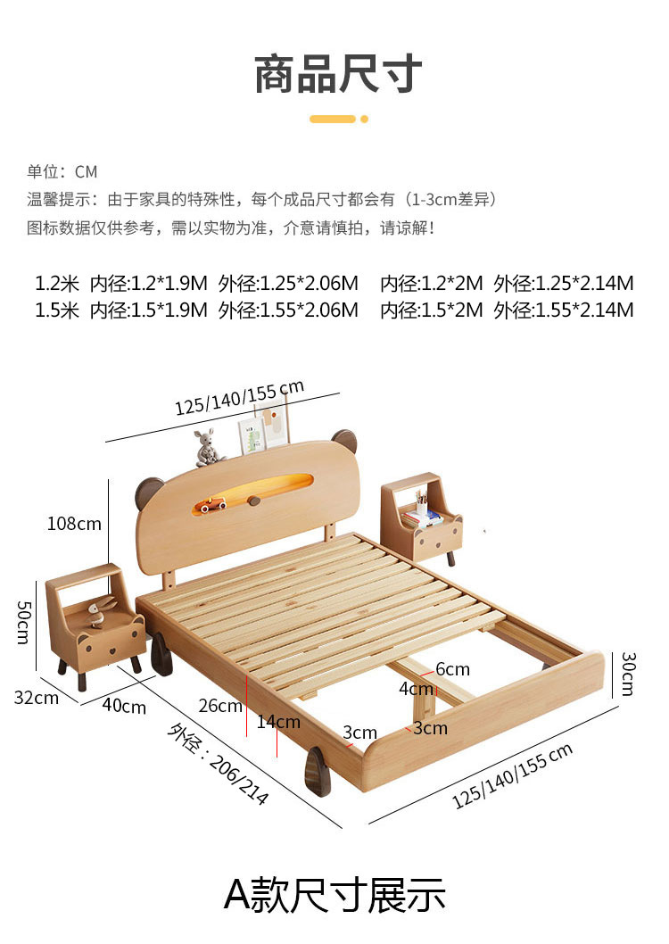 - Single bed with fence + 10CM environmental protection +1 bedside table