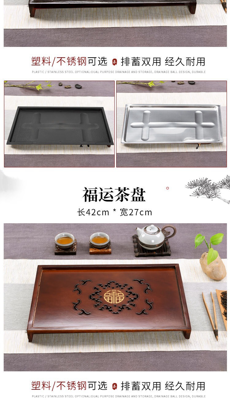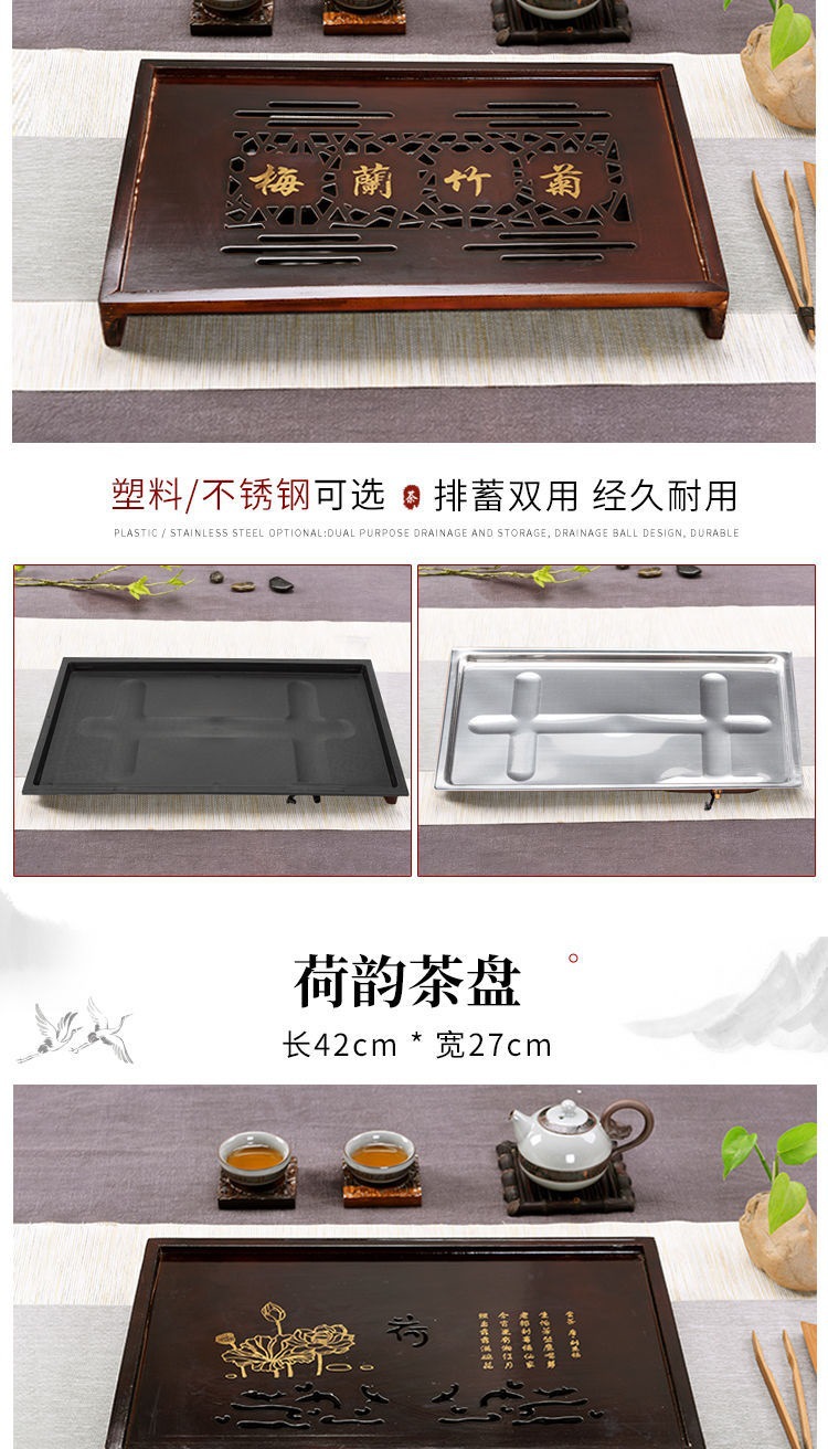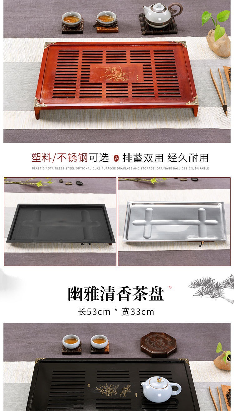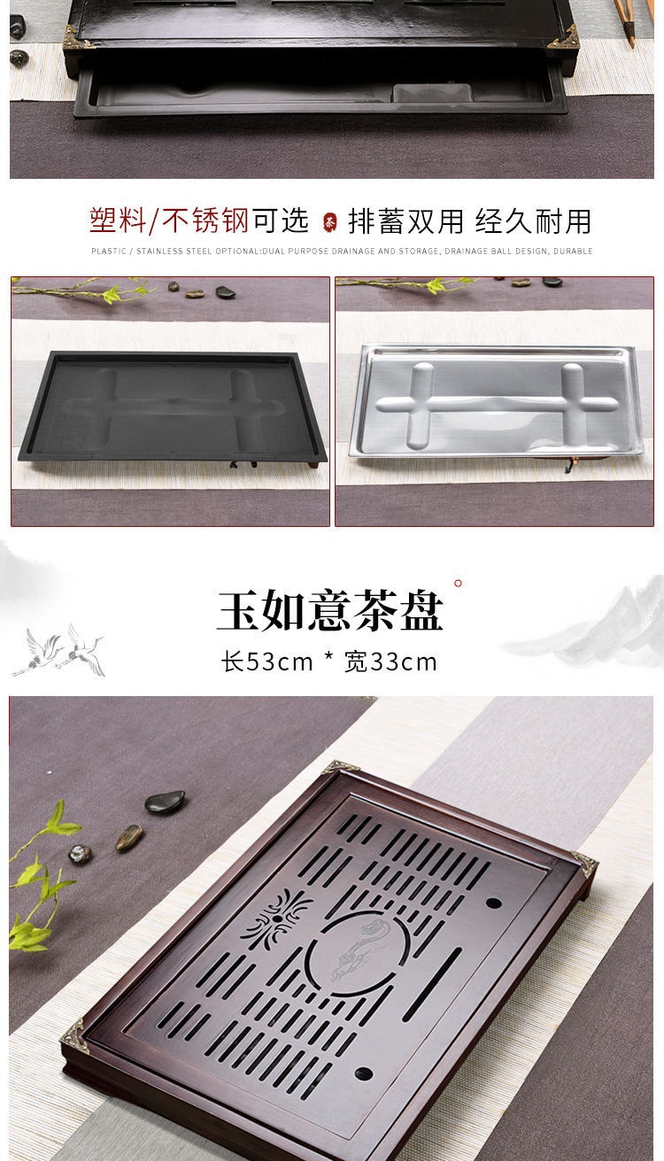 Solid wood tea tray household tea table new style kung fu tea set tray with drainage suit plastic drawer water storage Tea Sea