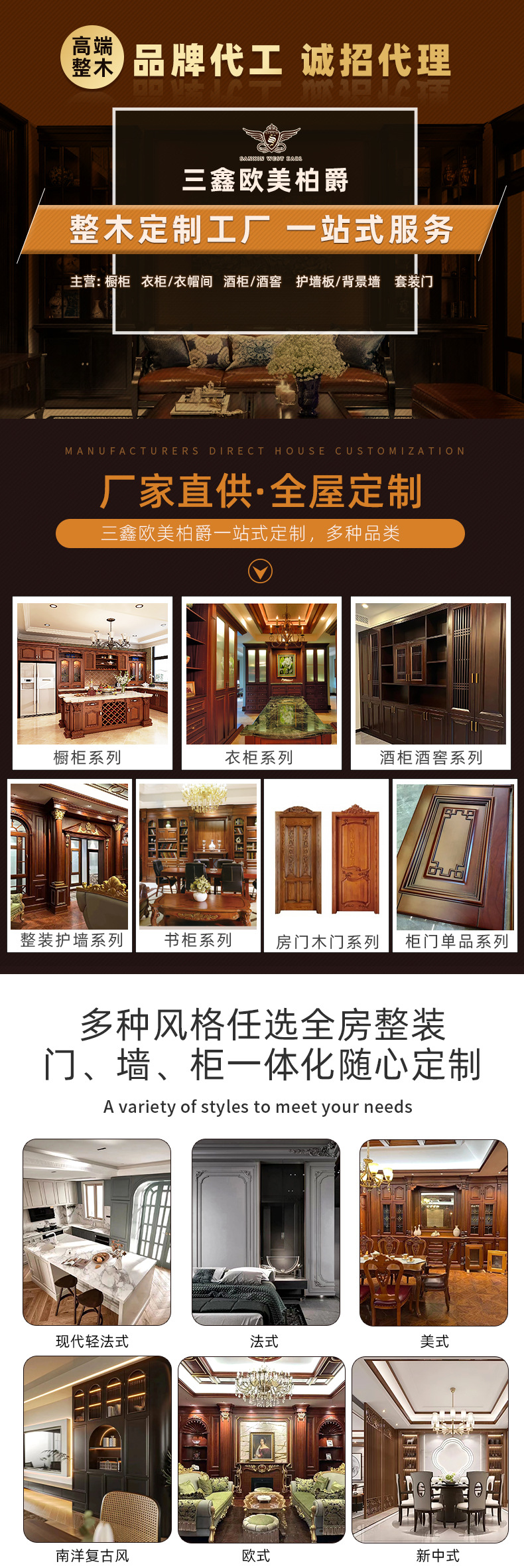 Solid wood wardrobe door cabinet door panel customization simple modern European style log whole house furniture cabinet setting